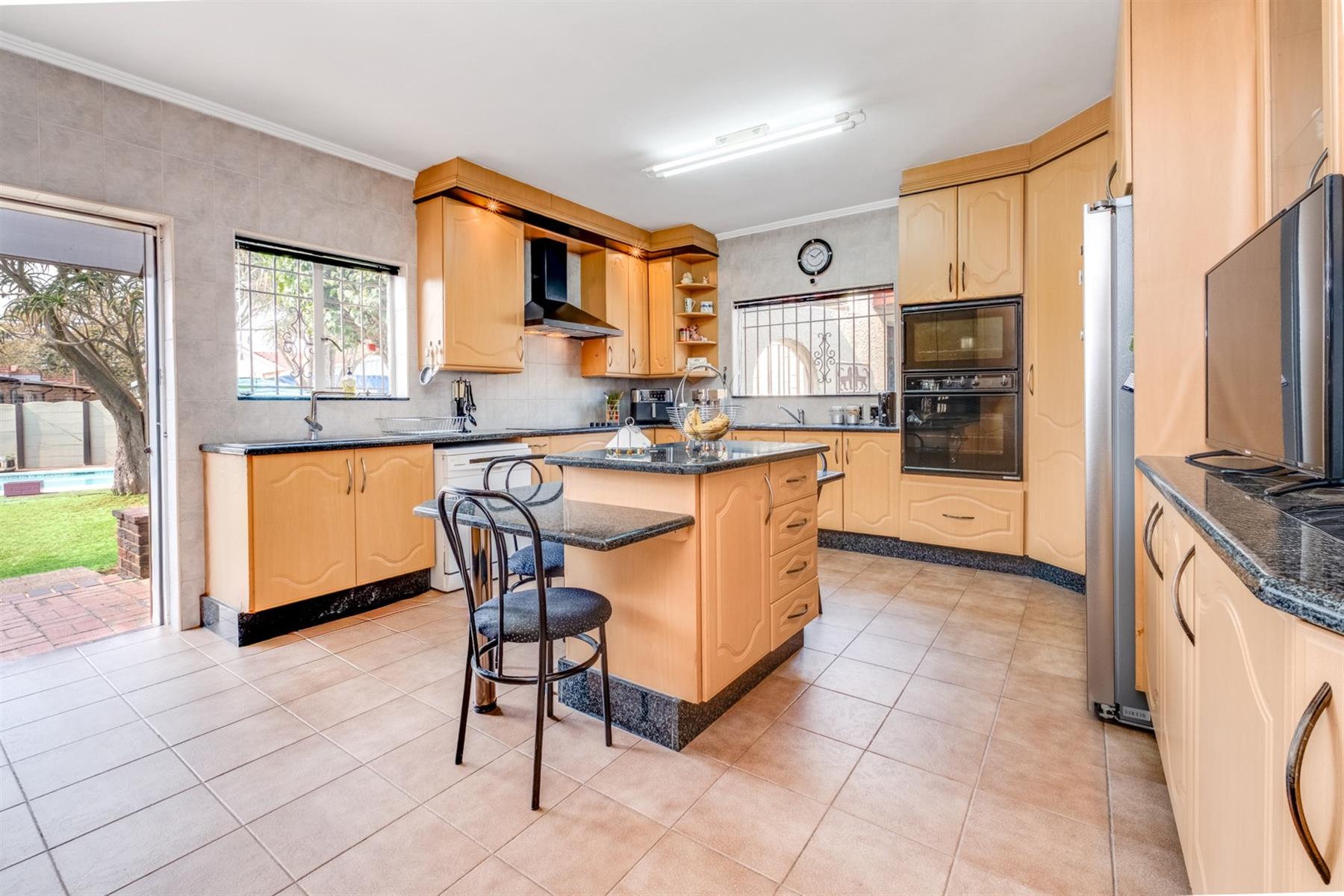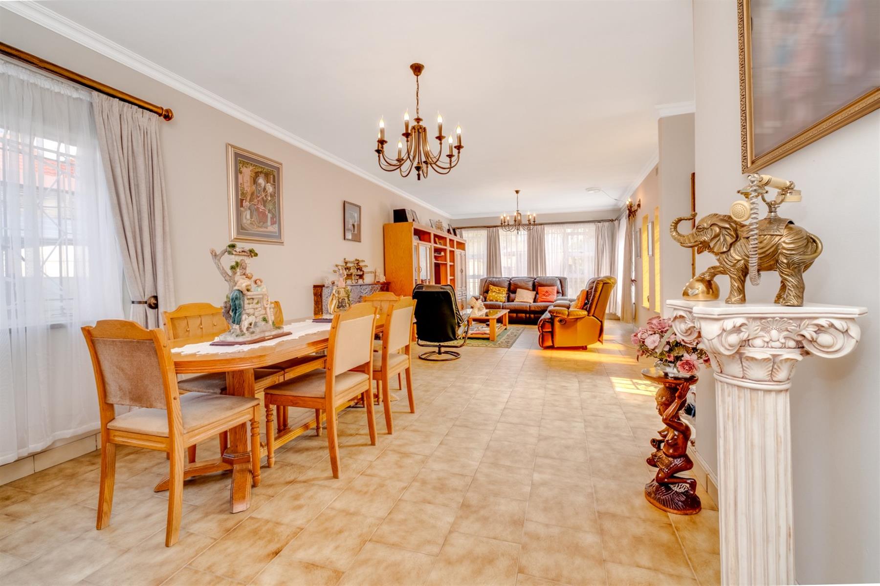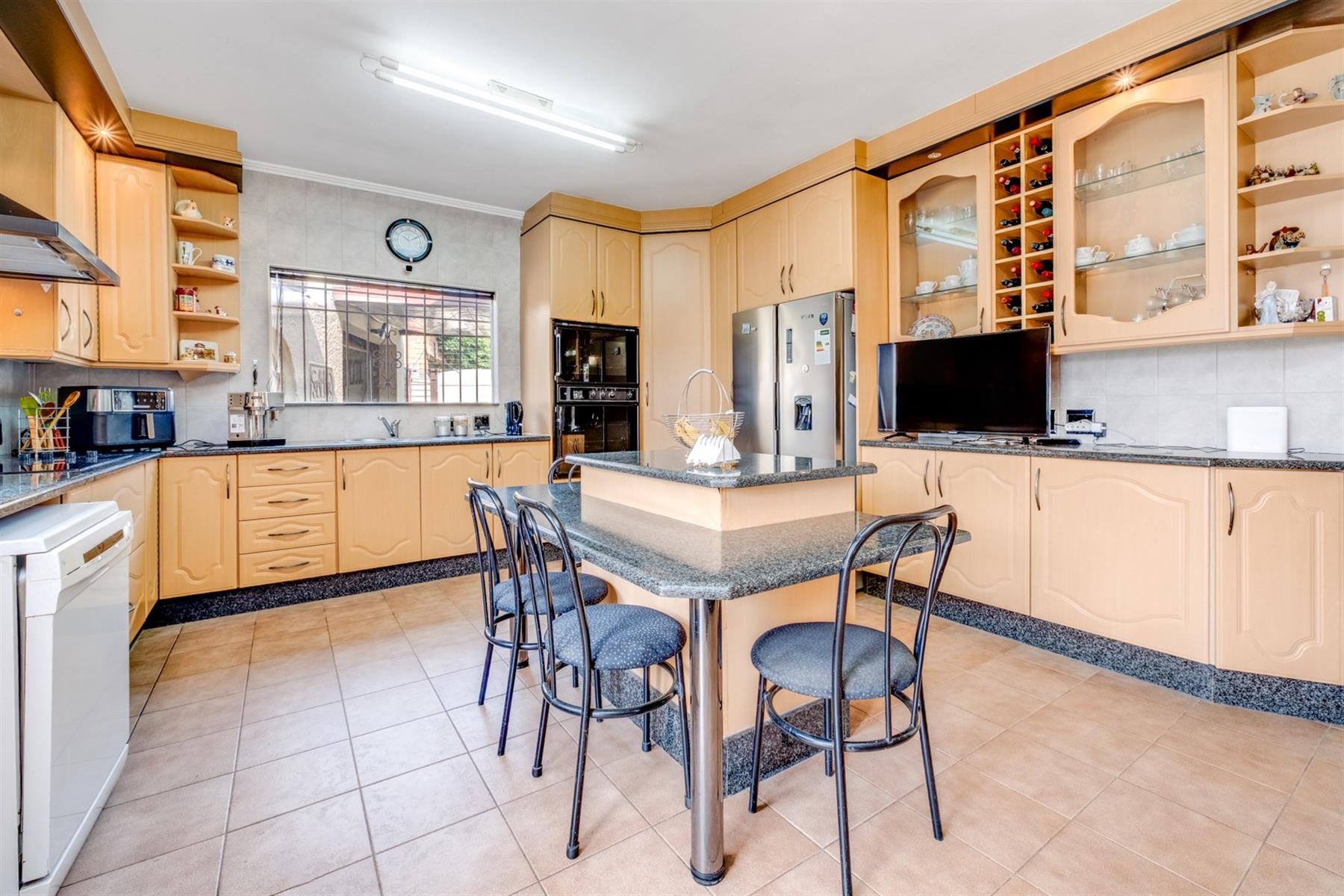 This home boasts four spacious bedrooms, providing plenty of room for the whole family. The master bedroom is a tranquil retreat, featuring an en-suite bathroom with bath and shower. The remaining three bedrooms are equally impressive, with large windows and built-in cupboards, providing plenty of storage space and positioned next to the second bathroom that also has a shower and bath.