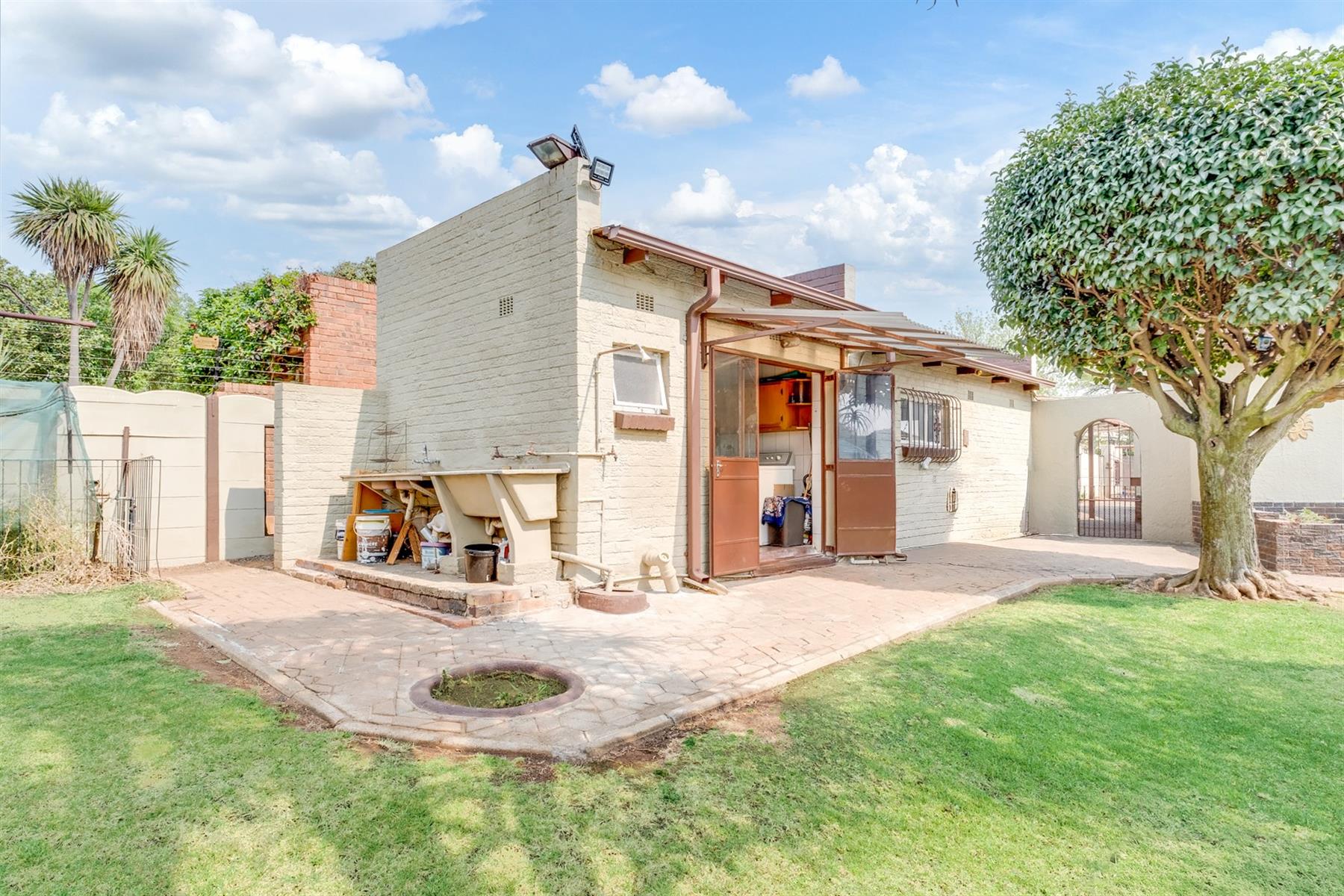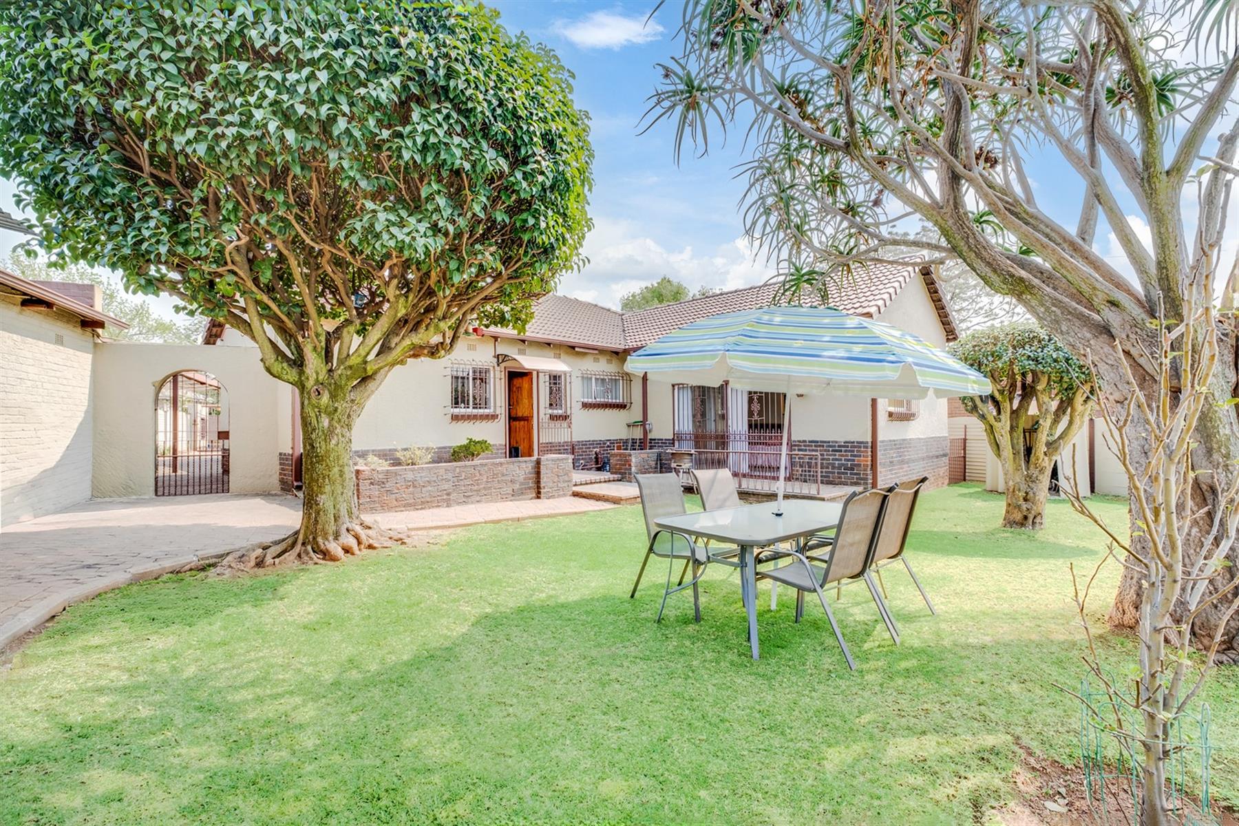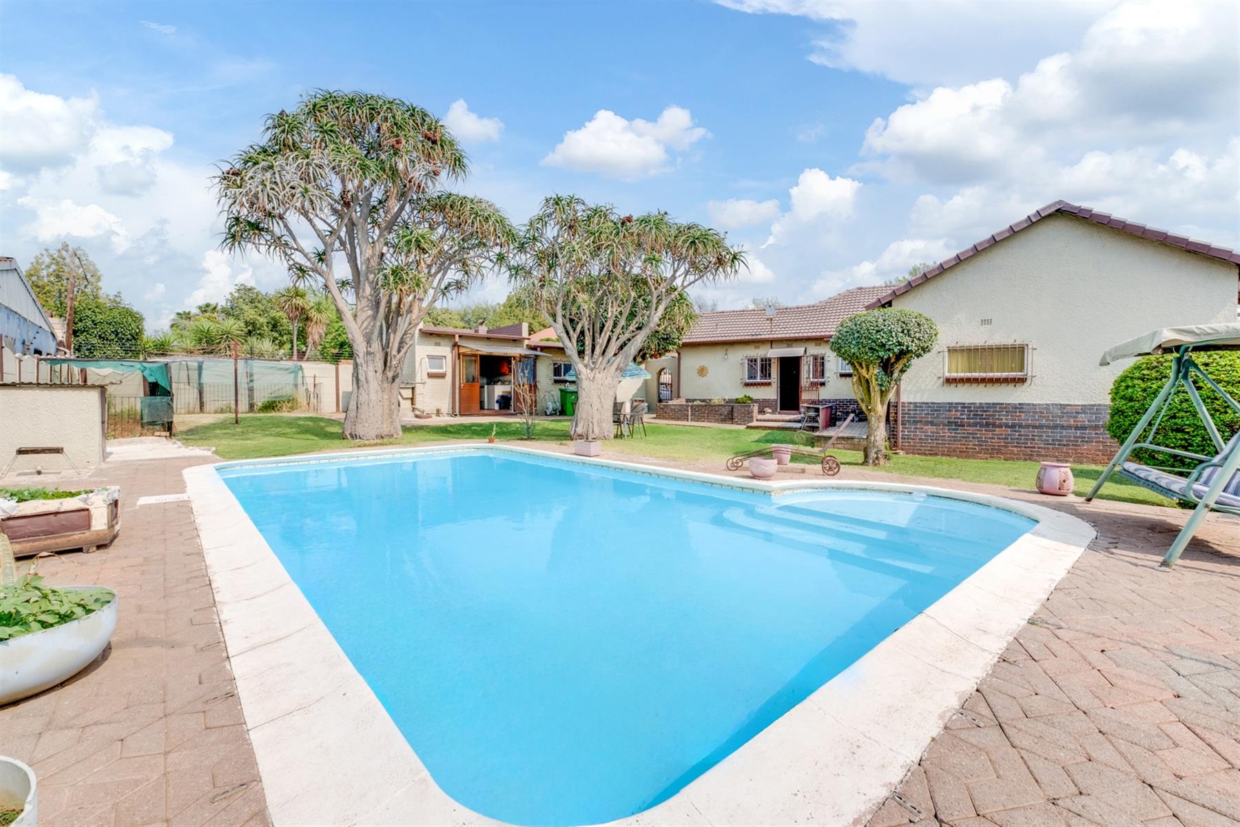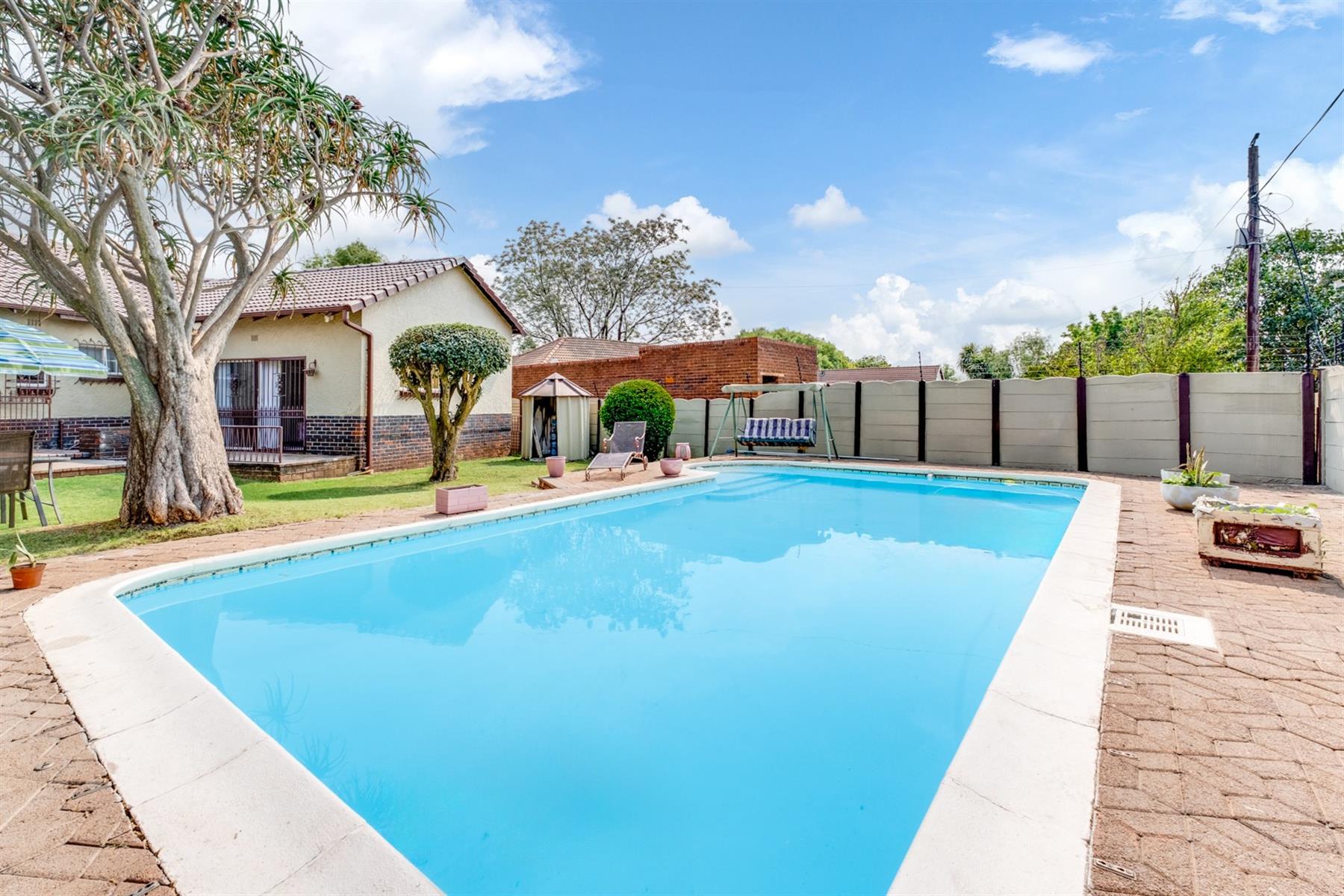 The back garden is an oasis with a chrystal blue swimming pool, entertainment area and ample space for the family to enjoy afternoon braai`s.