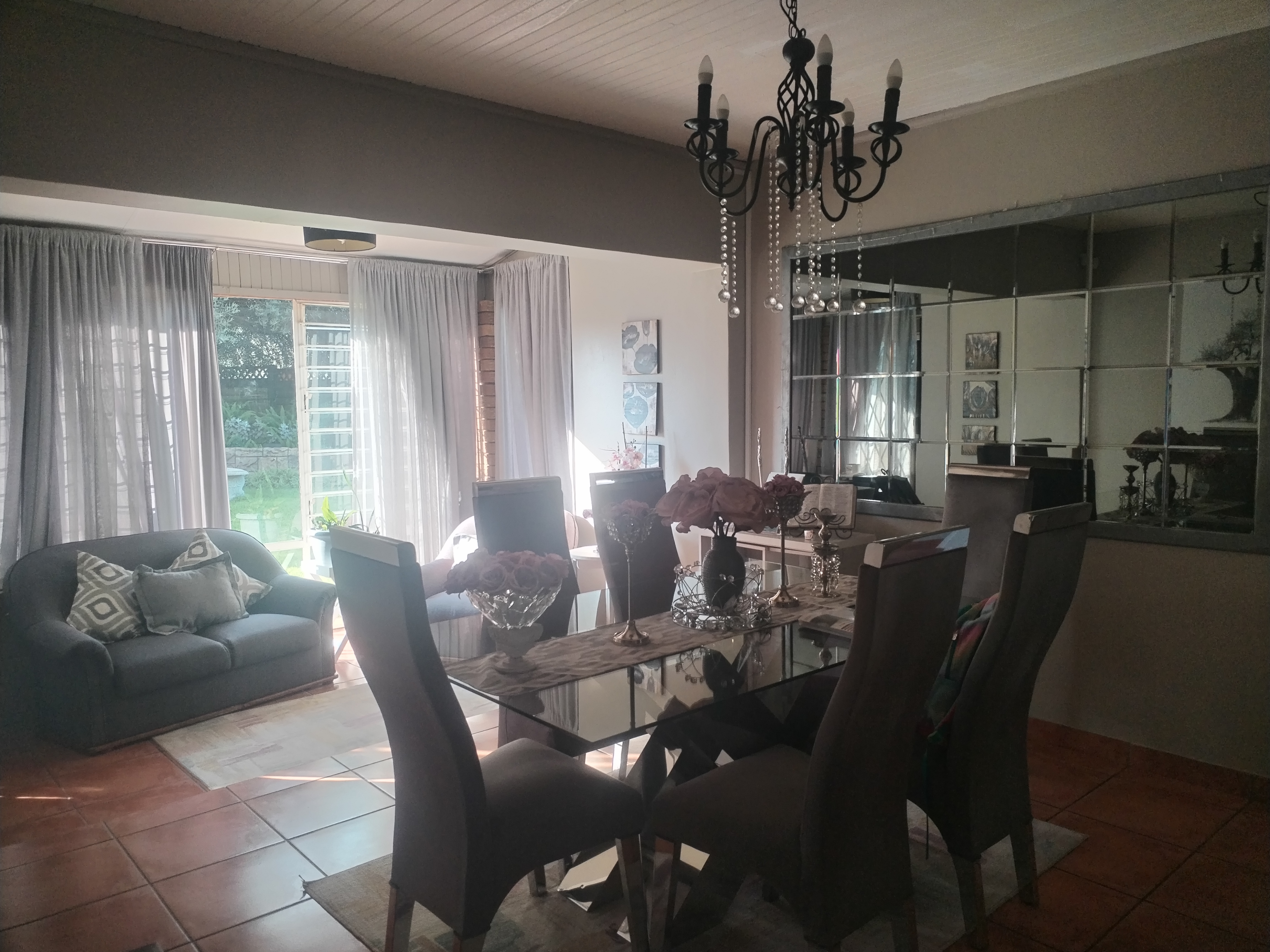 An open-plan dining room seamlessly flows into a well-appointed fully fitted kitchen with granite countertops, and a separate scullery for added functionality.