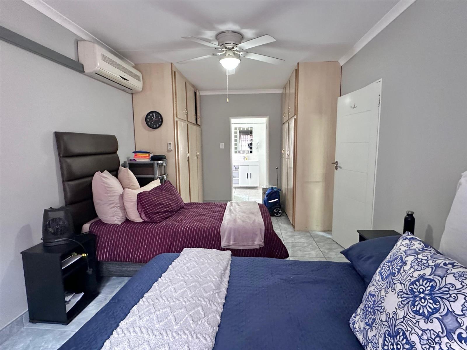All three bedrooms are generously sized with built-in cupboards, and the main bedroom offers extra luxury with an aircon, ceiling fan, and a full en-suite bathroom. A second full bathroom ensures convenience for family and guests.