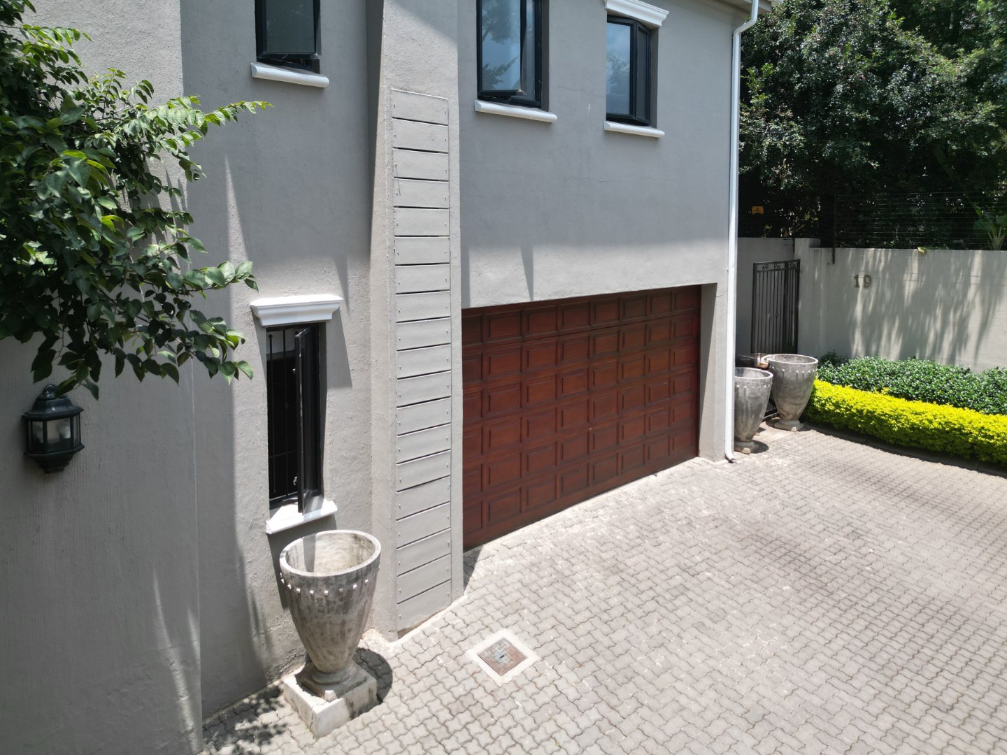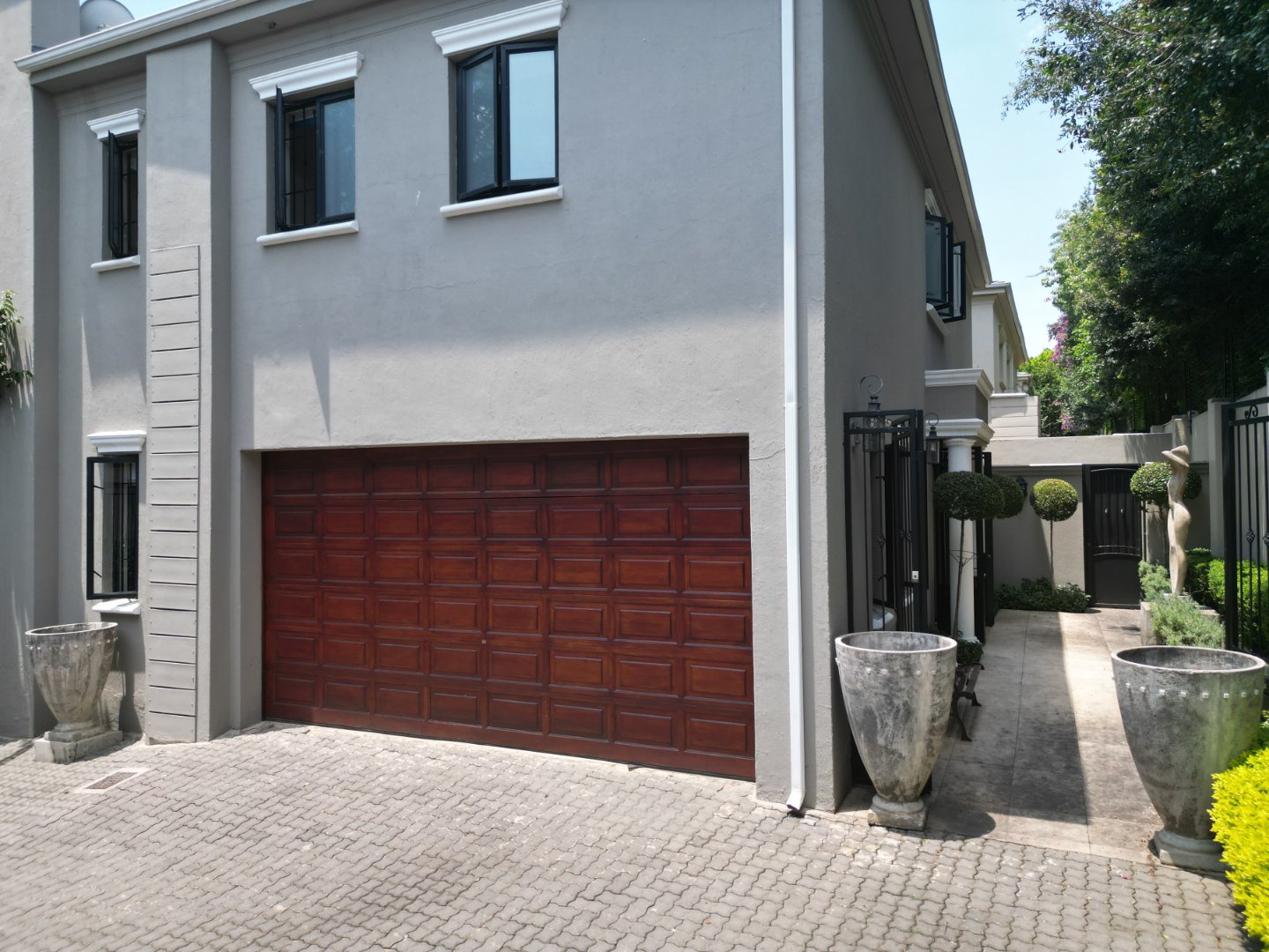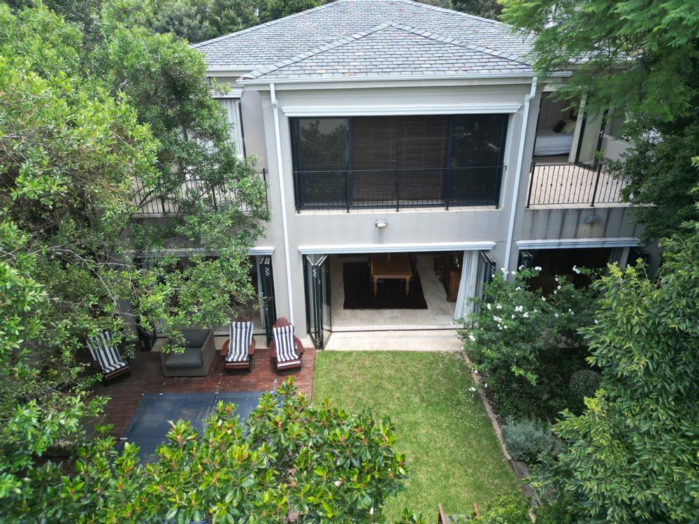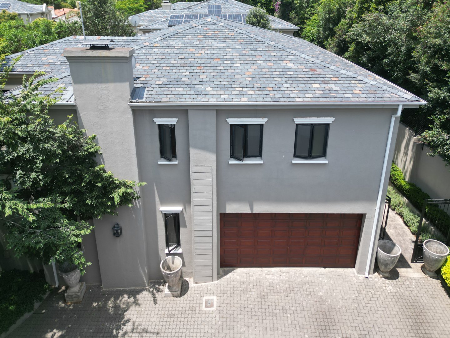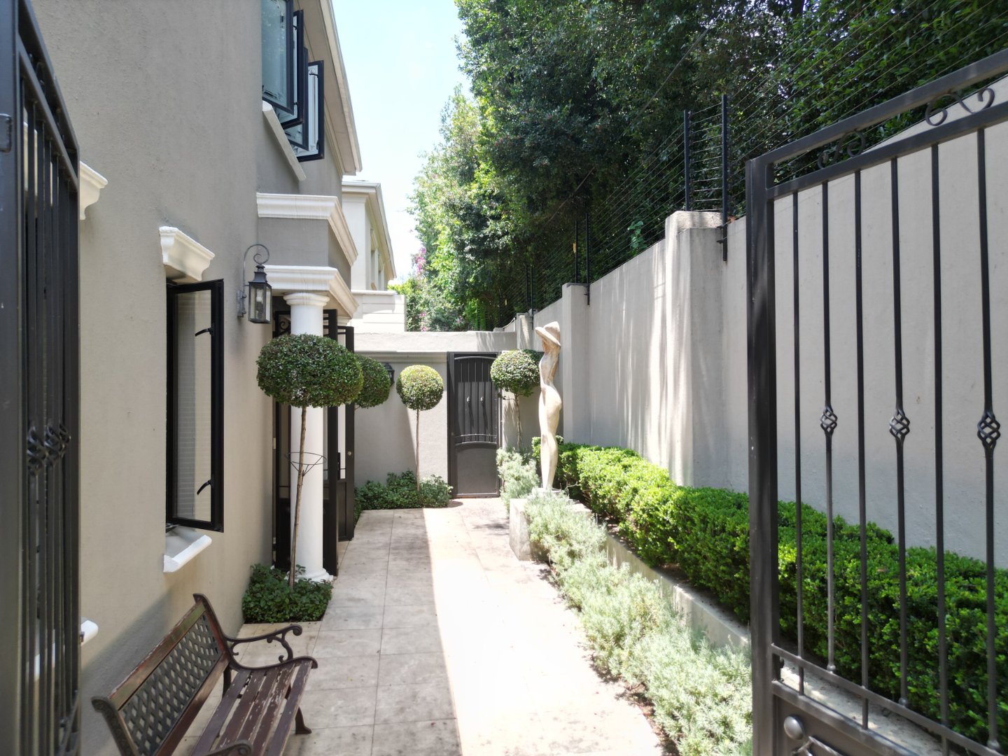 In the Exclusive Estate Sherwood,close proximity to Hyde Park Shopping Center lies this hidden gem. With double security gates and a guard om duty you Walk into a beautiful entrance hall with staircase leading up to 3 Bedrooms en-suite. Each room has its own linen cupboard. 2 Studies and a Pyjama lounge.