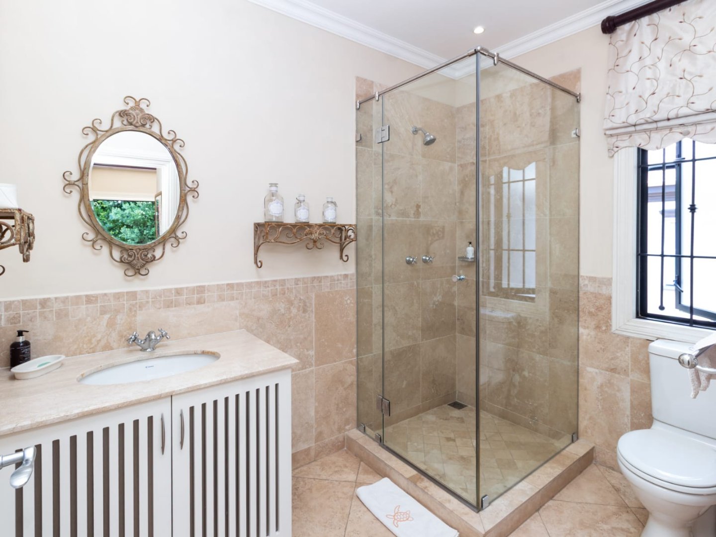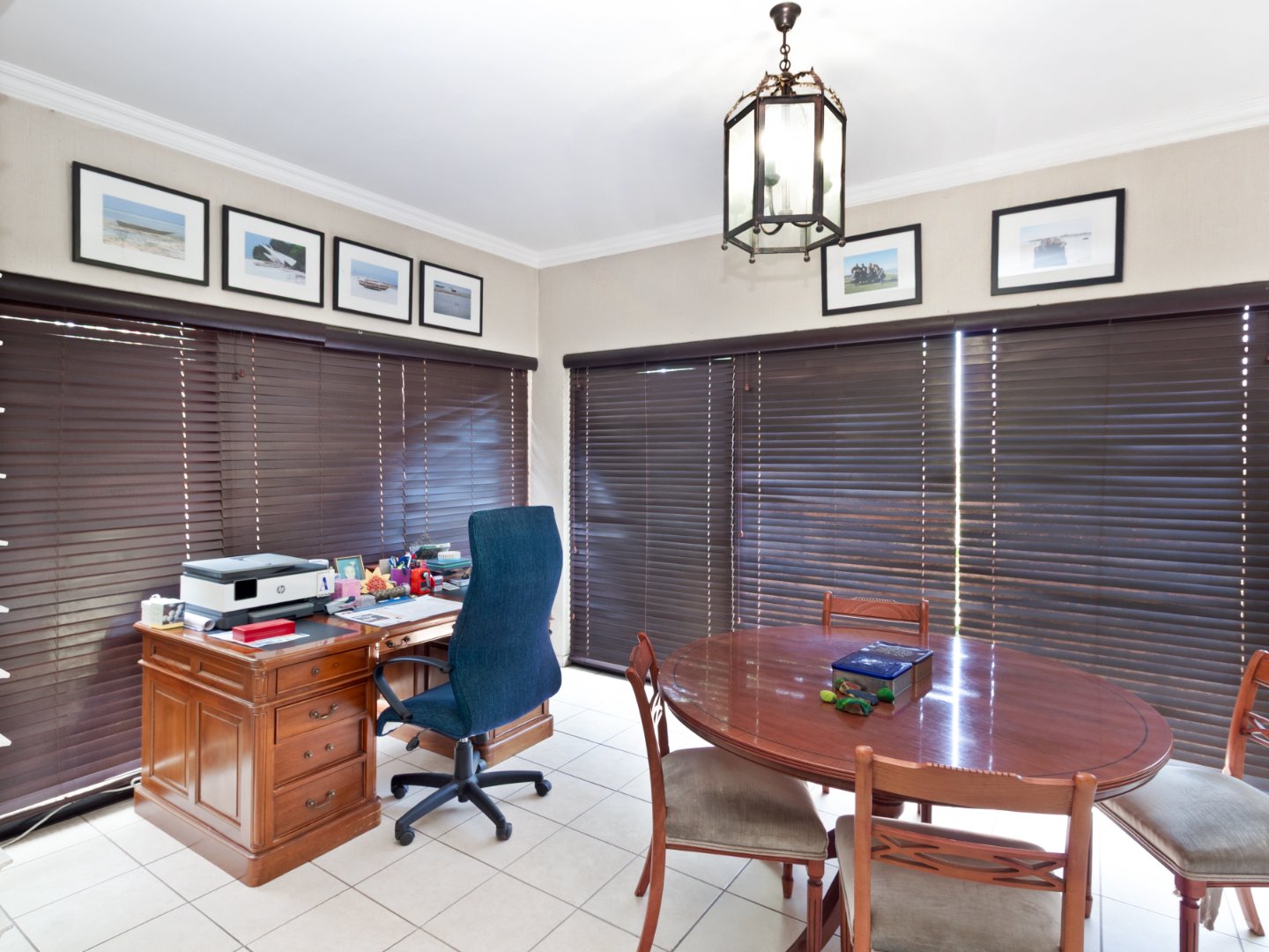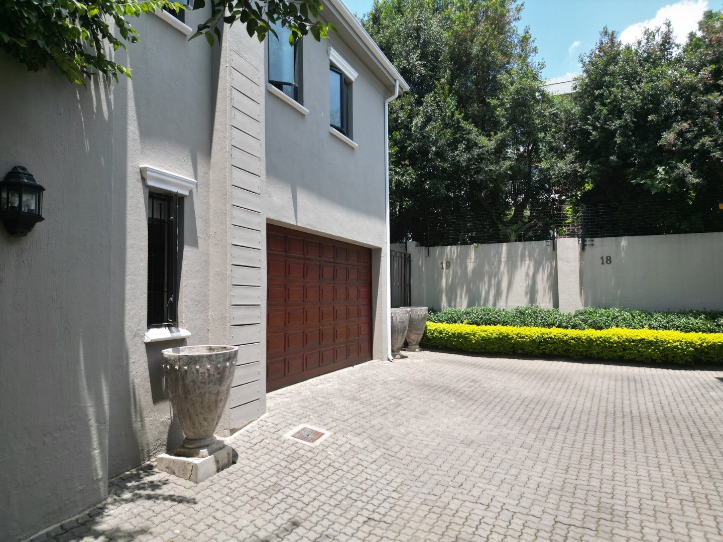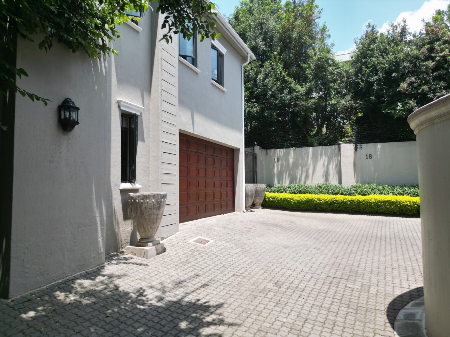 In the Exclusive Estate Sherwood,close proximity to Hyde Park Shopping Center lies this hidden gem. With double security gates and a guard om duty you Walk into a beautiful entrance hall with staircase leading up to 3 Bedrooms en-suite. Each room has its own linen cupboard. 2 Studies and a Pyjama lounge.