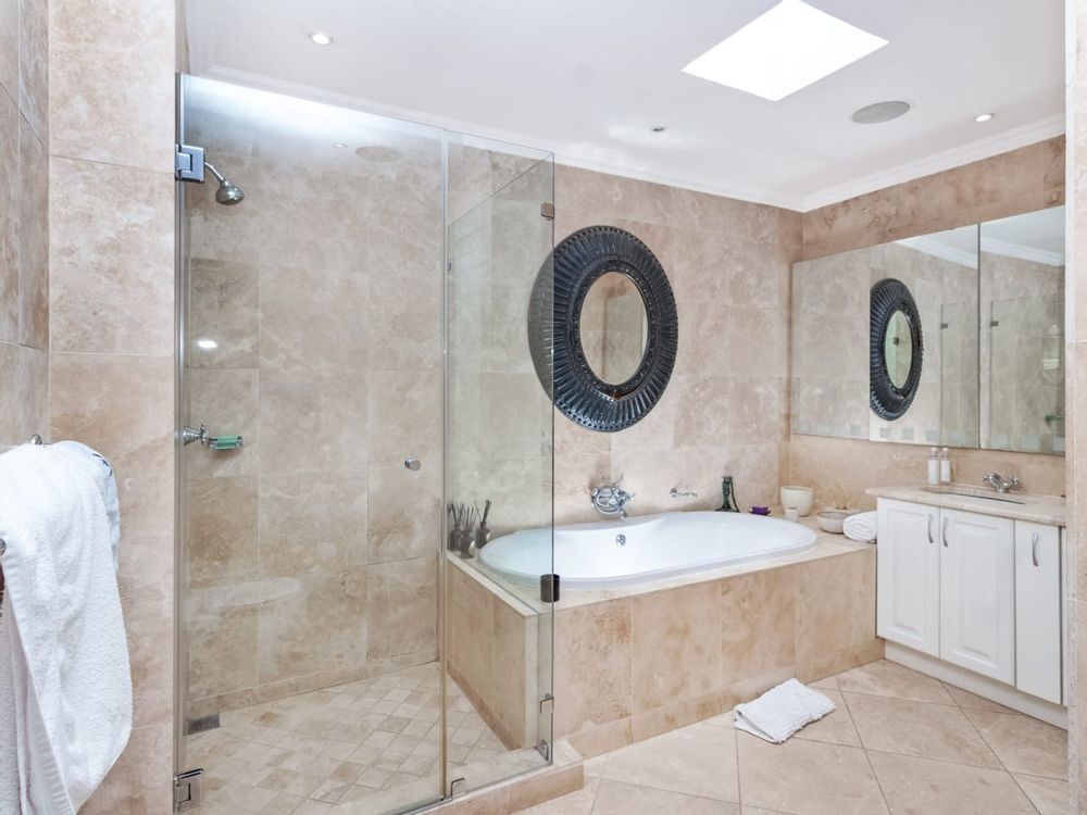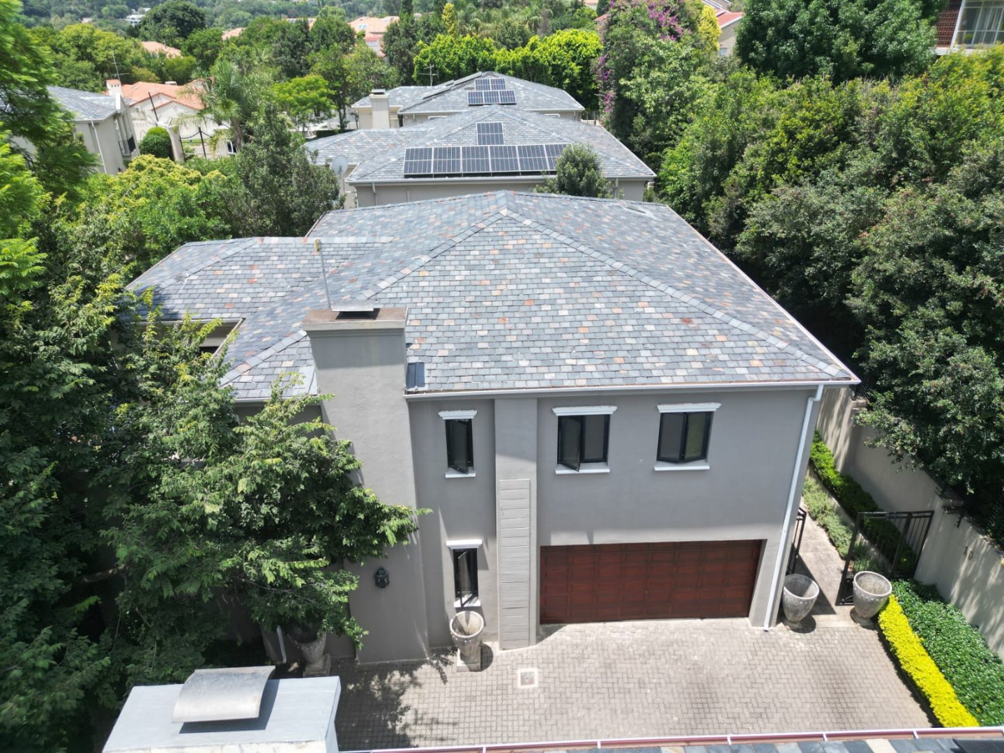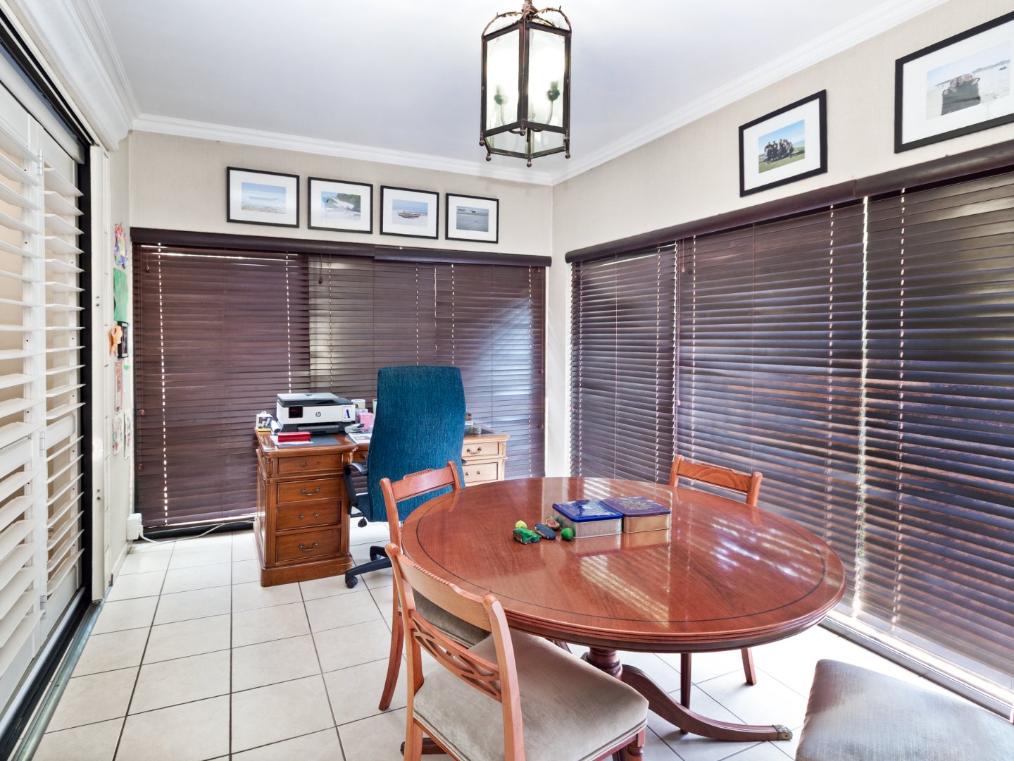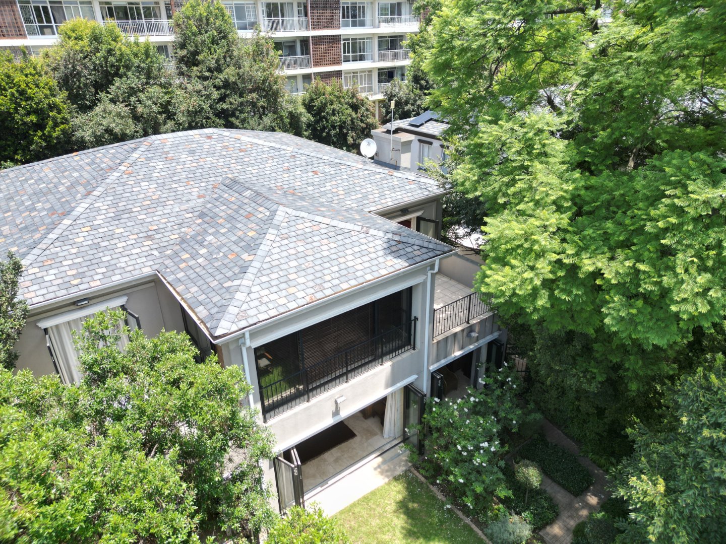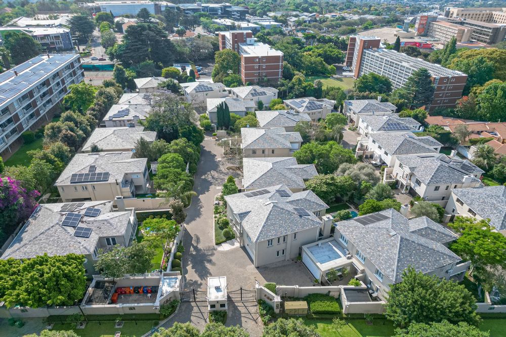 In the Exclusive Estate Sherwood,close proximity to Hyde Park Shopping Center lies this hidden gem. With double security gates and a guard om duty you Walk into a beautiful entrance hall with staircase leading up to 3 Bedrooms en-suite. Each room has its own linen cupboard. 2 Studies and a Pyjama lounge.