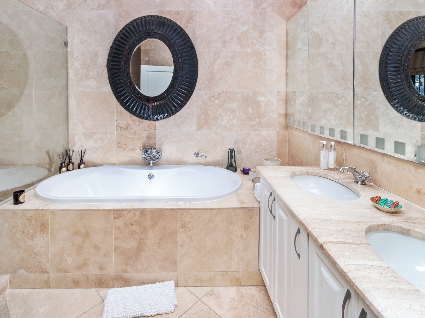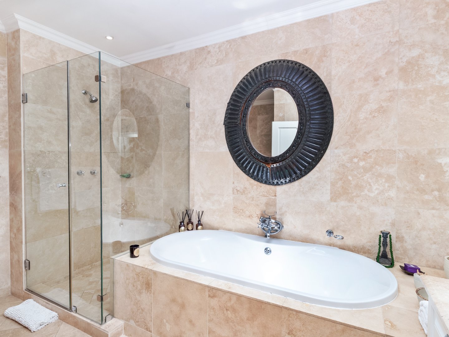 Main Bedroom has a walk in dressing area with ample BIC and large luxurious bathroom with bath, shower, toilet &basins.
