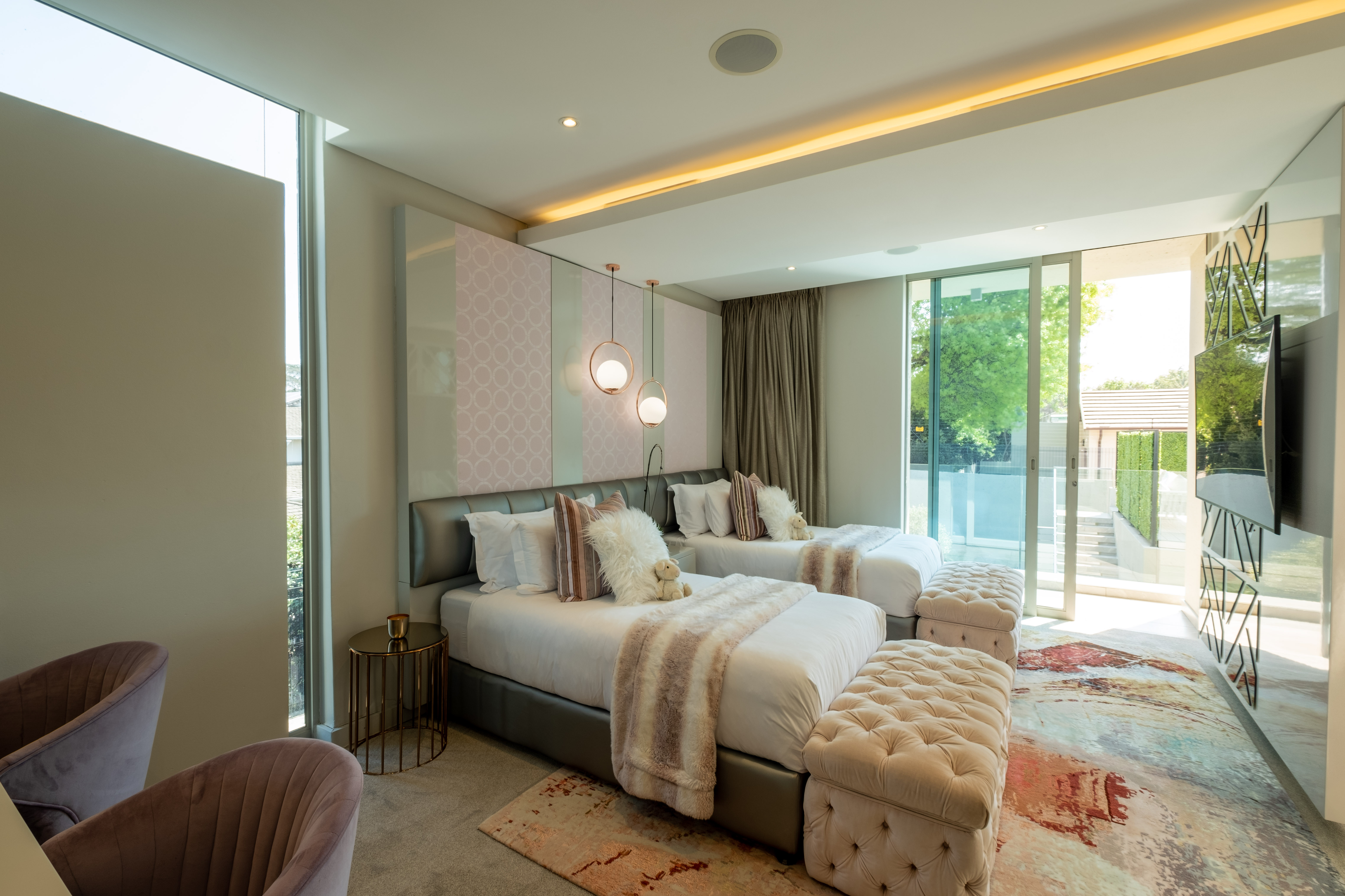 The other 3 bedrooms upstairs are all ensuite, and share a private nook area where you can make your own tea or coffee. What is really special about the one bedroom is that there is a very large Panama lounge, perfect for children and teenagers to feel like they can enjoy their own space in a secure and inviting setting.