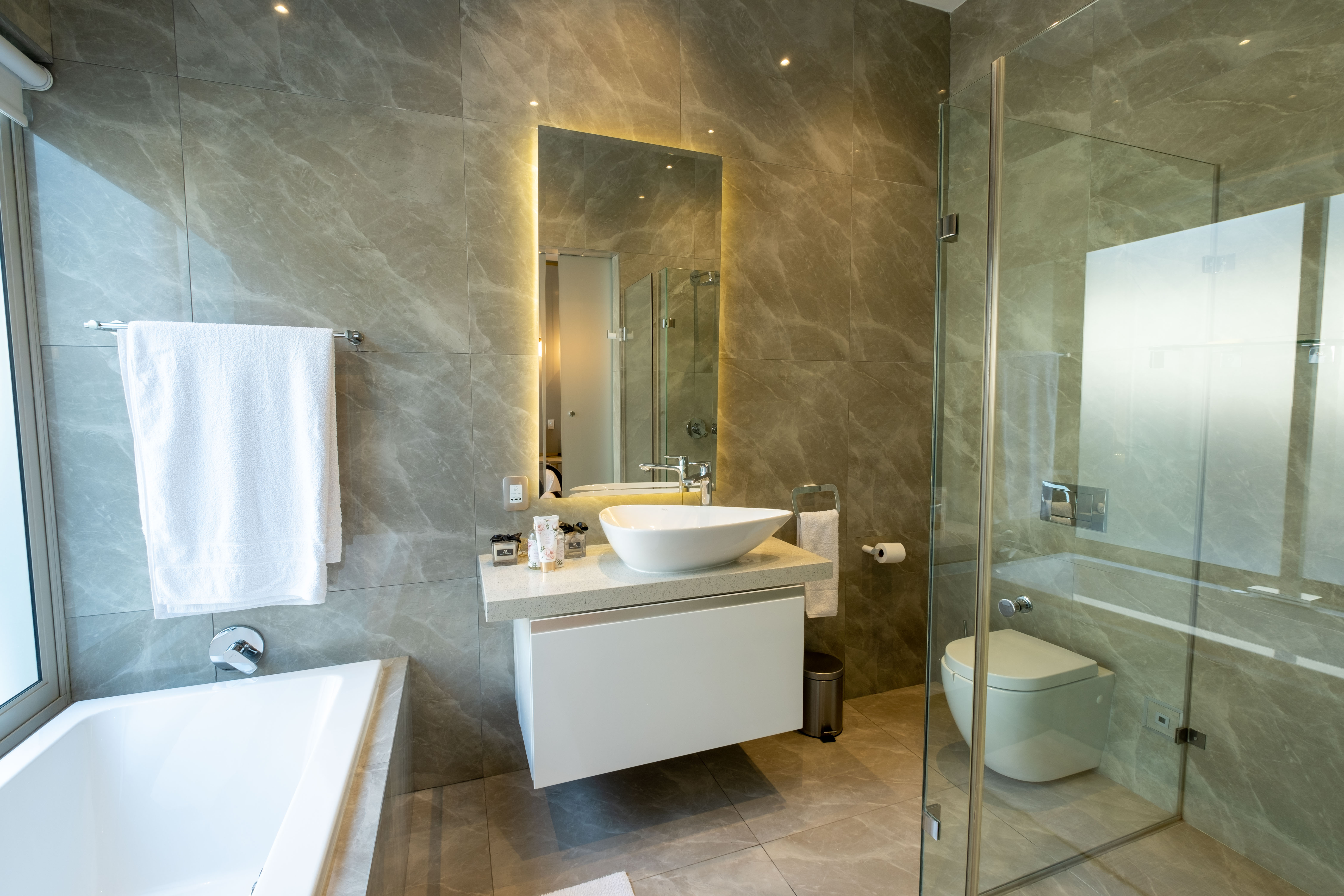 All bedrooms are ensuite, with a main guest bedroom suite downstairs.