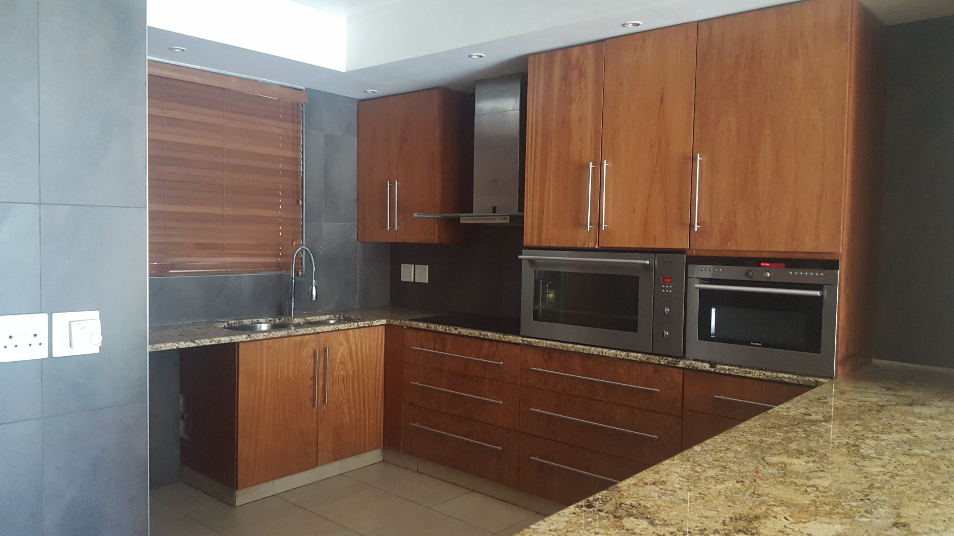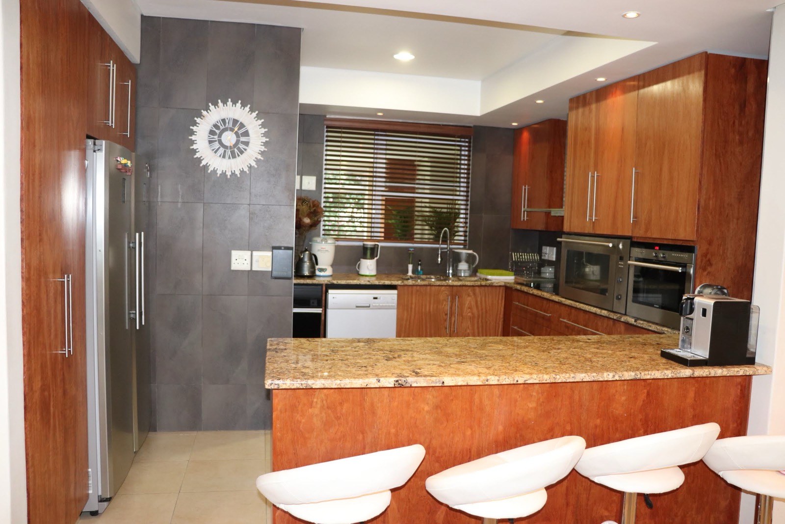 The open-plan kitchen boasts Caesarstone counters, large pantry, eye-level ovens and a breakfast nook . A double-door fridge can easily fit in the spacious .
