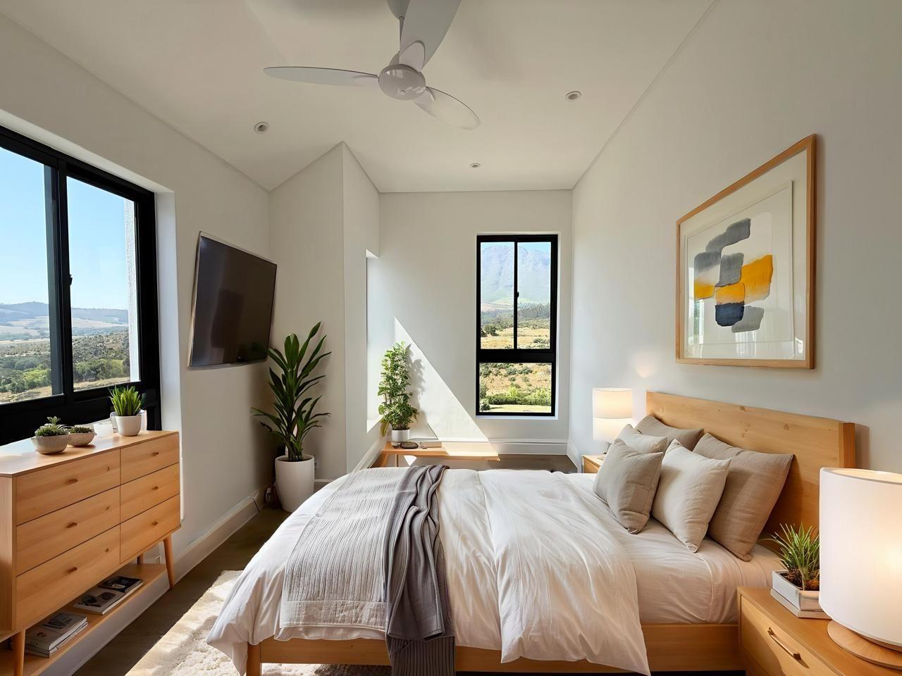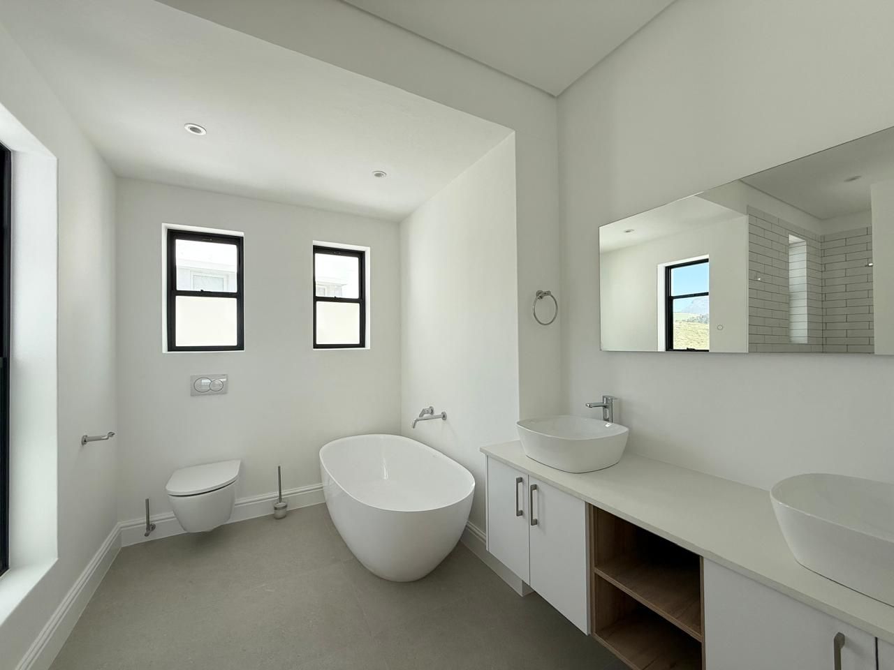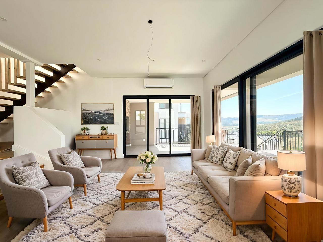 In La Roche Estate, Stellenbosch, this newly built 3-bedroom family home offers 360-degree views of rolling hills and distant mountains. Green belts surround the property on all sides, bringing nature right to your doorstep, while a small children’s park sits directly in front, perfect for easy playtime and neighborly chats.