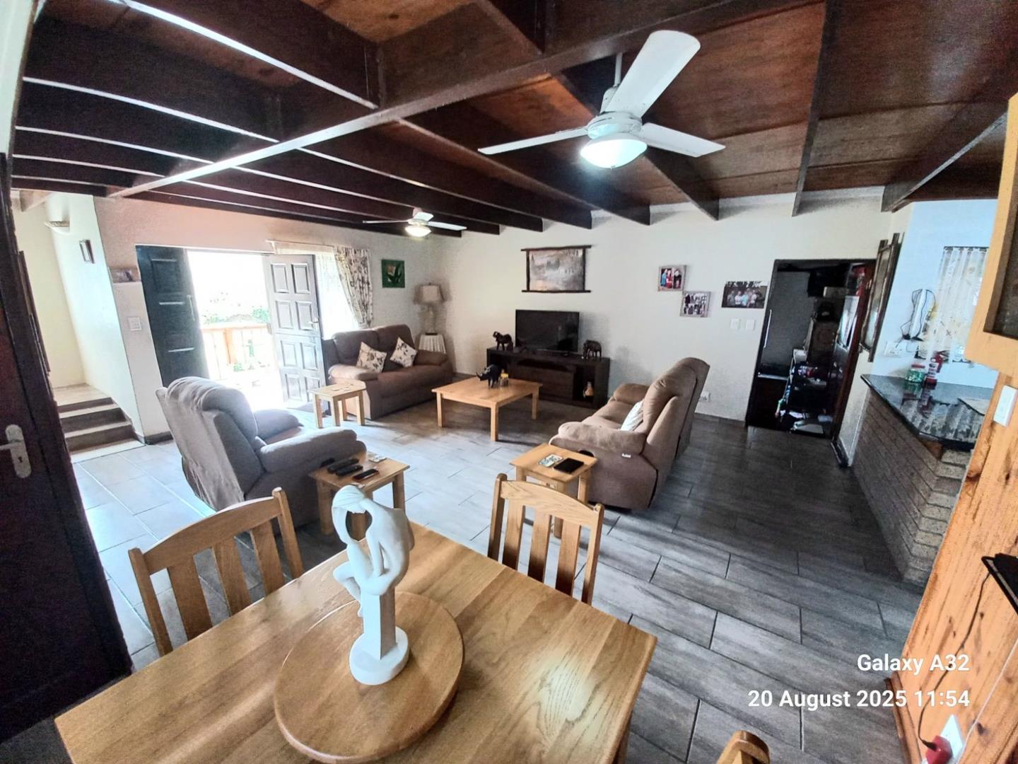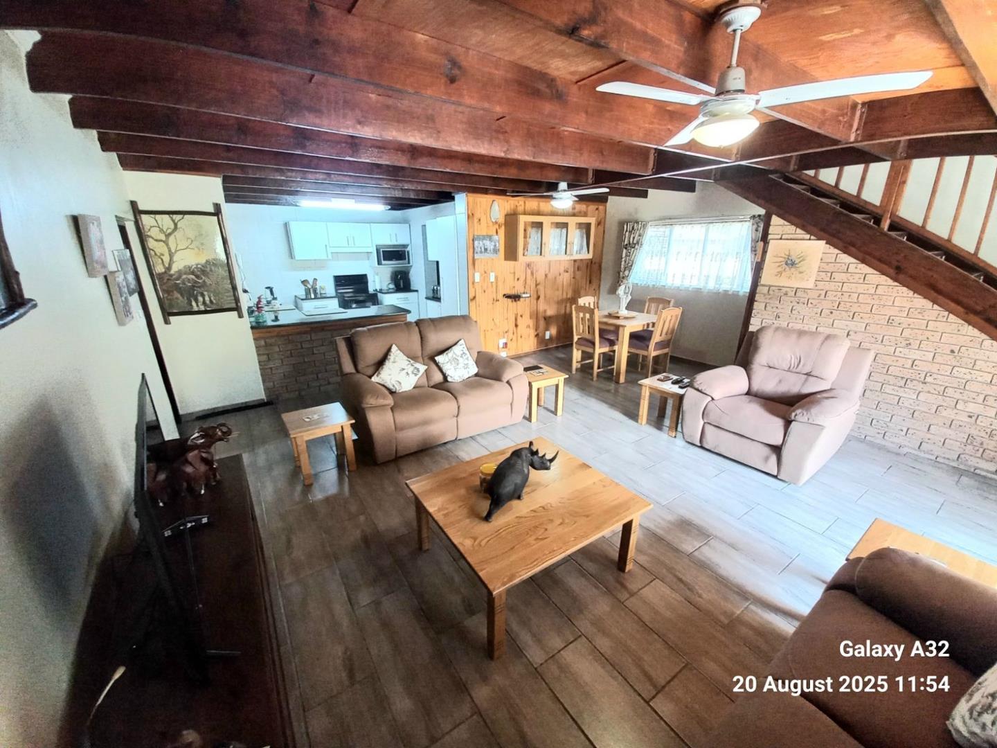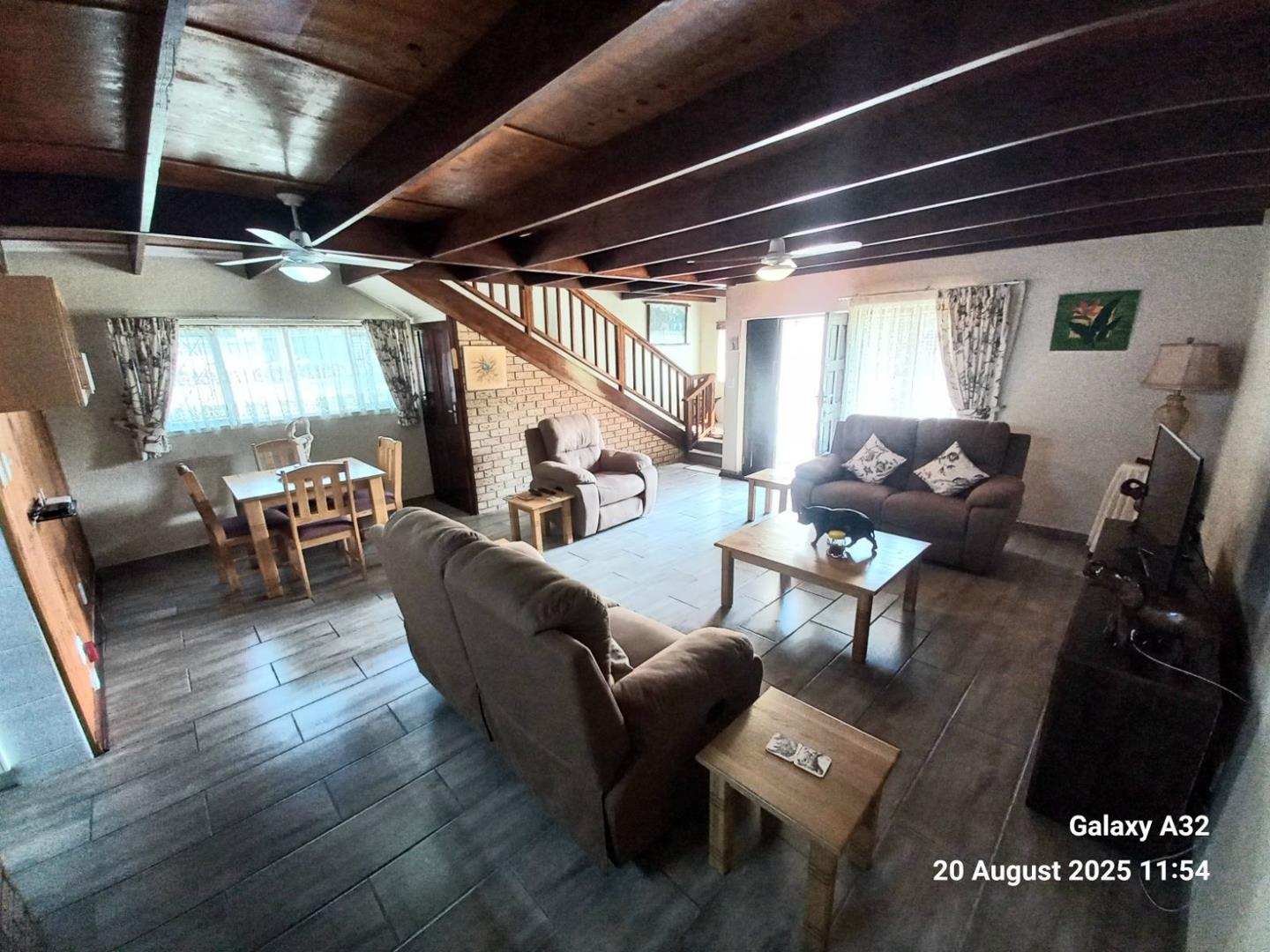 Beautiful dark wood staircase leads you up to 2 spacious bedrooms with built in wardrobes and tile flooring , main bedroom leads out to a spacious balcony overlooking the wonderful nature scenes and the garden in front with the buck walking past from time to time.