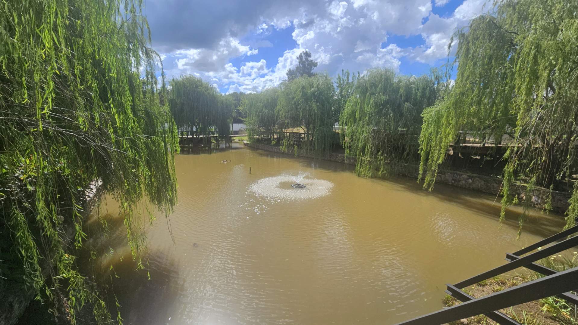 A picturesque on-site dam, perfect for leisurely strolls and quiet reflection