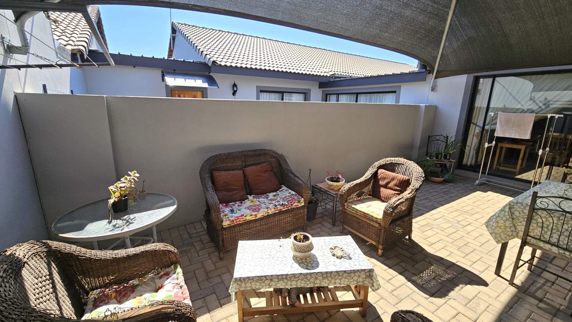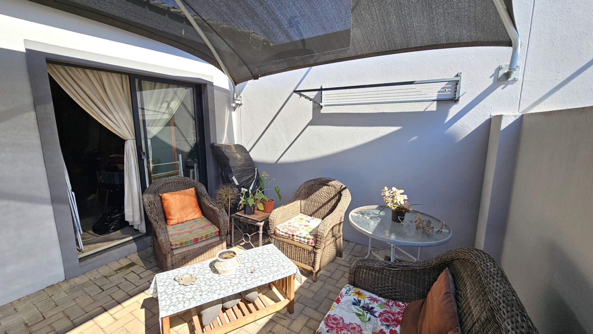 The home opens onto a private covered patio—an inviting space ideal for morning coffee, afternoon relaxation, or weekend gatherings—framed by immaculate communal gardens and landscaped surroundings.