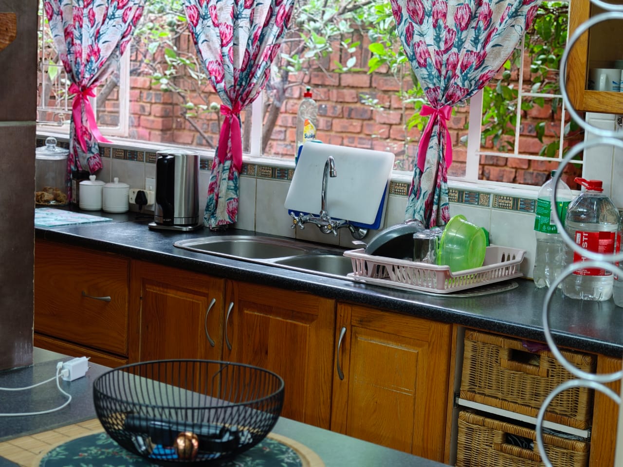 Outdoors, the property truly shines with a beautifully maintained garden surrounding the swimming pool, creating a tranquil space for relaxation and entertaining. Additional features include a borehole and a large JoJo water tank for garden and pool use.
