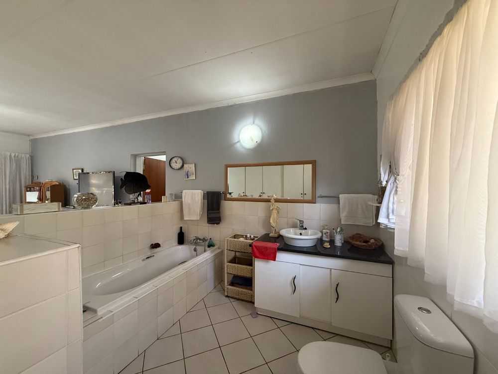 The home features a well-established garden, supported by a borehole to keep everything lush and green throughout the year. Inside, multiple spacious living areas provide flexibility for a lounge, TV room, or entertainment space, all flowing seamlessly from the kitchen. A practical serving hatch makes hosting and everyday living effortless.