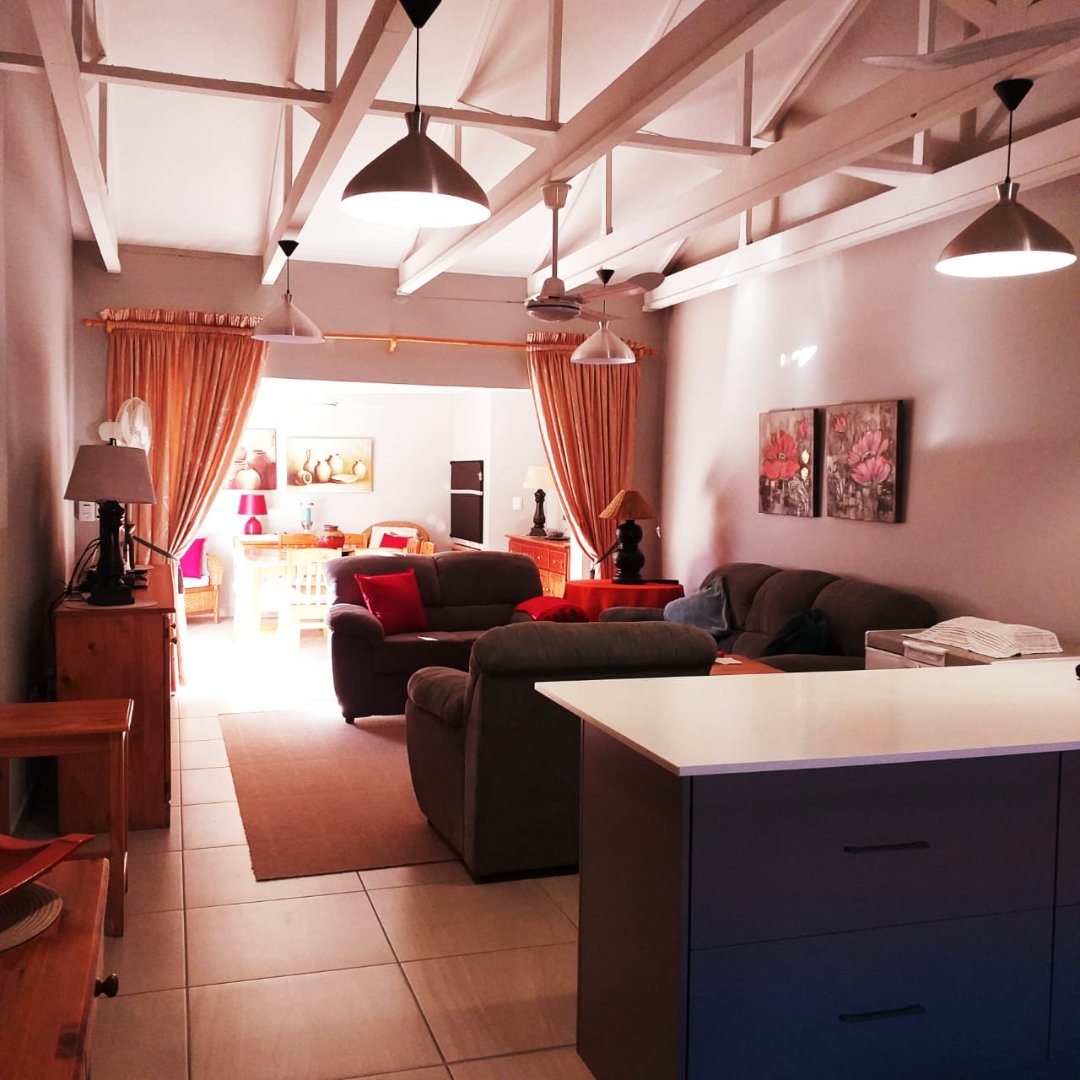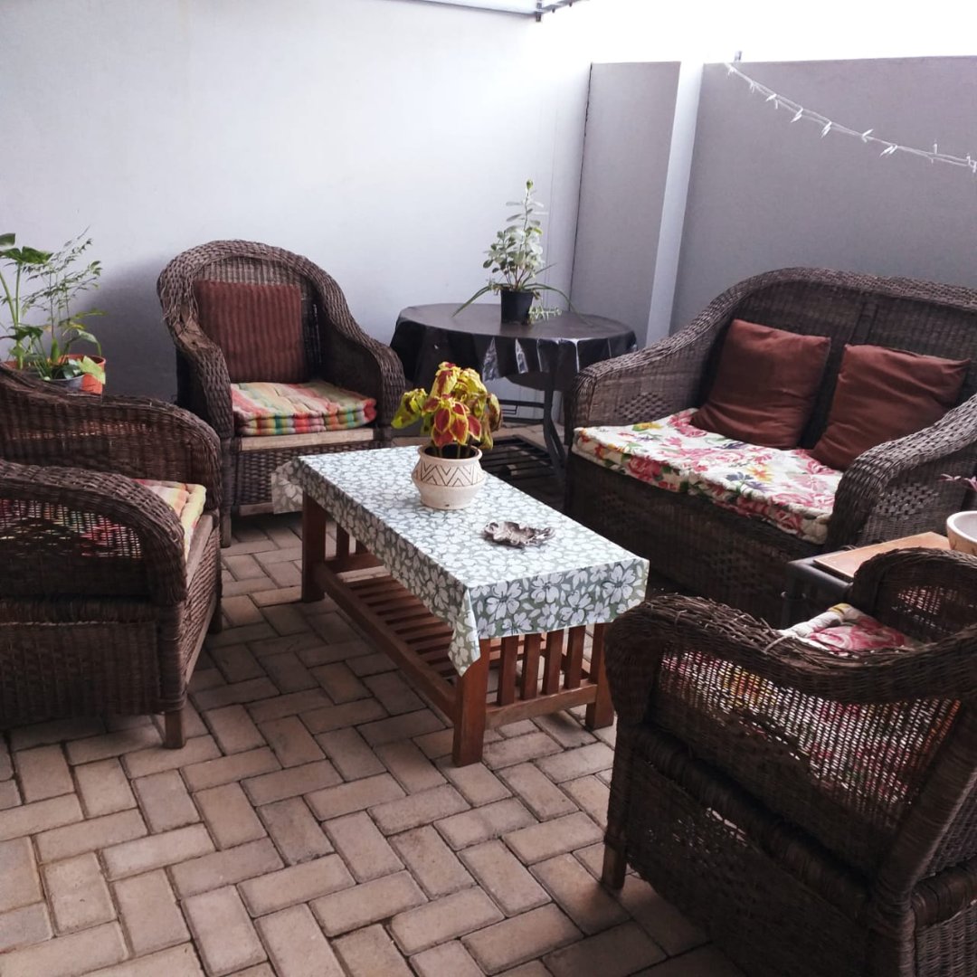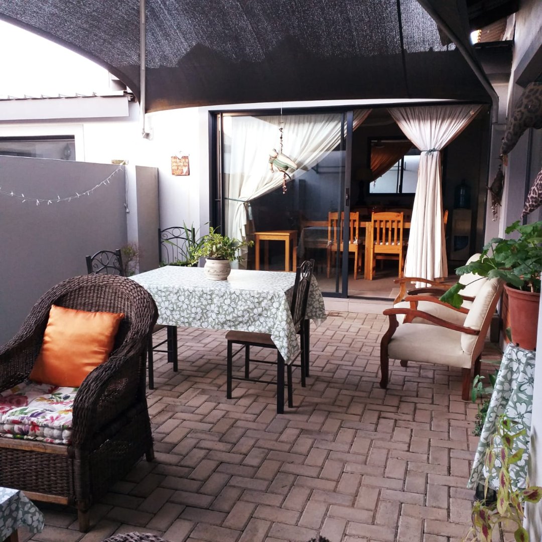 The home opens onto a private patio, ideal for morning coffee, weekend braais, or evening relaxation, all set against the backdrop of beautifully maintained gardens.