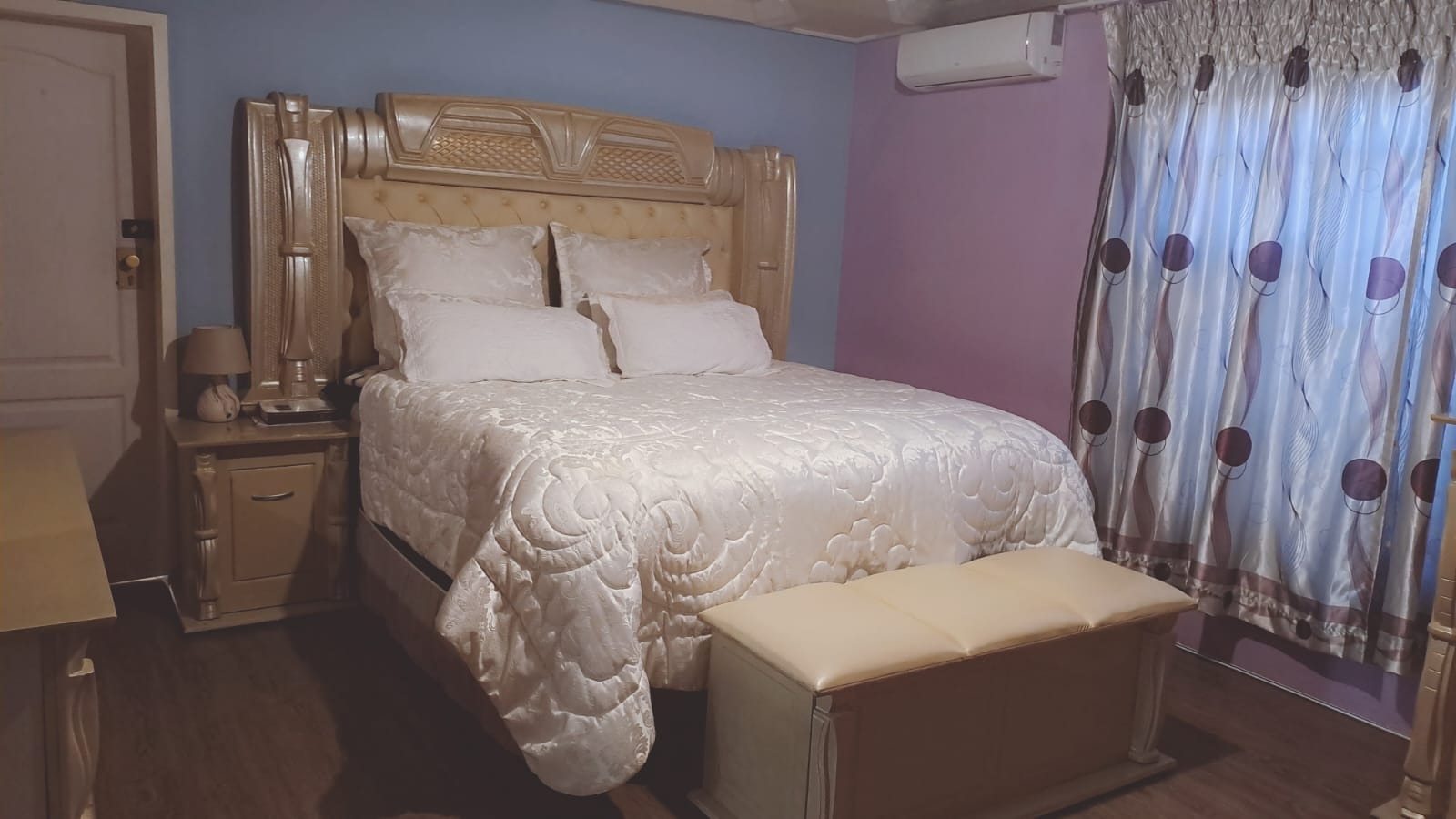 * MAIN BEDROOM - Includes air conditioning and en-suite bathroom with bath, shower, toilet, and basin