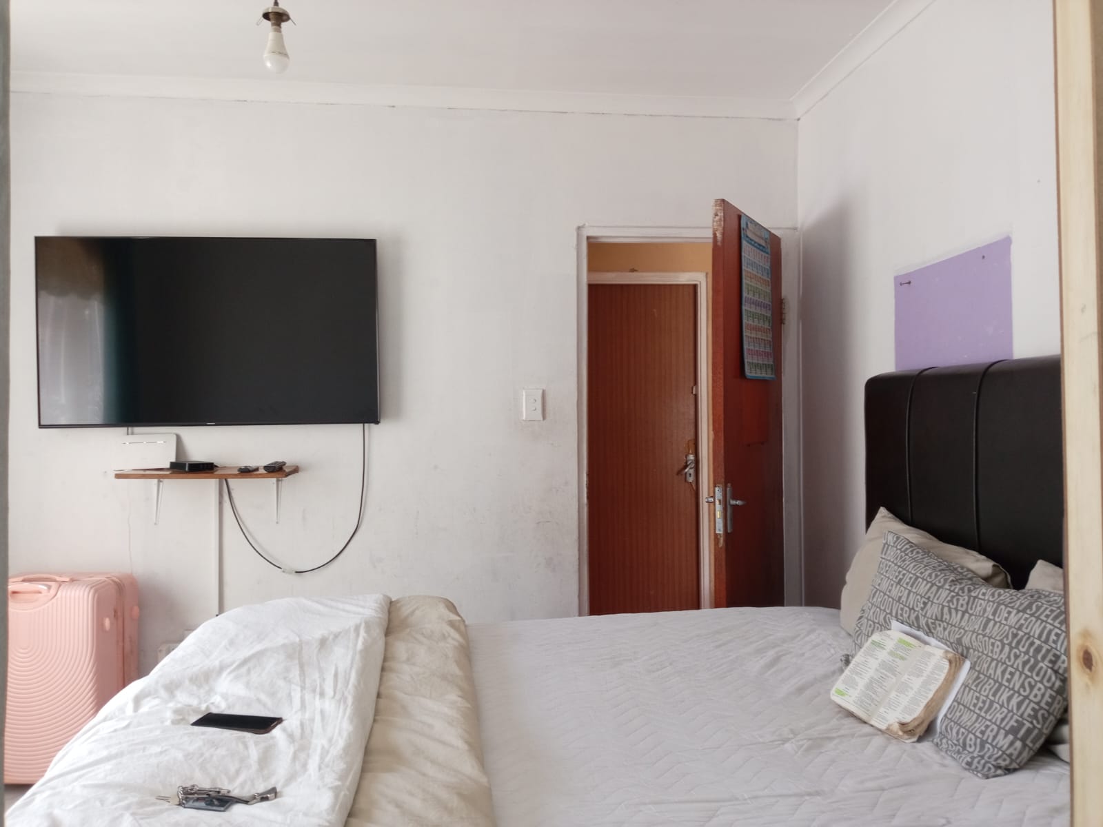 The house has three bedrooms: the master bedroom has a tiled floor and is equipped with a shower, sink, and toilet; the second and third bedrooms have met floors and separate shared bathrooms. a fully equipped kitchen with cabinets and a stove, as well as an open-concept dining and living area.