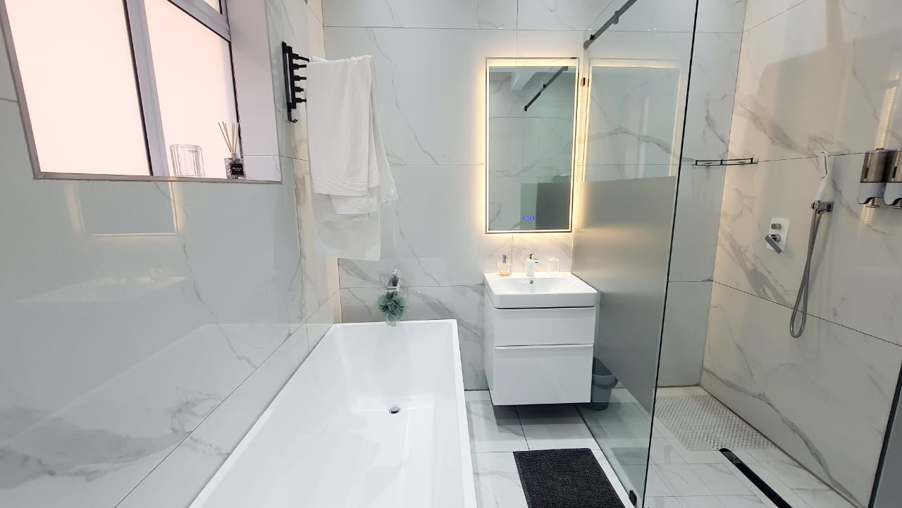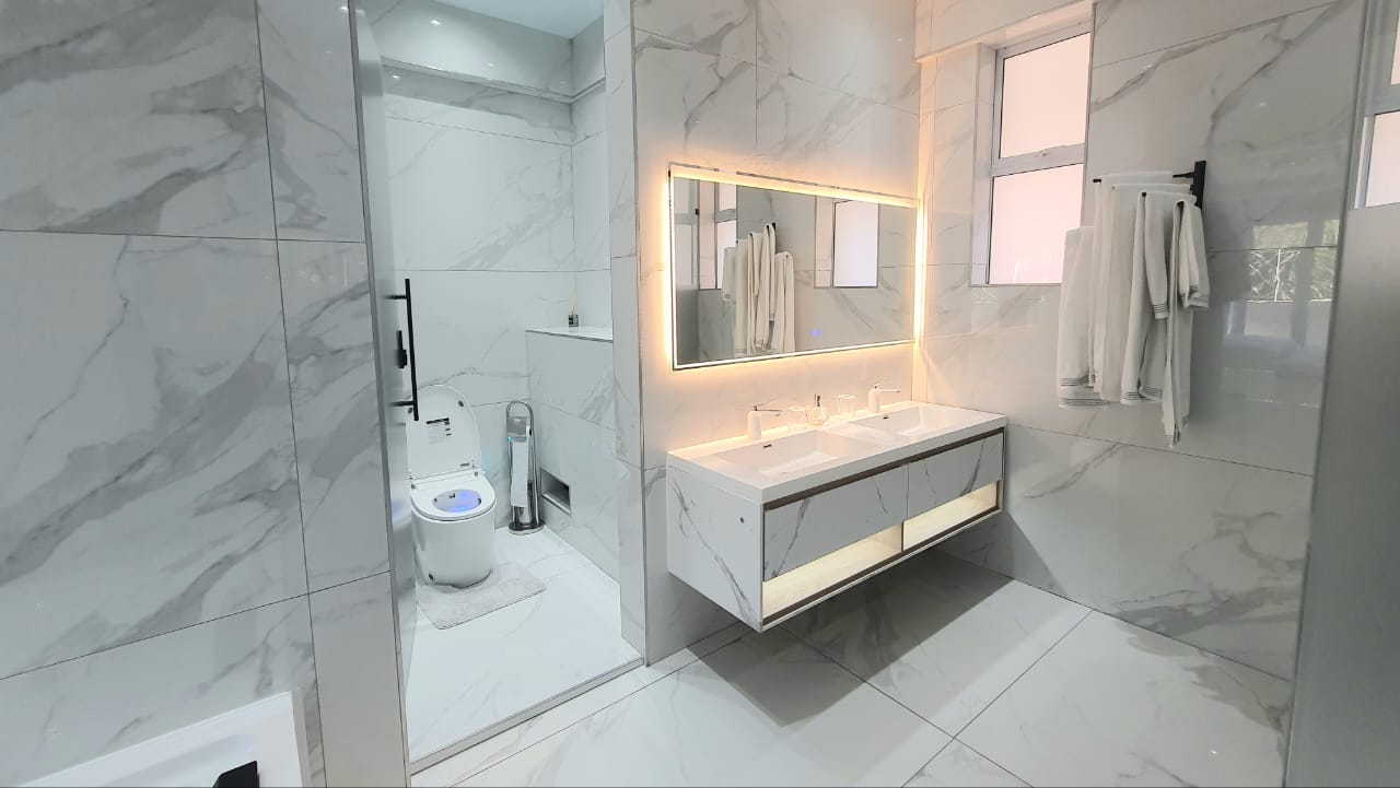 Each of the three bedrooms is a peaceful retreat, filled with natural light and thoughtful details that make every space feel personal and restful. The main bathroom feels like your own private spa — complete with a deep soaking bath and eco-conscious, paperless smart toilets that redefine everyday luxury.