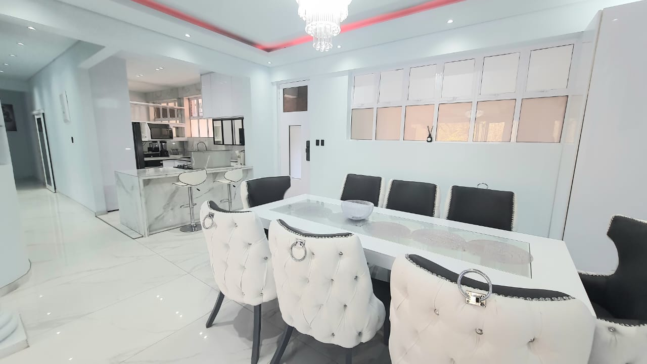 The open-plan dining and lounge area flows effortlessly, creating a warm balance between spacious and inviting — perfect for relaxed evenings or intimate gatherings.