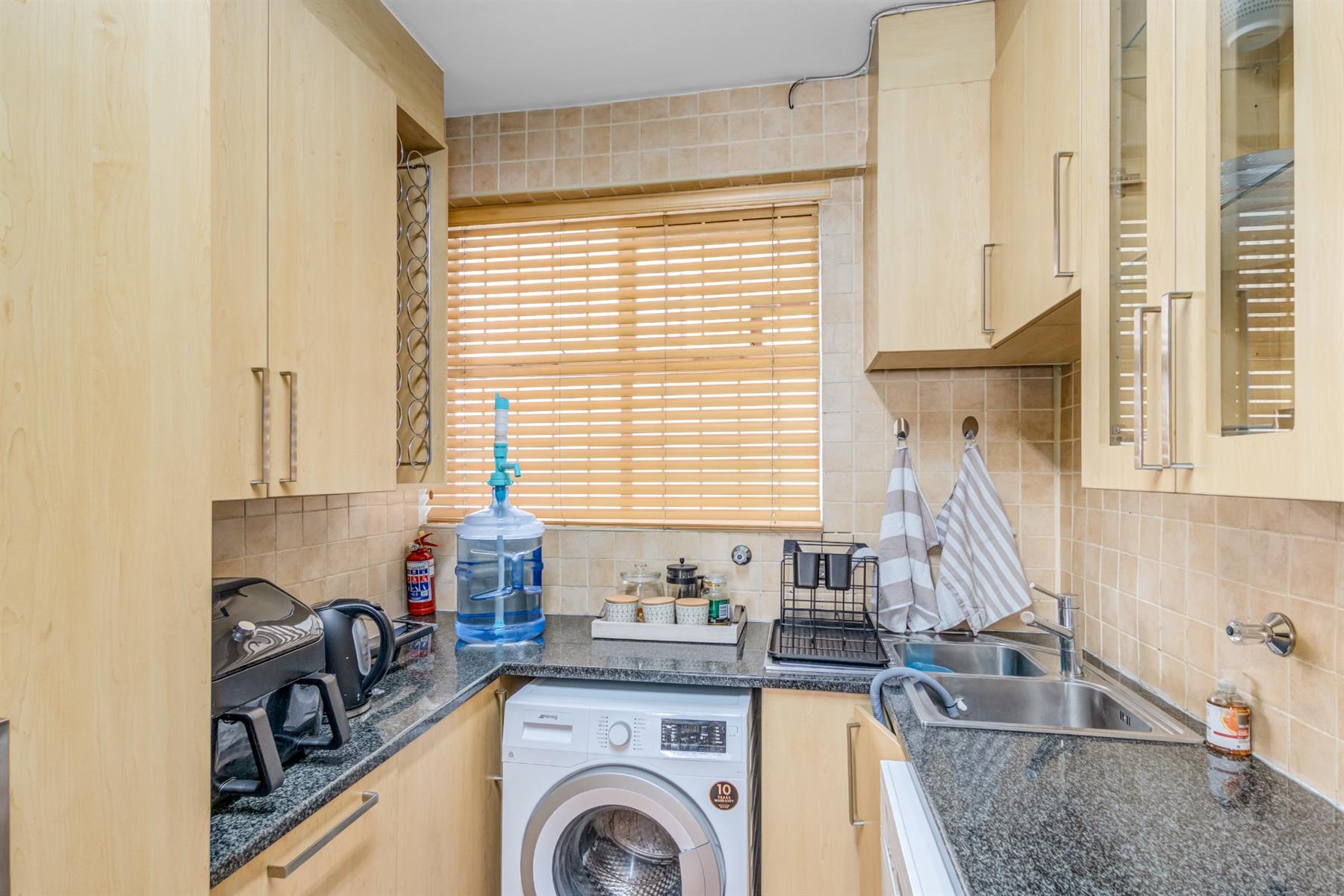 Step inside to find a stylish kitchen equipped with granite tops, lots of cupboard space, pantry, space for 2 under counter appliances, a gas hob, electric oven and extractor, and a convenient breakfast nook, perfect for enjoying your morning coffee. The spacious living area seamlessly flows onto a private large covered balcony, where you can unwind and enjoy the magnificent views of the manicured gardens . Both bedrooms are thoughtfully designed, with the spacious main bedroom boasting an en-suite bathroom for added privacy and convenience. The main bedroom interleads to the balcony.