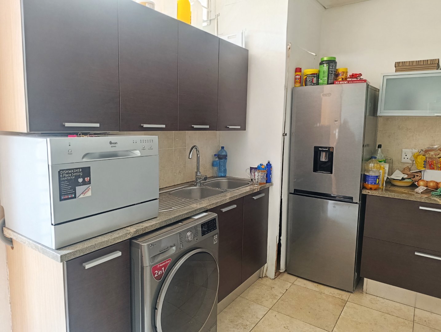 The open-plan kitchen has an eye-level oven with extractor fan, and comes with a Countertop dishwasher (see pics). There is also a space for a washing machine, making chores a breeze.