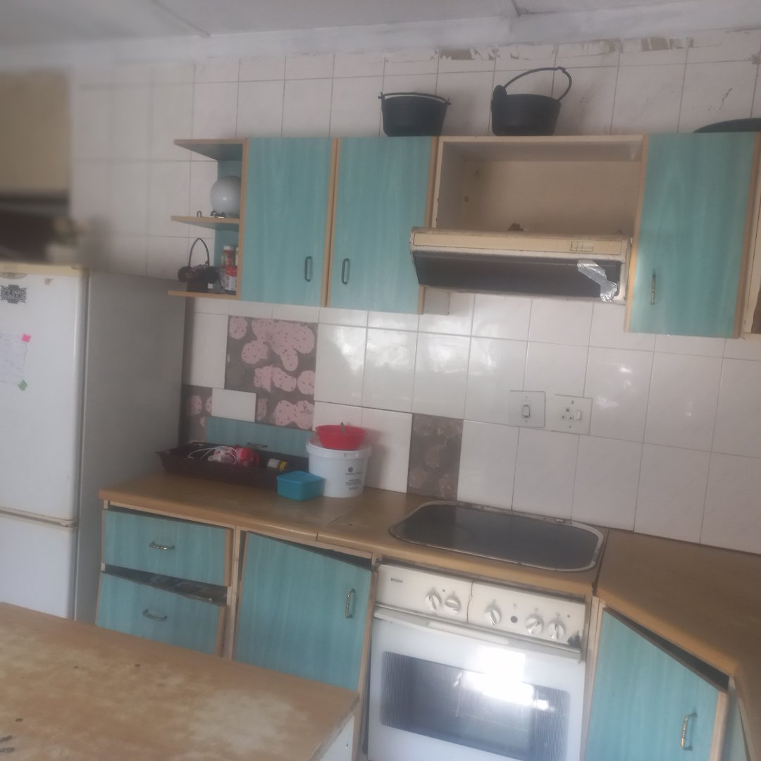 The property is in a fairly good location,below road level with neighbours that have lived there for many years.This is a 2 bedroom house, fully tiled with built in cupboards in all the rooms ,a fully fitted kitchen and 1 lock up garage.