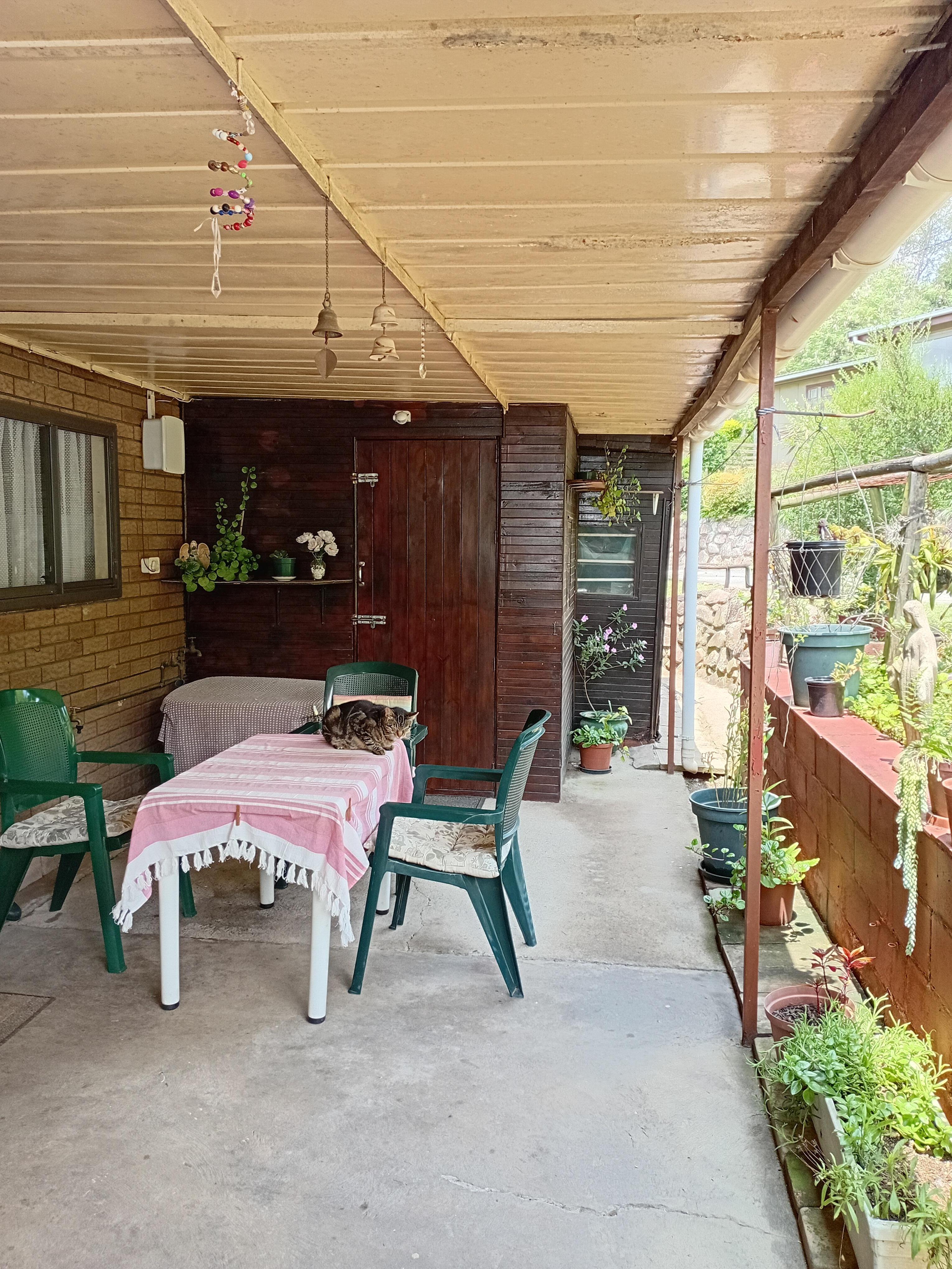 This unit is as neat as a pin, just move in and enjoy. It consists of 3 bedrooms of which two have ceiling fans and the main bedroom has an air conditioner. There is 1 bathroom with a shower and a seperate guest toilet with a basin. The dining room is spacious and open plan with the kitchen. The lounge is open and airy and has an aircoditioner for those hot summer days. The house is wired with an alarm system and sensors. Outside you will find a covered carport and a lockup tool shed/workshop and at the back there is a covered patio which overlooks a liscious garden and a view over the valley.