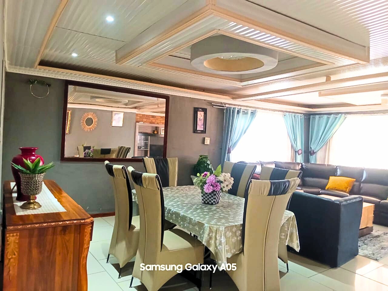 3 bedroom , 2 bathroom double garage 2 lounge one with fire place all bedroom had cupboards. Inverter back up for loadshedding with six outside back rooms