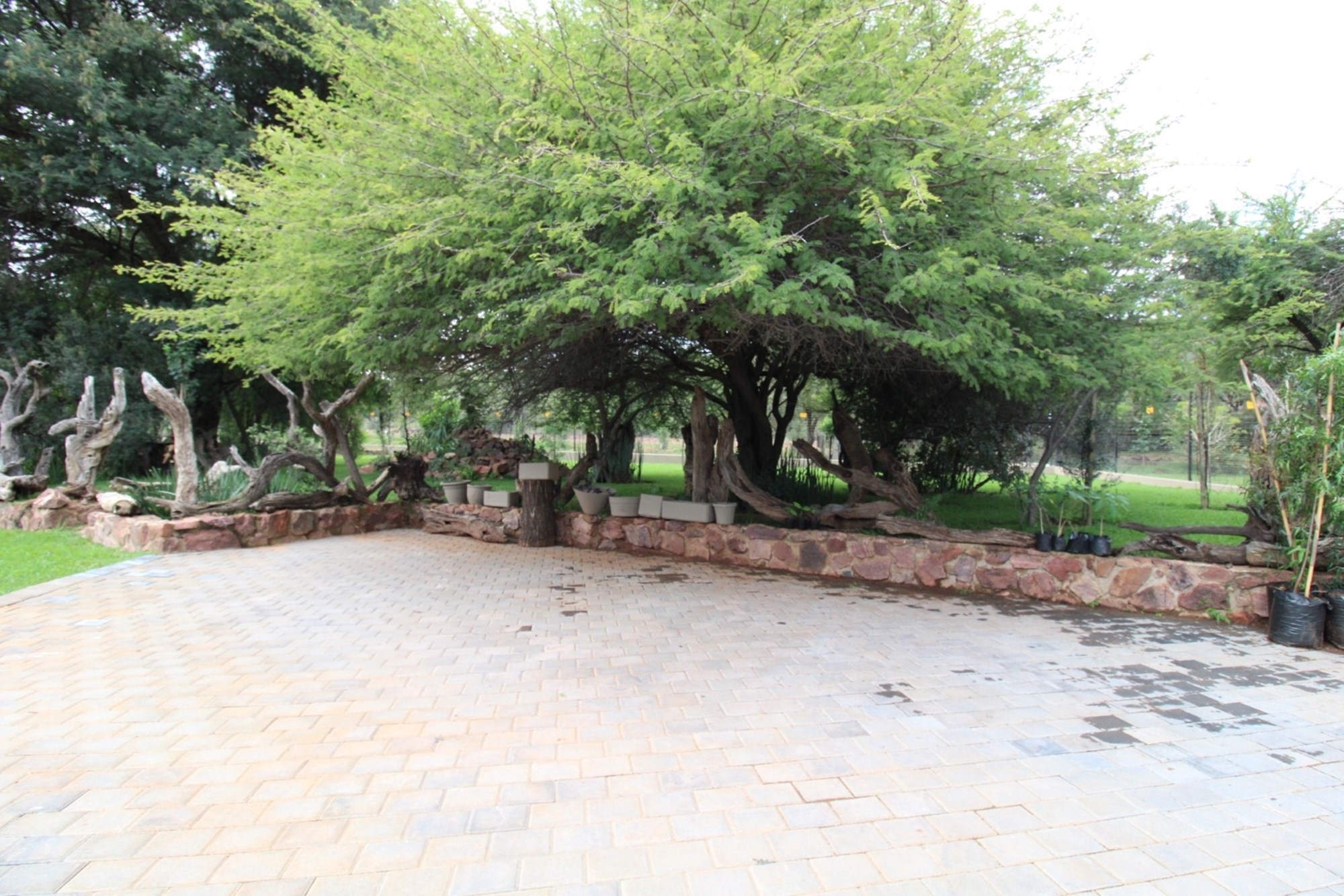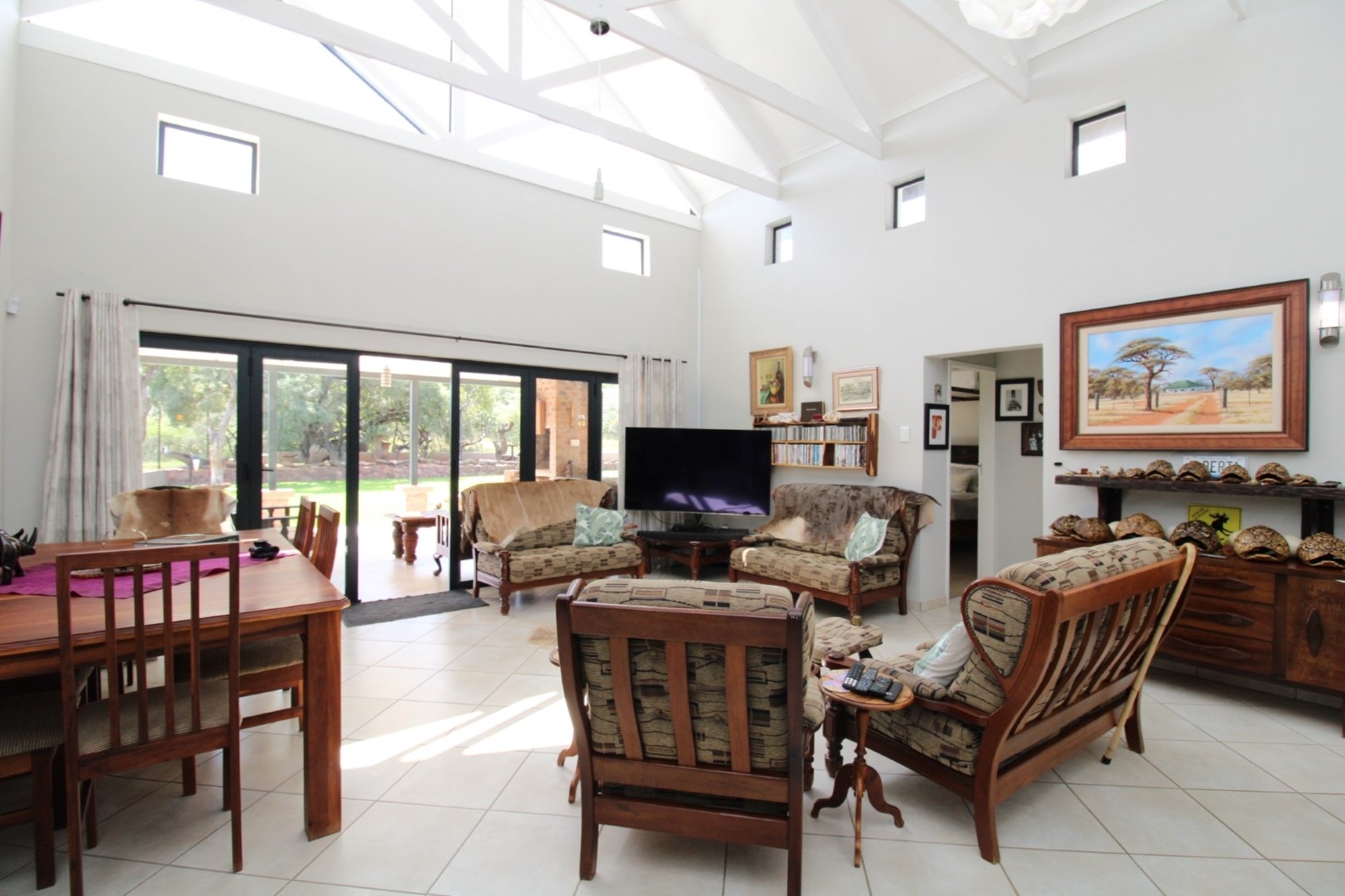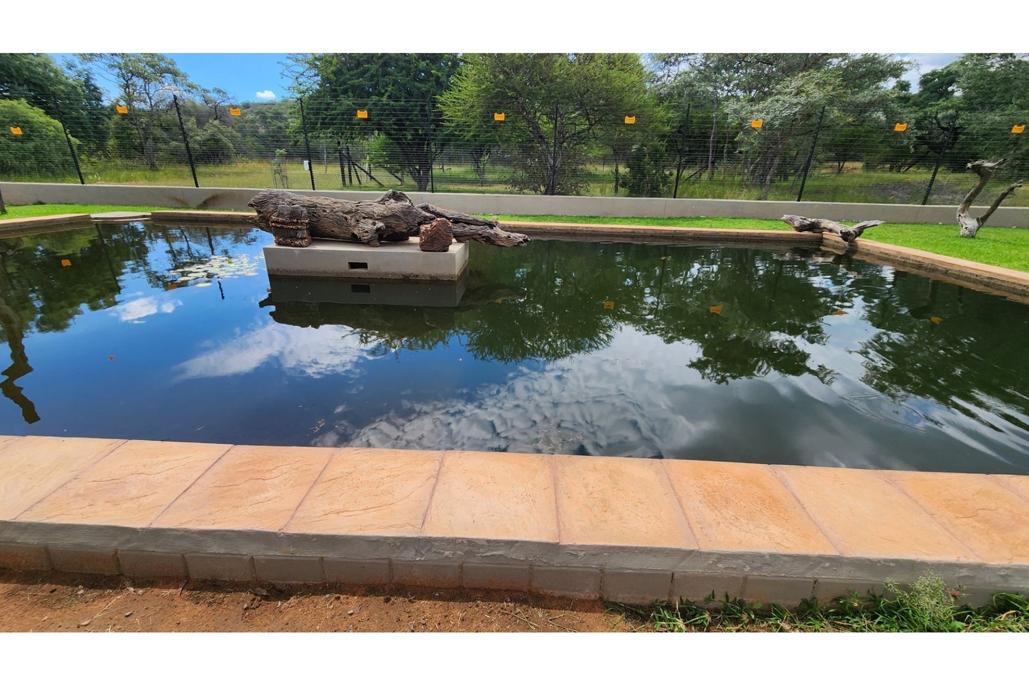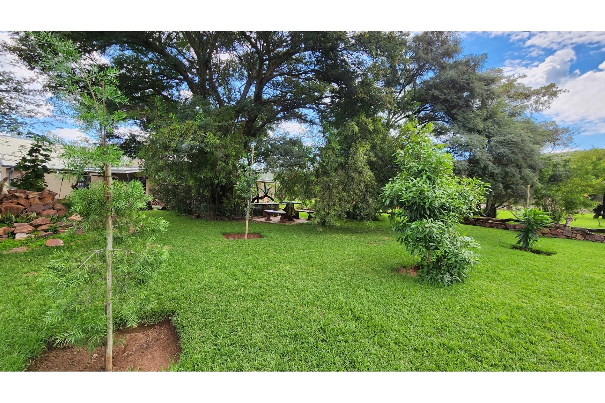 The outdoor spaces truly celebrate the beauty of indigenous flora with over 300 specially planted indigenous trees punctuating a manicured, expansive lawn maintained by an automatic irrigation system. Leadwood features and a strategic layout of water elements serve to create a mesmerizing landscape that blends seamlessly with the surrounding bushveld scenery. A concrete water storage dam, purpose-built for both irrigation and captivating water features, reinforces the fusion of luxury and sustainability in every aspect of this remarkable property.