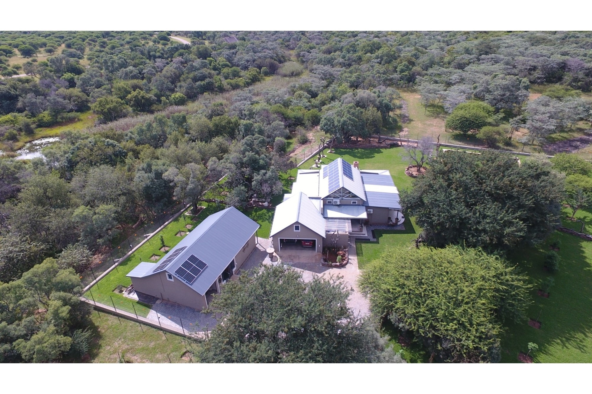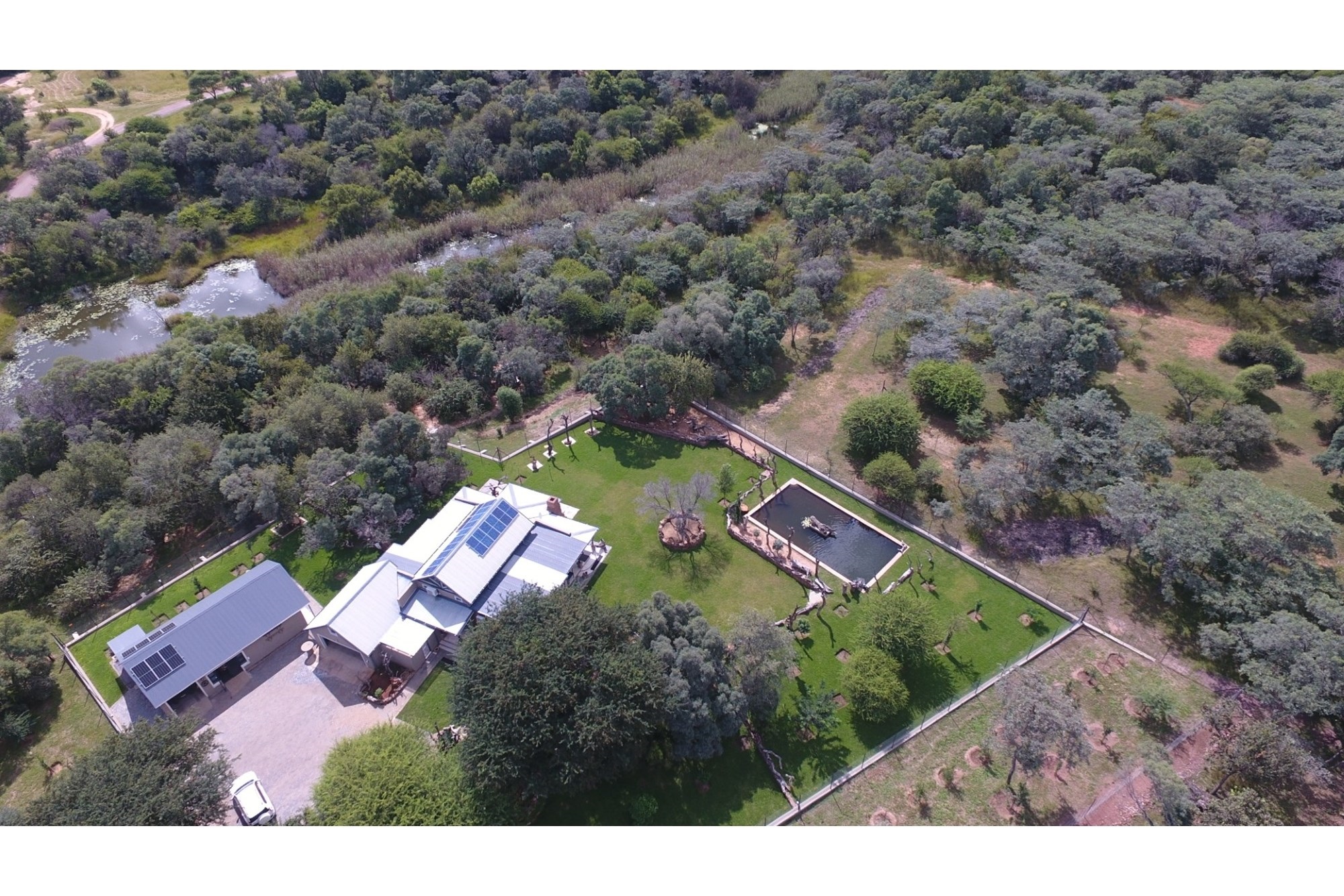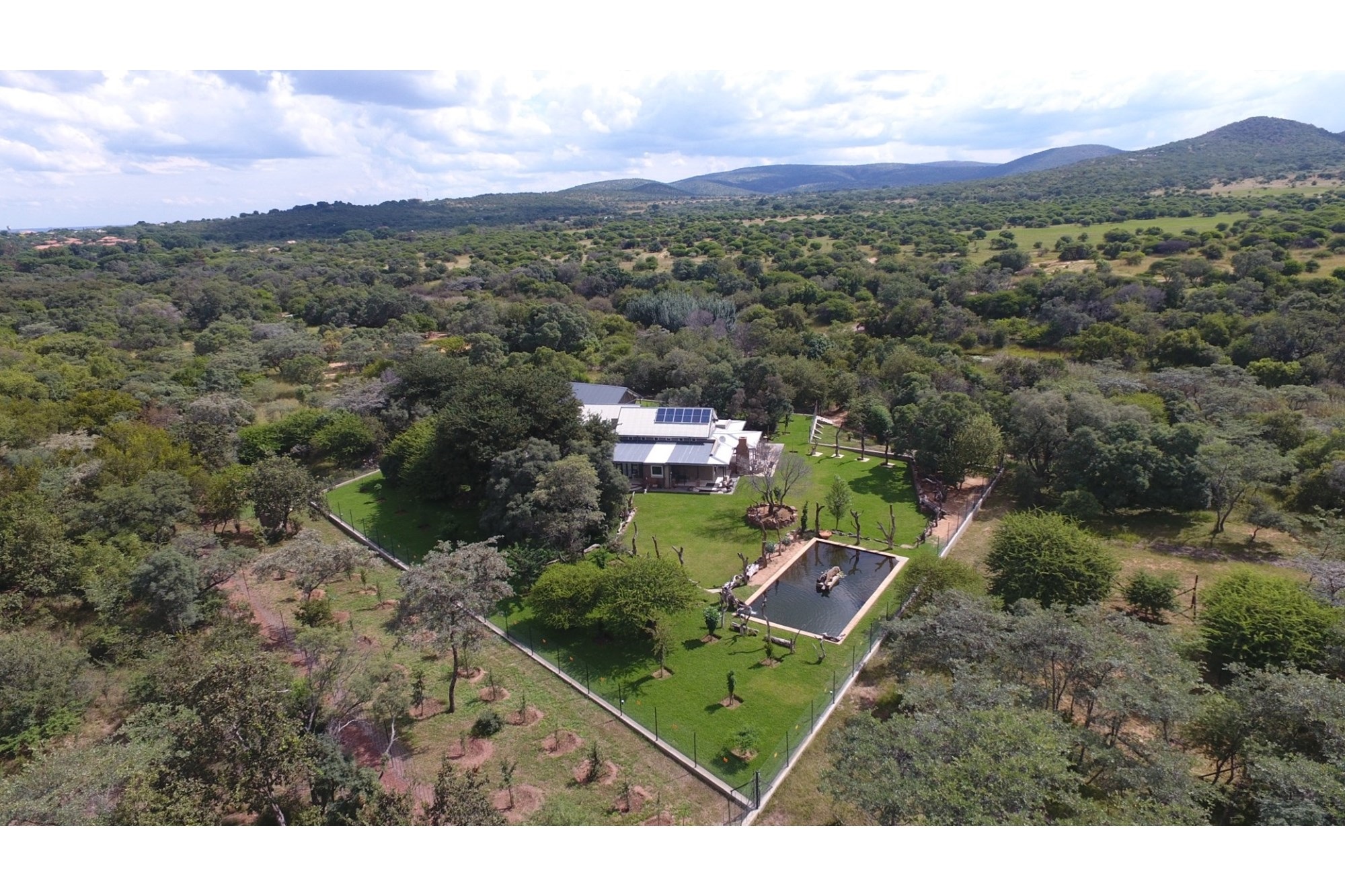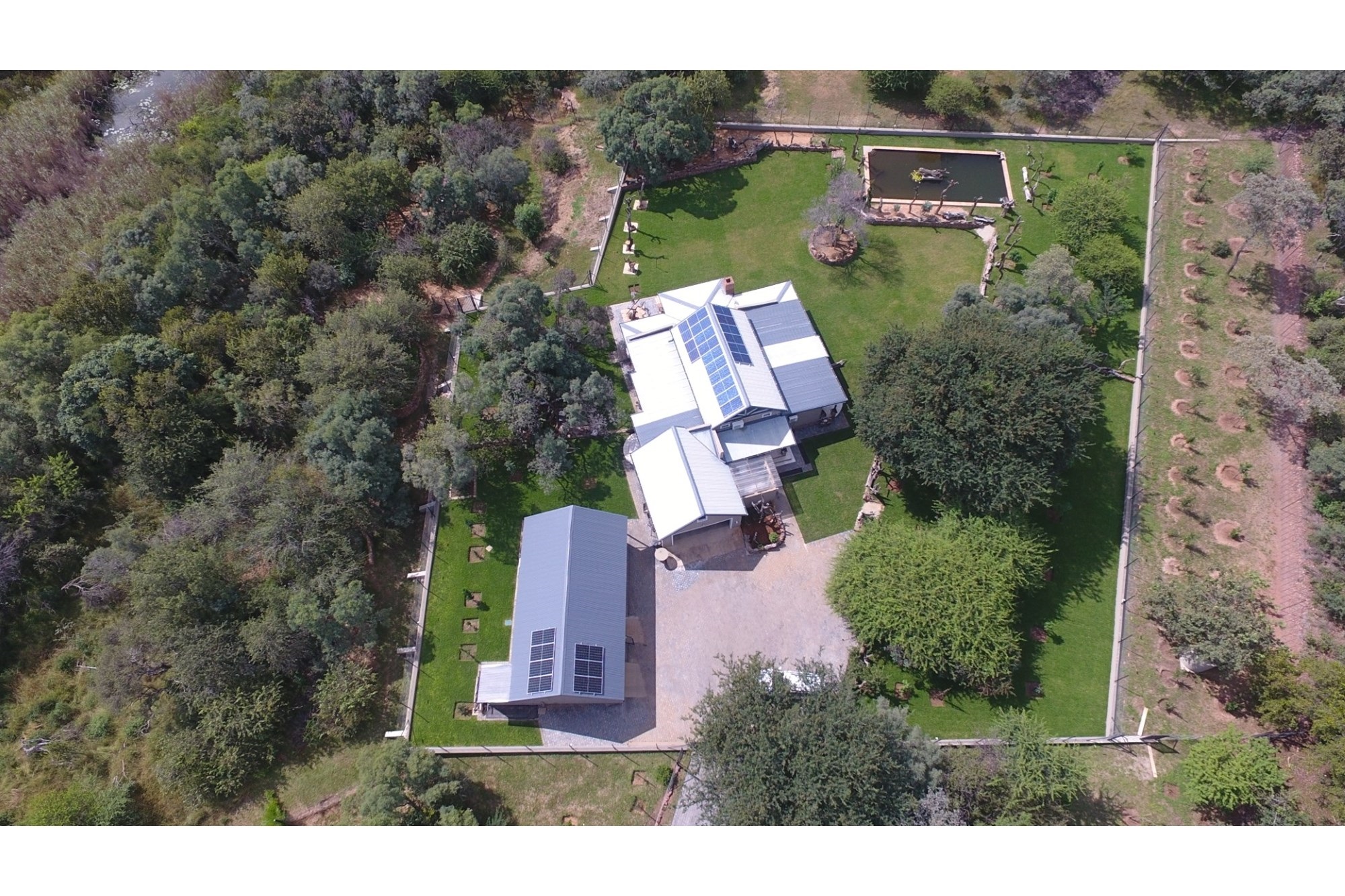The main house, a stunning pitched roofed residence, sits on an impeccably landscaped stand enriched with attractive bush and water features. A bird hide overlooking the dam and a dedicated Bush Boma braai area (Boskamp) invite you to savour unforgettable outdoor experiences in the true spirit of bushveld living. The robust main solar installation featuring 18 solar panels, two x 5kW inverters, and 15 kW backup batteries, all underscores the estate`s commitment to sustainable living.