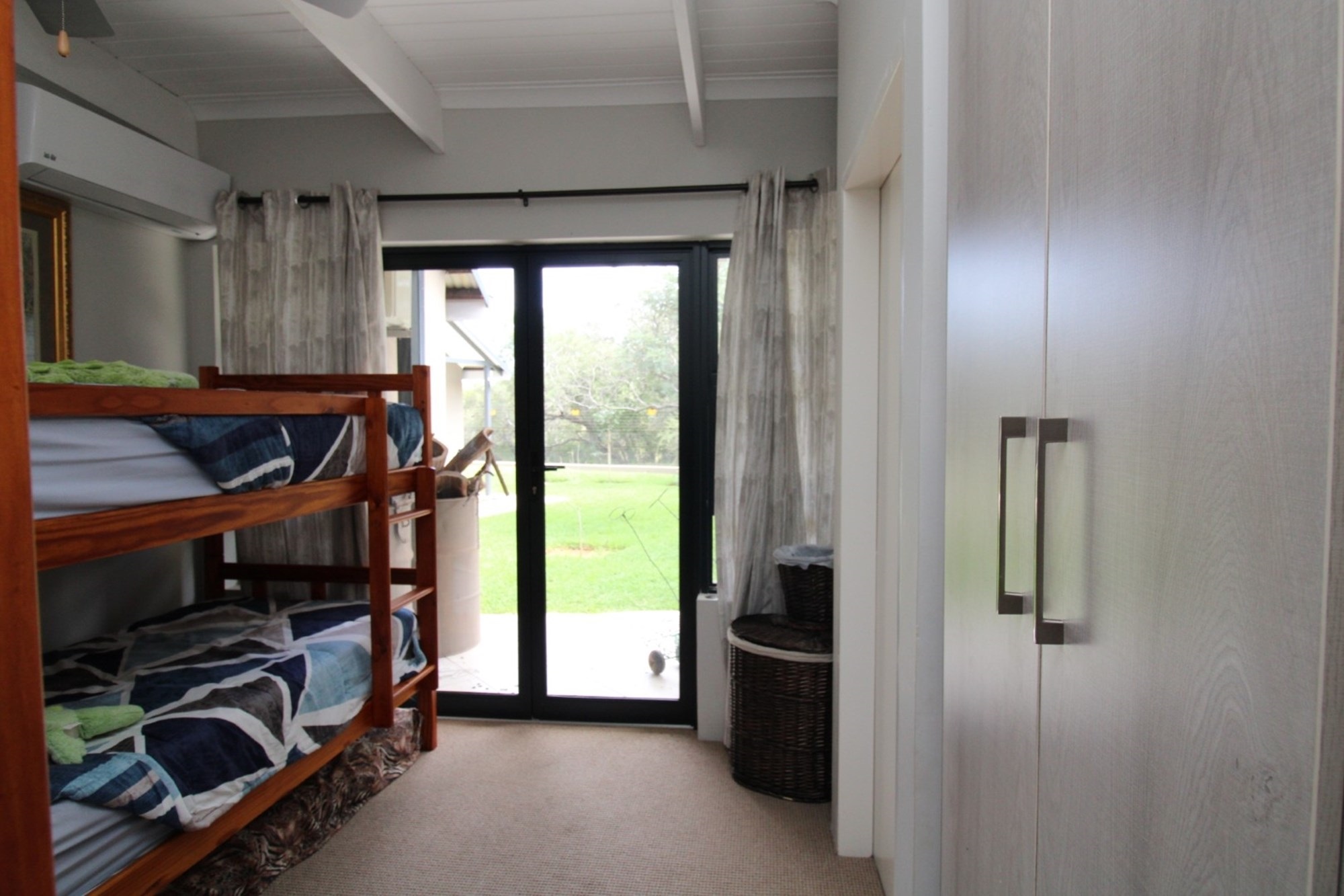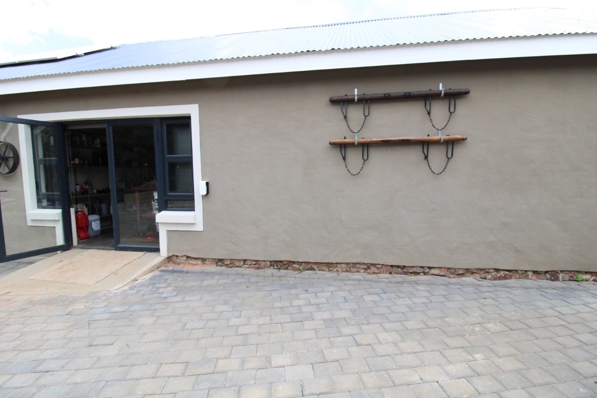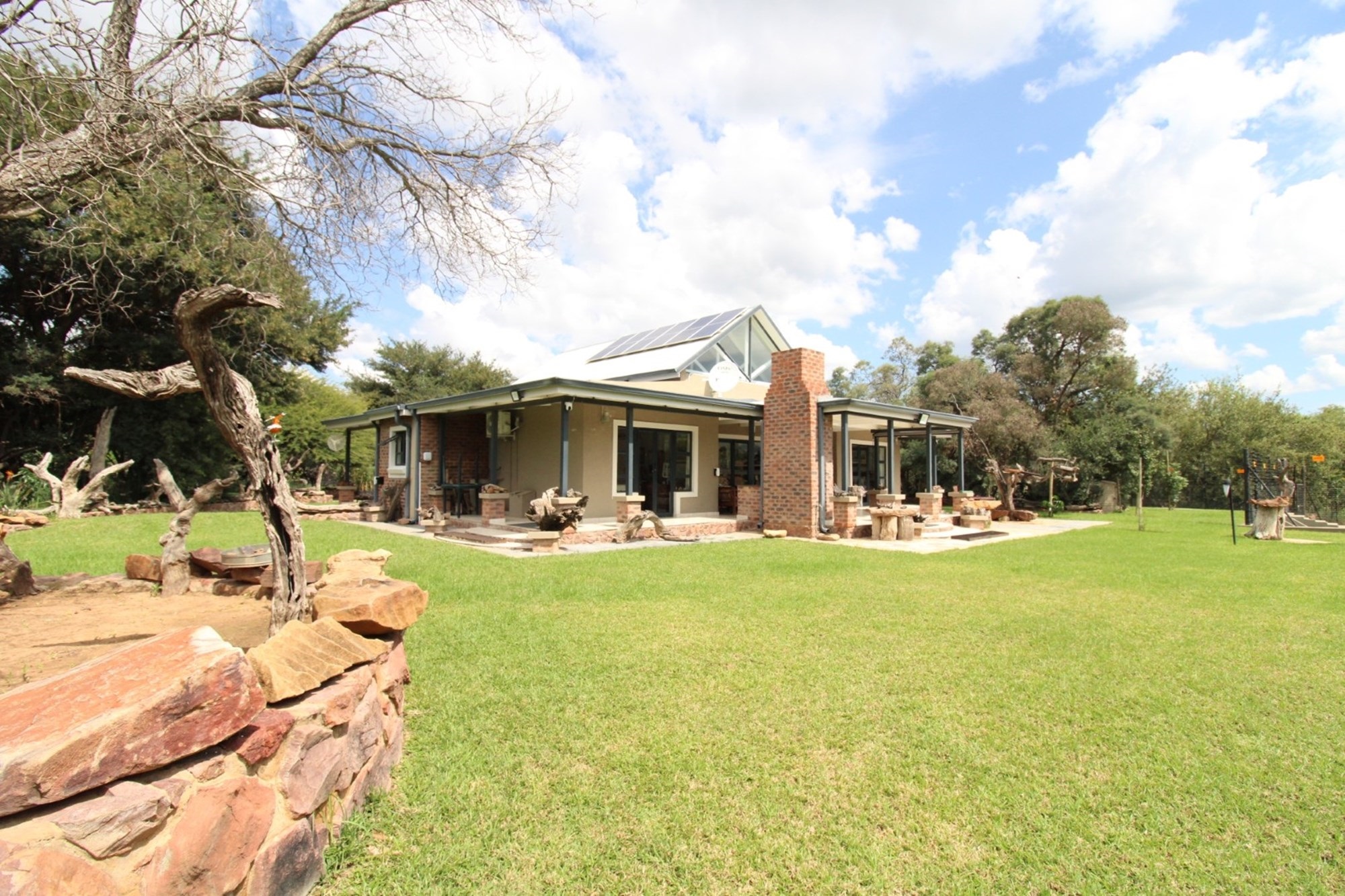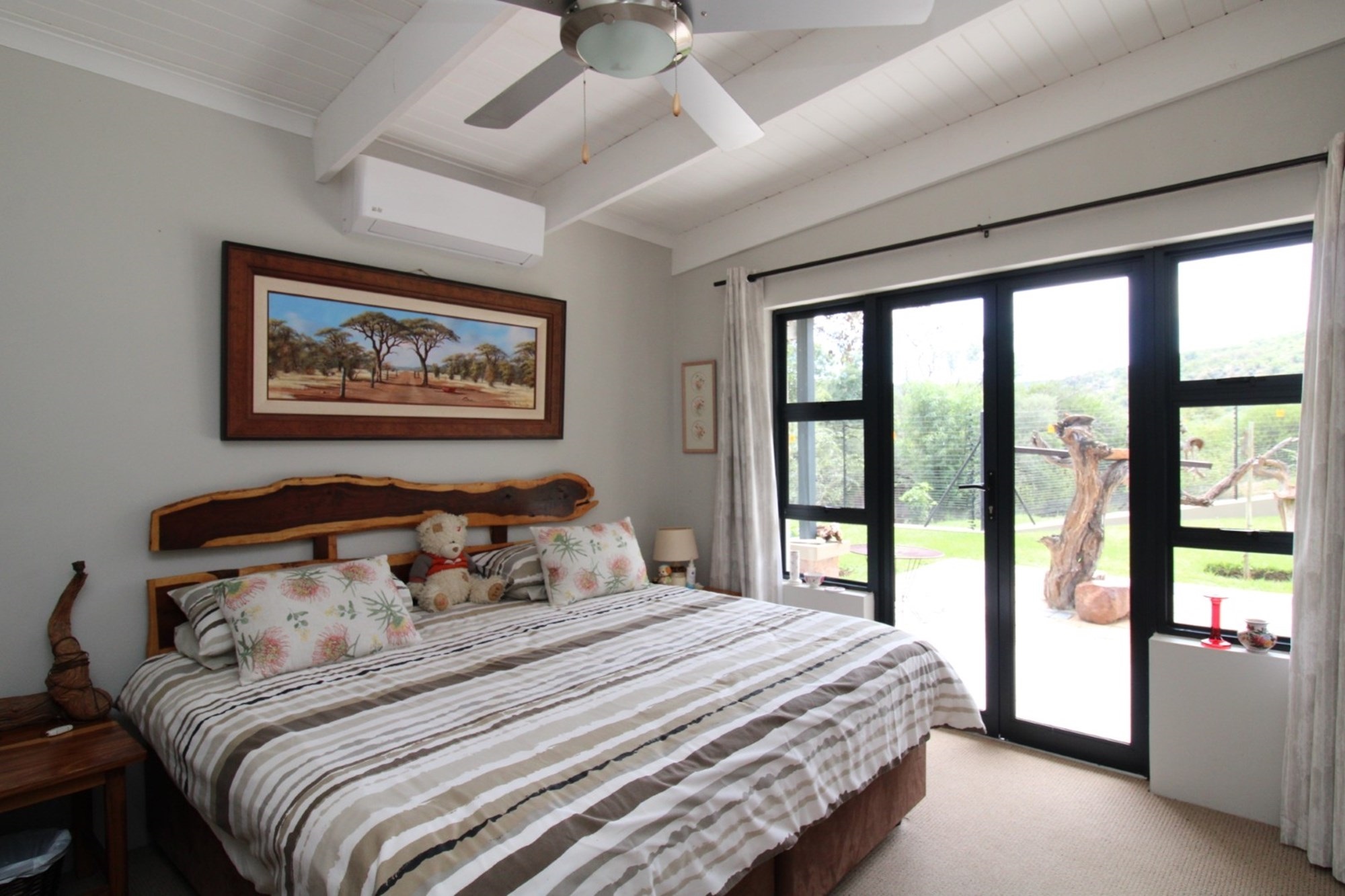 The main house, a stunning pitched roofed residence, sits on an impeccably landscaped stand enriched with attractive bush and water features. A bird hide overlooking the dam and a dedicated Bush Boma braai area (Boskamp) invite you to savour unforgettable outdoor experiences in the true spirit of bushveld living. The robust main solar installation featuring 18 solar panels, two x 5kW inverters, and 15 kW backup batteries, all underscores the estate`s commitment to sustainable living.