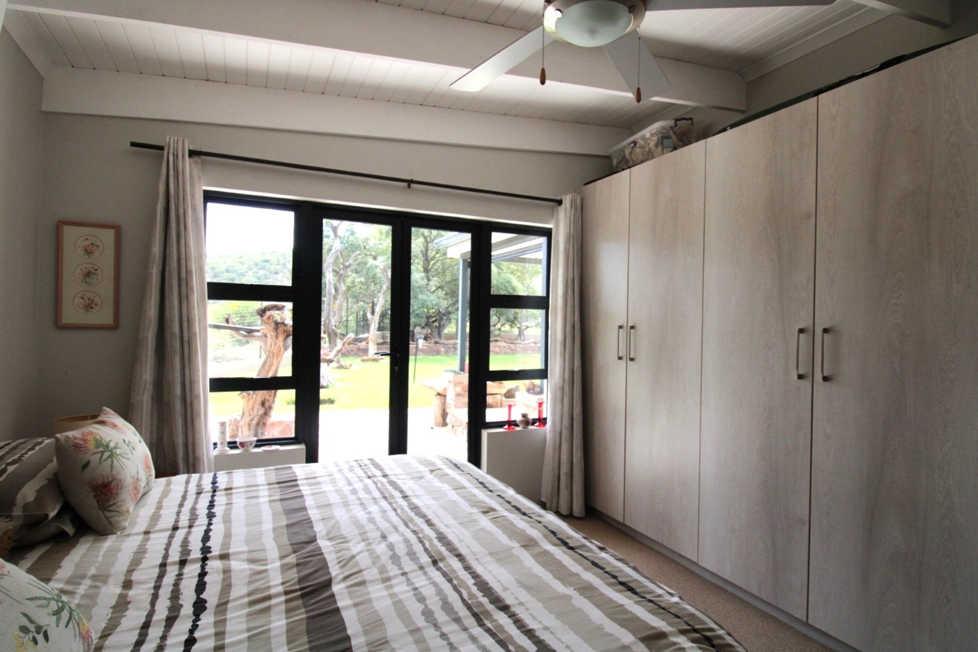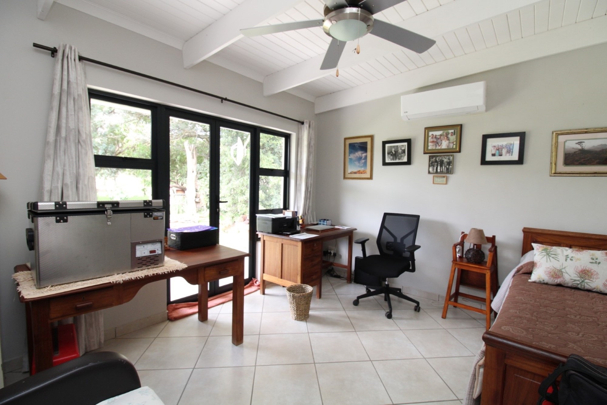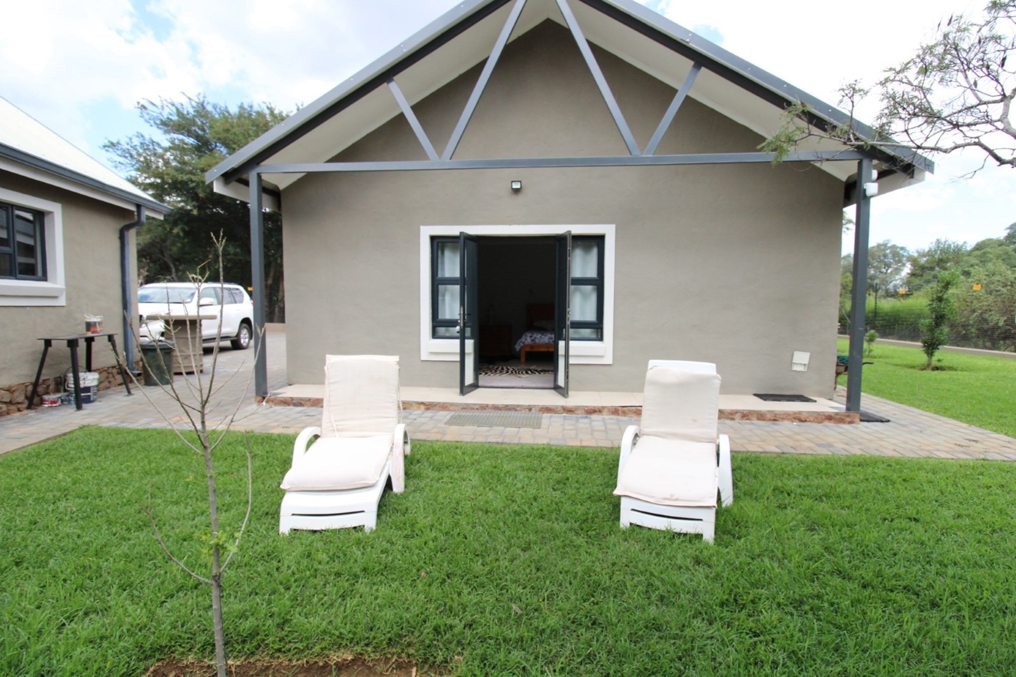 Step inside the main house to discover an open plan layout designed for effortless flow and comfort. Three inviting bedrooms and three modern bathrooms cater to the needs of a dynamic household, while an expansive living area integrates a contemporary kitchen, dining, lounge, and study (which can also be used for an additional bedroom). The well-appointed scullery, a and a spacious under-cover patio with a built-in braai, offer a perfect balance of indoor luxury and outdoor charm. Air conditioning in the bedrooms, study, and living spaces ensures comfort in every season. Completing this exquisite package is a self-contained one-bedroom chalet, boasting its own ensuite bathroom and air conditioning—ideal for guests, a private retreat, or adjunct living space.
