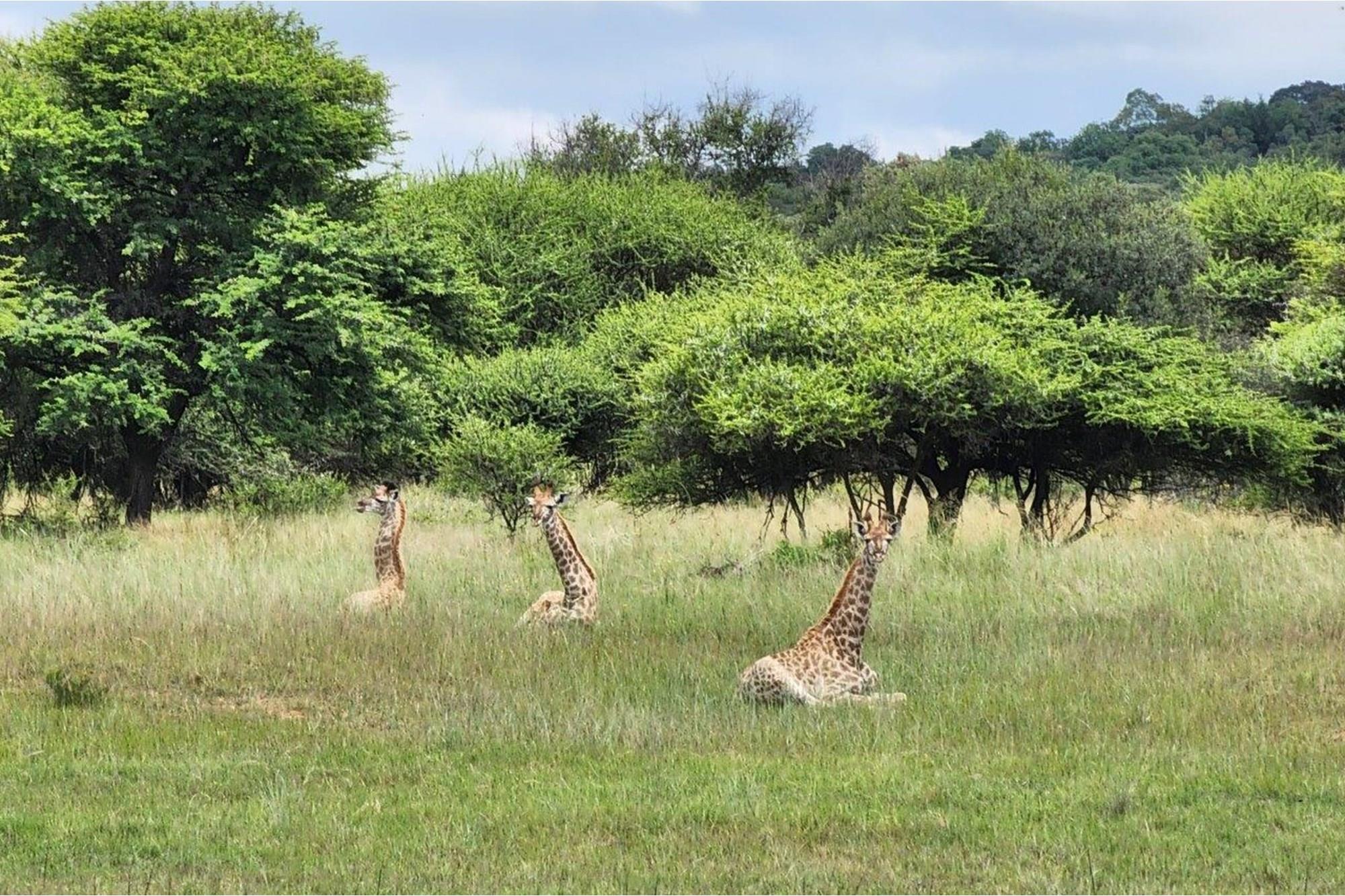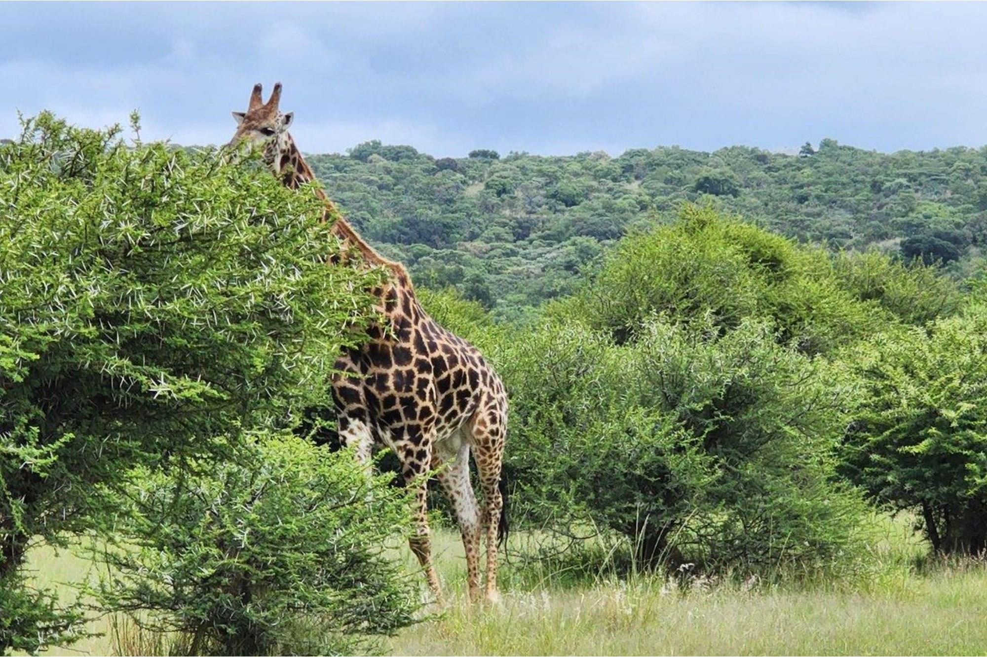 Game species include giraffe, wildebeest, zebra, duiker, kudu, impala, blesbuck, sable antelope, bushbuck, warthog, waterbuck, nyala, and other small common game species.