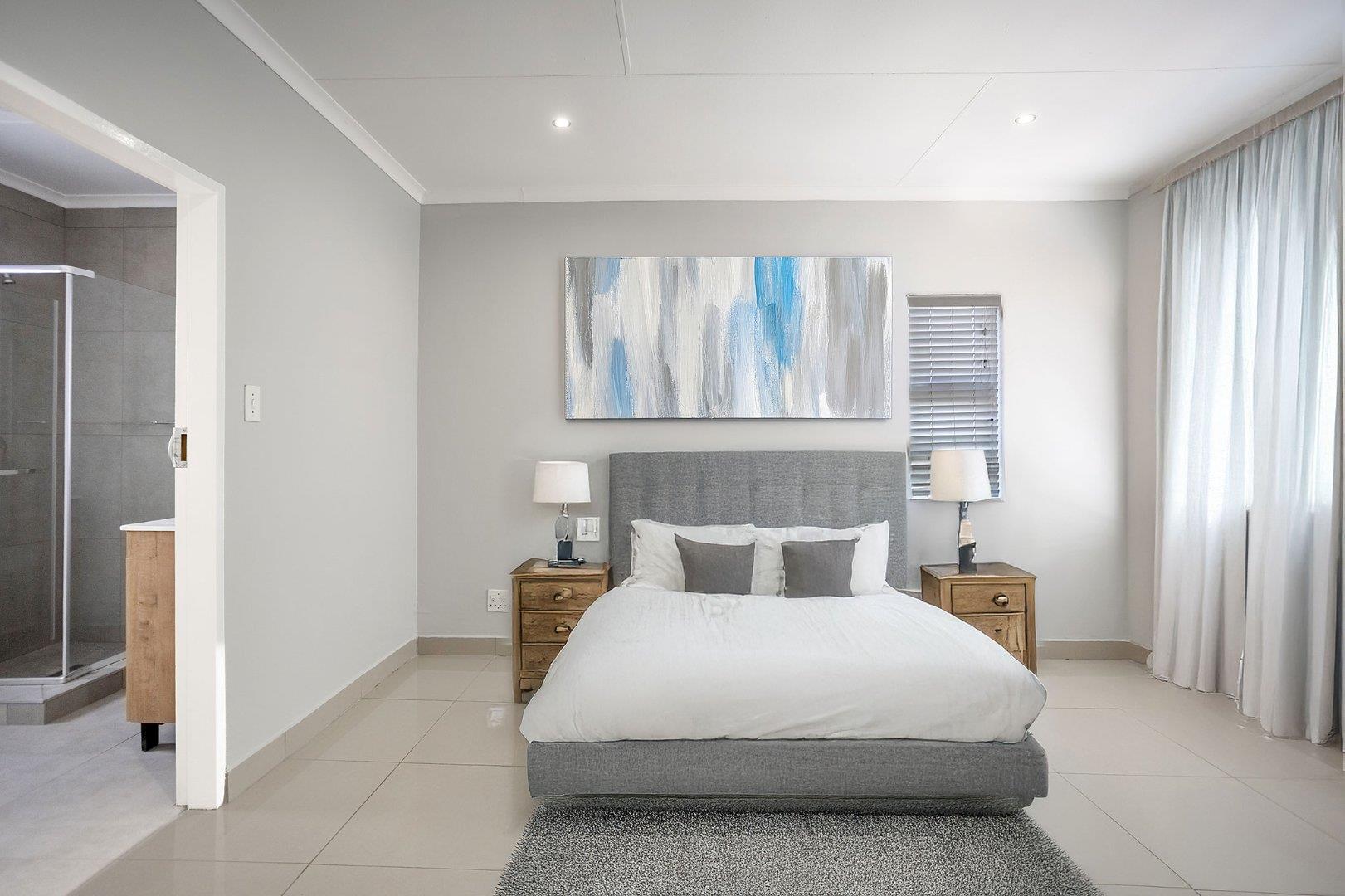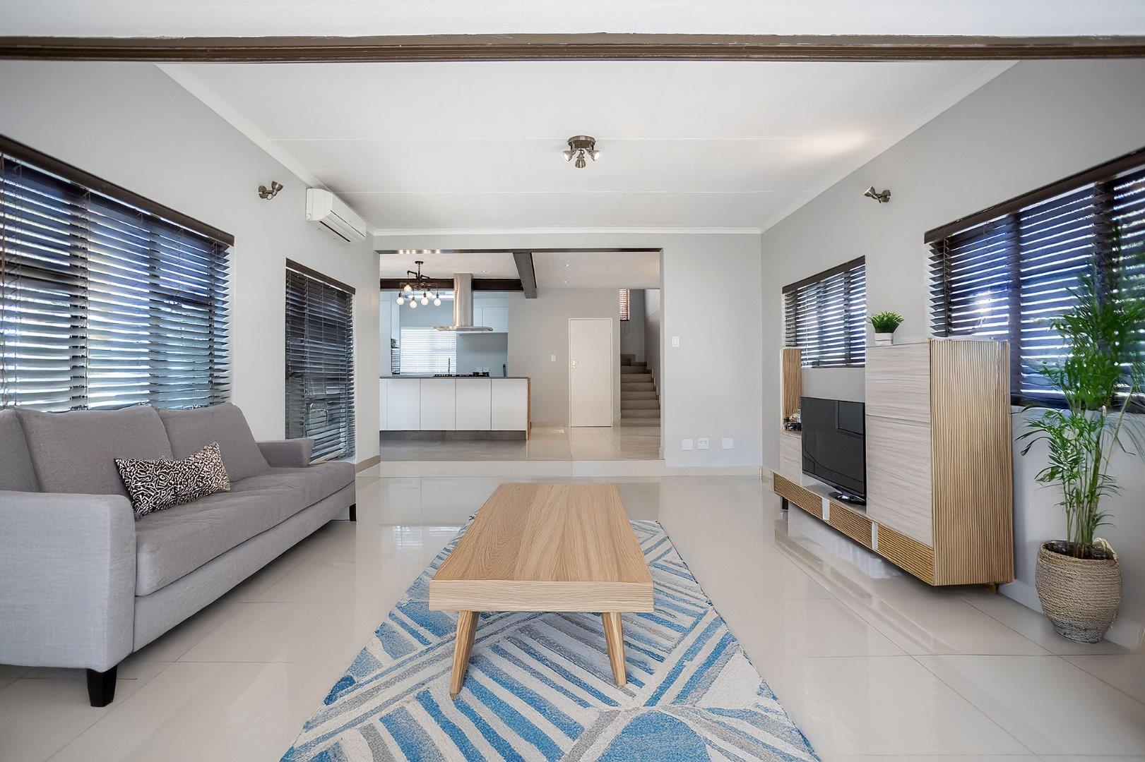 Sole and exclusive mandate. This beautifully renovated home in a sought-after security estate combines modern elegance with practical sophistication. Recently renovated to a very high standard, the home showcases a brand-new kitchen fitted with sleek white cabinetry, Caesarstone countertops, and a central island with gas stove — the perfect space for both everyday living and entertaining.