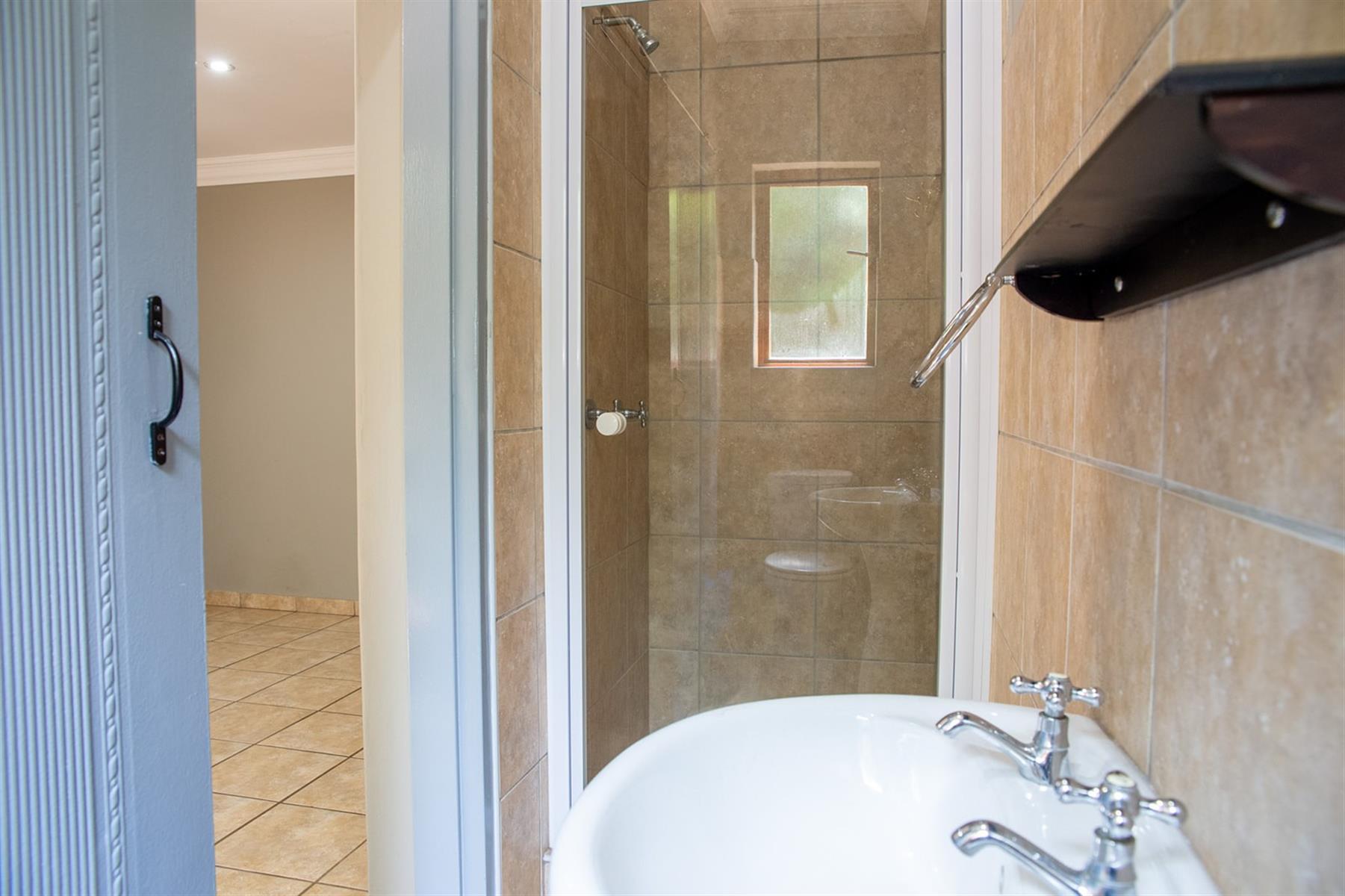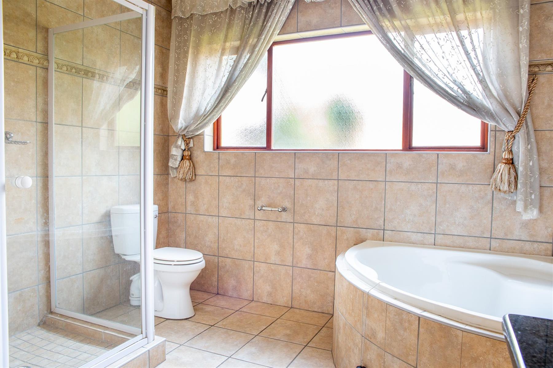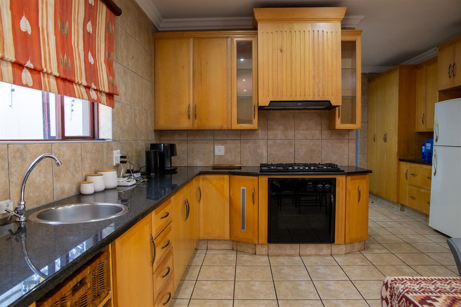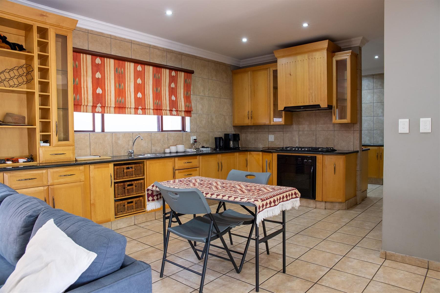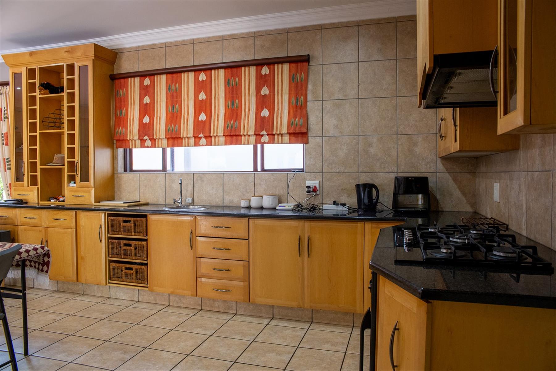 The open-plan living space and modern kitchen form the heart of the home, offering both practicality and ease. The kitchen is well appointed with a gas stove, generous cupboard space, a pantry, and a large separate scullery, making it ideal for busy households and those who enjoy entertaining.