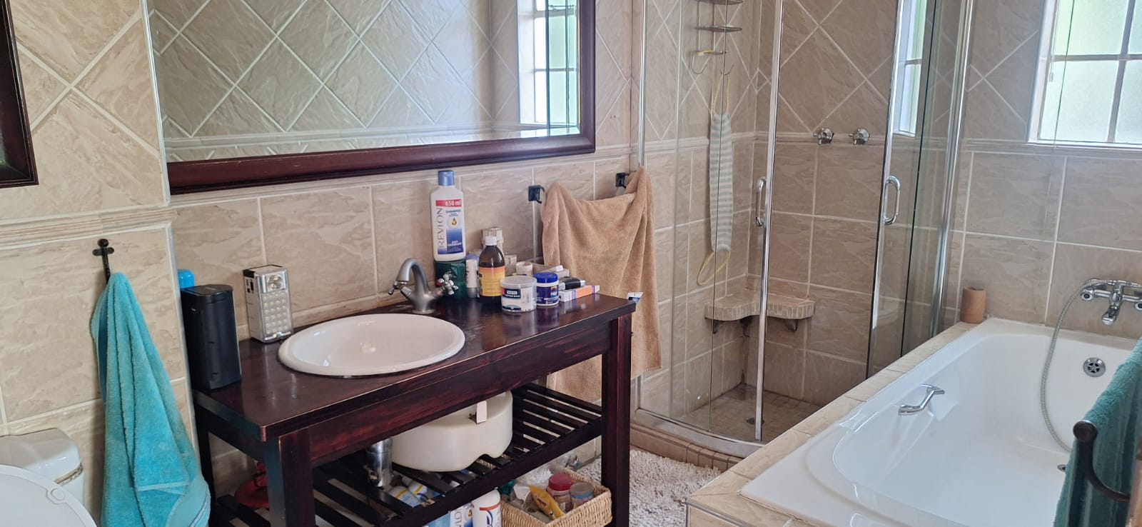 Parking is plentiful with a double garage and a carport accommodating up to four vehicles. Practical extras include an electric gate, air-conditioning, a borehole, and an irrigation system, ensuring convenience and cost-efficiency.