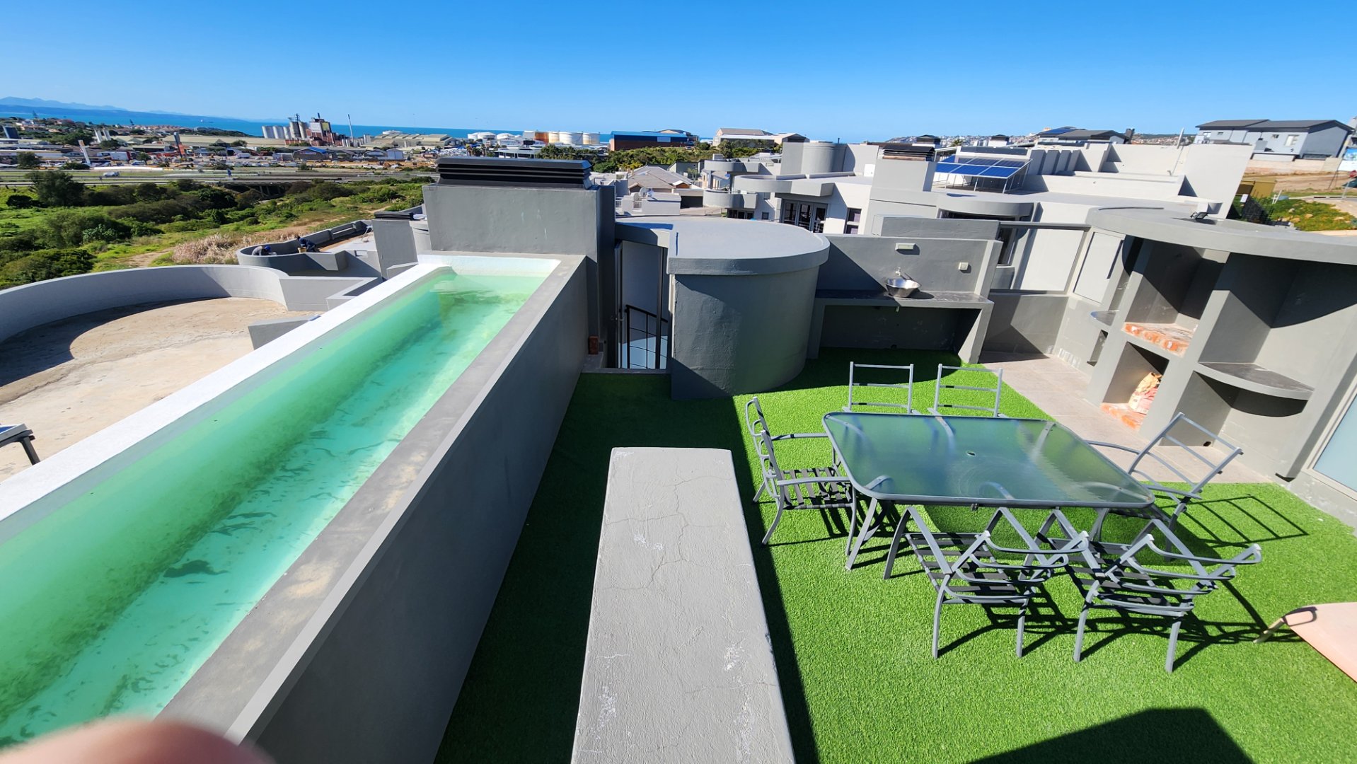 This is one of the special apartments in this very popular complex and you will have your own rooftop area with a sparkling blue splash pool and stunning mountain and distant sea views to entertain your friends and family in style. Two bedrooms with two bathrooms en suite as well as a spacious open plan living area with build in braai. Large covered balcony with stacker doors that will create an "open feeling" with beautiful views that can also be enjoyed from the living room. One shaded carport for safe parking of your vehicle as well as visitors parking available at the complex. There is also a lift in the complex for ease of access to the wheelchair impaired as well as the elderly persons and the complex is totally fenced with electric fencing for your safety and security. With permission you can also keep one small dog making this the perfect opportunity for animal lovers to house your favourite pet. This apartment is north facing and sunny and you will appreciate the warmth during the long winter months. Excellent location between the coastal towns of Mossel Bay and Hartenbos with a large shopping mall in close proximity and easy access to the N2 Highway. For more information or appointment to view this special apartment you are welcome to contact me.