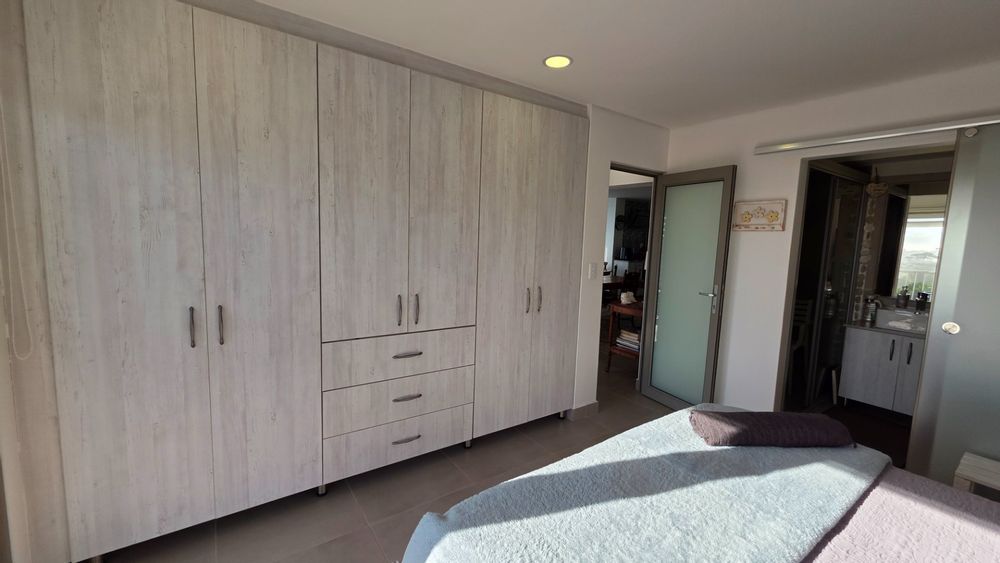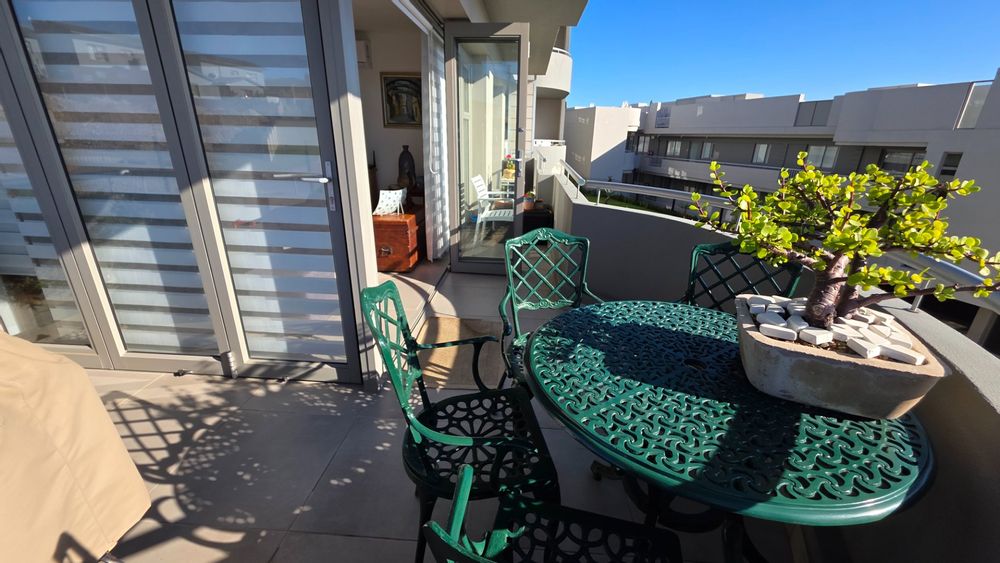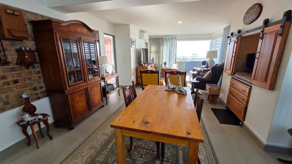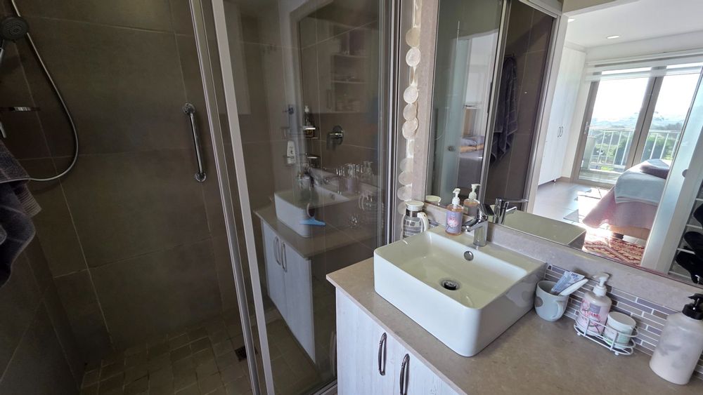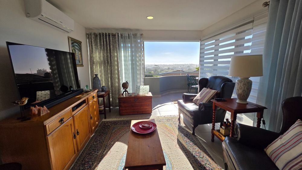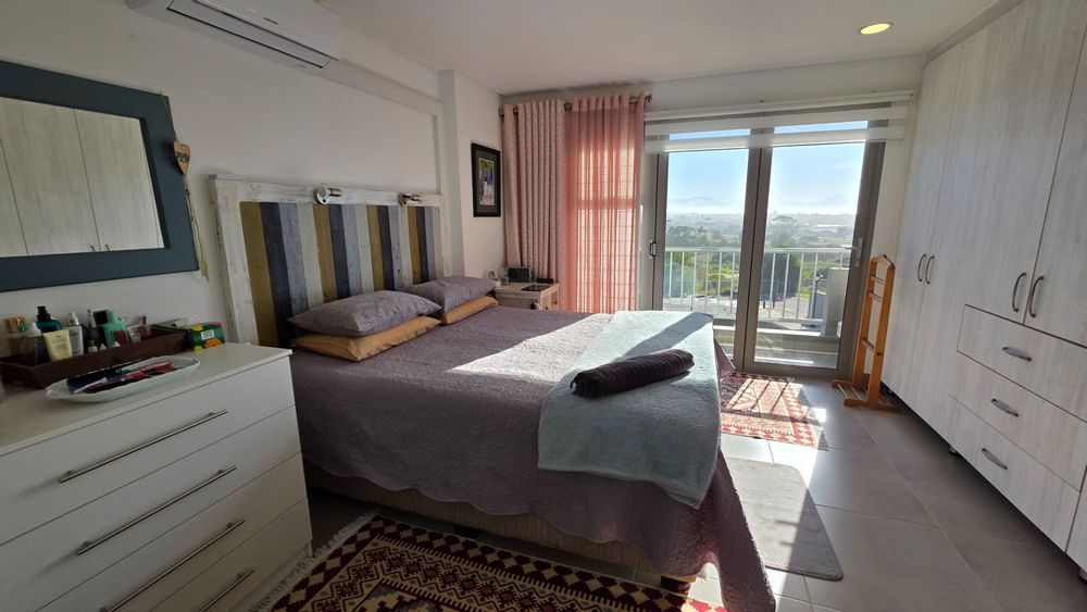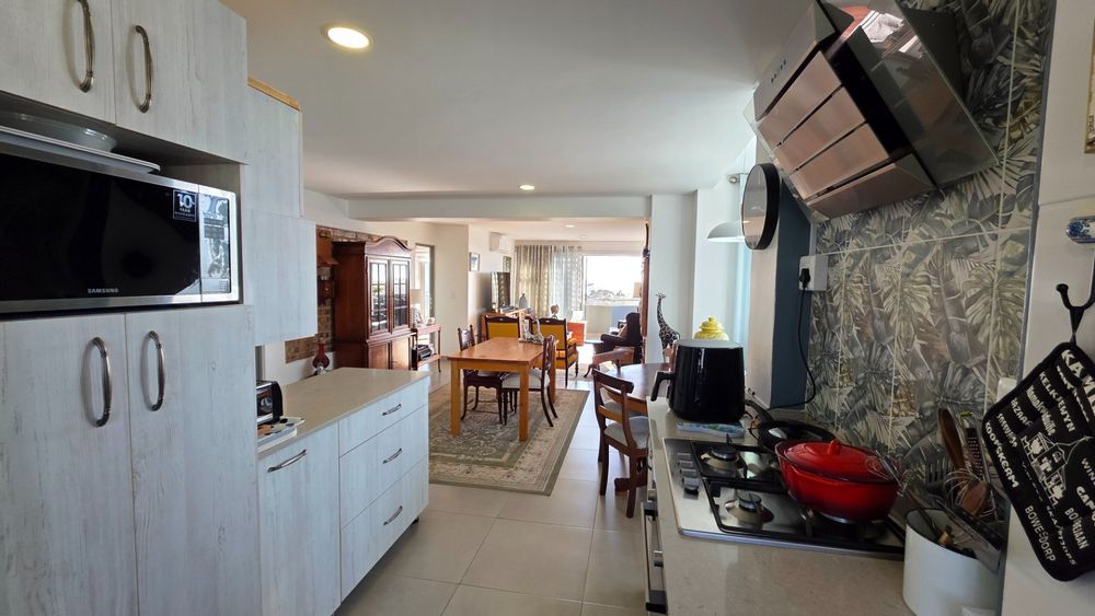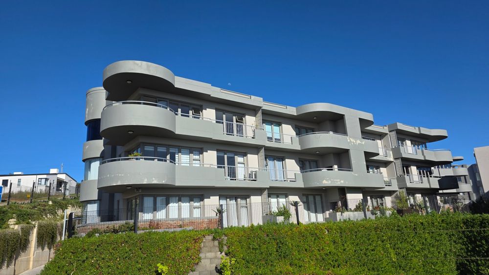 This two bedroom apartment is in extremely neat condition and all that you may need like beautiful blinds, air conditioners, security doors, and additional finishes to the kitchen and bathrooms, are already installed. Spacious open plan living area with a large balcony that offer amazing and unrestricted ocean and mountain views. Built in braai that can be closed with wooden stable doors when not in use. This is a corner unit that has more privacy and the apartment is light and sunny inside and almost north facing. The big bonus for this apartment is the single garage as well as a covered parking space in front of the garage that are included in the asking price. There is absolutely nothing to be done to this apartment, meaning you will save additional costs and this very beautiful apartment also comes fitted with an inverter system meaning you will be free from load shedding. This apartment is currently the best buy in this very popular complex and for more information or to arrange a private viewing please contact me for prompt and friendly service.