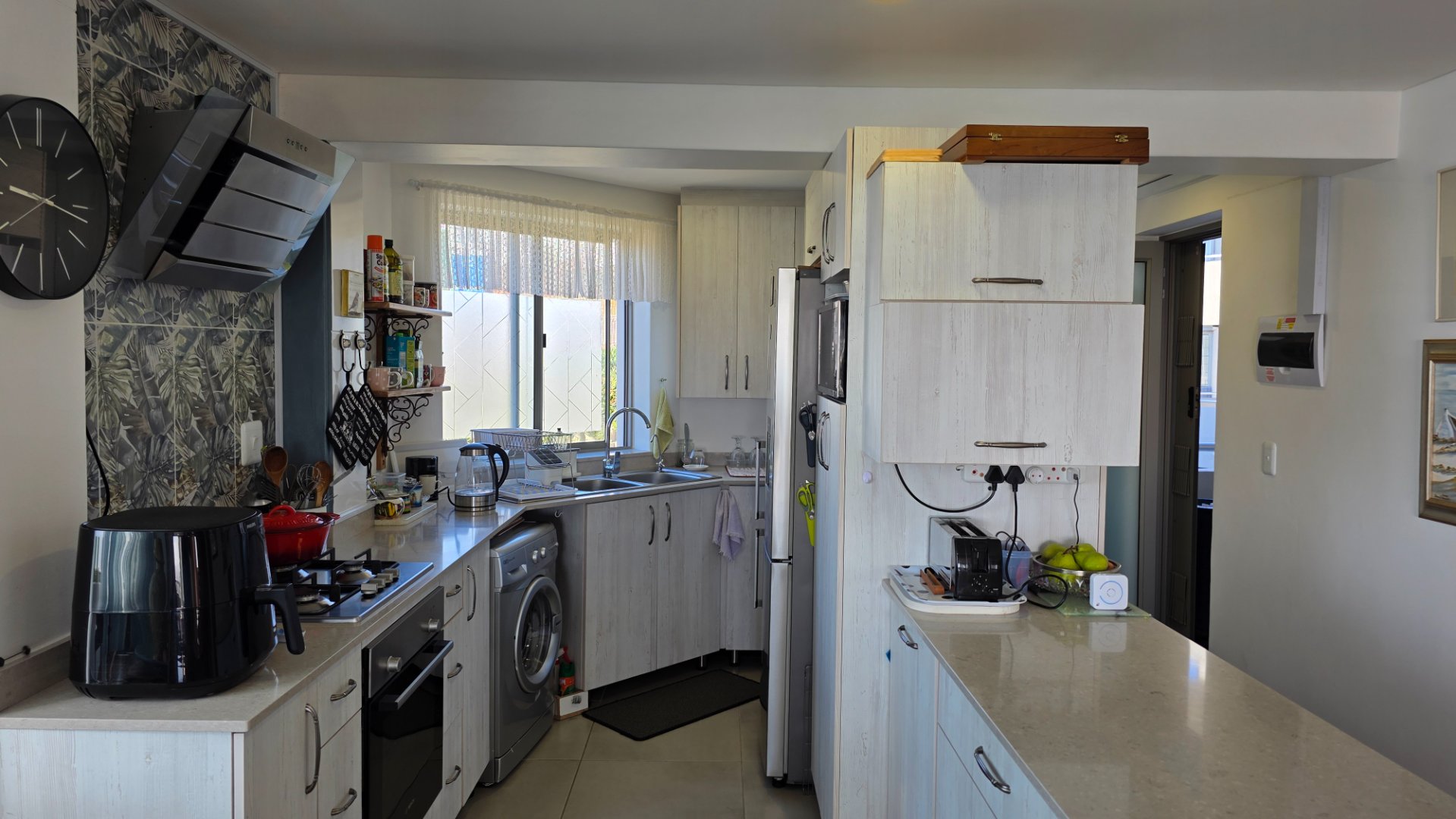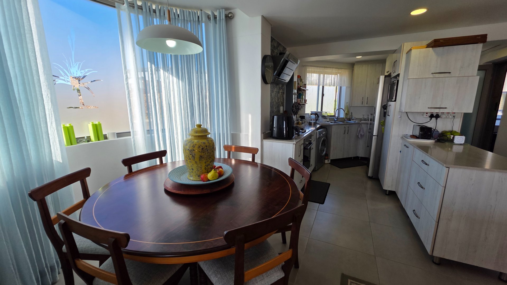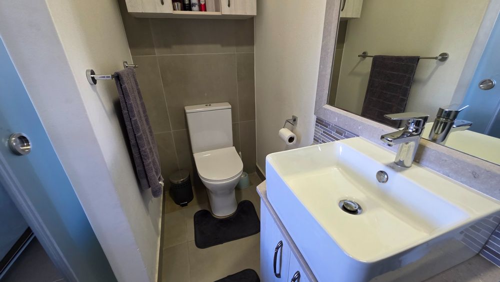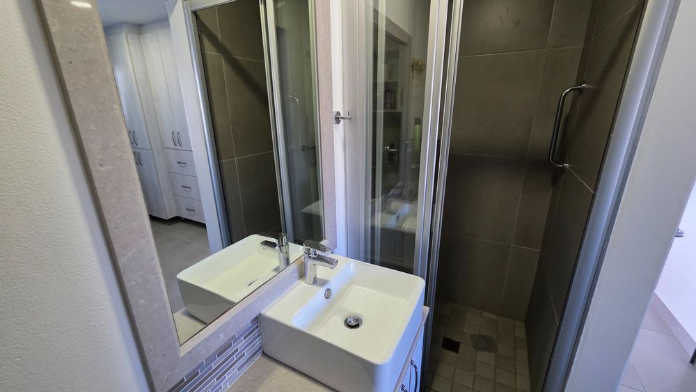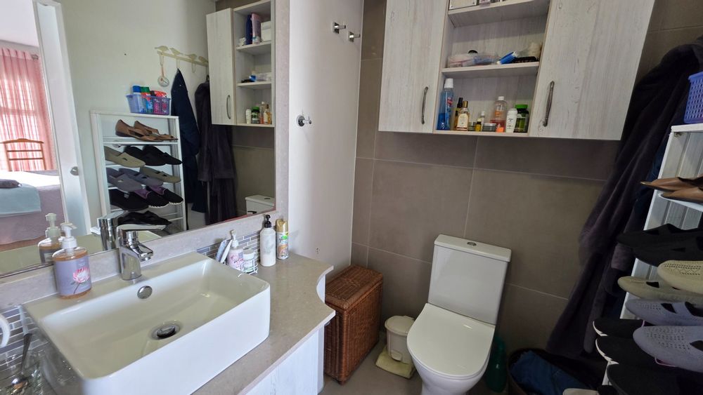 This two bedroom apartment is in extremely neat condition and all that you may need like beautiful blinds, air conditioners, security doors, and additional finishes to the kitchen and bathrooms, are already installed. Spacious open plan living area with a large balcony that offer amazing and unrestricted ocean and mountain views. Built in braai that can be closed with wooden stable doors when not in use. This is a corner unit that has more privacy and the apartment is light and sunny inside and almost north facing. The big bonus for this apartment is the single garage as well as a covered parking space in front of the garage that are included in the asking price. There is absolutely nothing to be done to this apartment, meaning you will save additional costs and this very beautiful apartment also comes fitted with an inverter system meaning you will be free from load shedding. This apartment is currently the best buy in this very popular complex and for more information or to arrange a private viewing please contact me for prompt and friendly service.