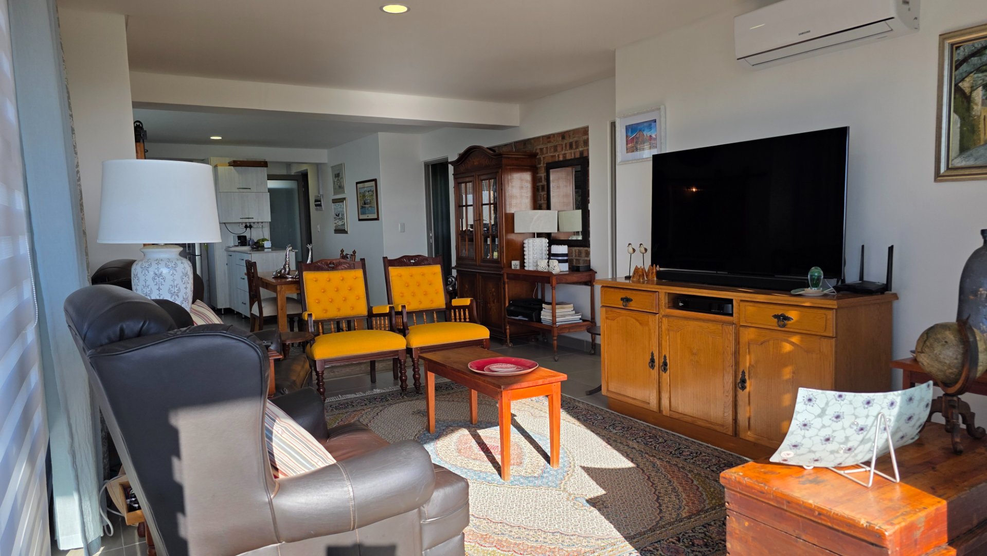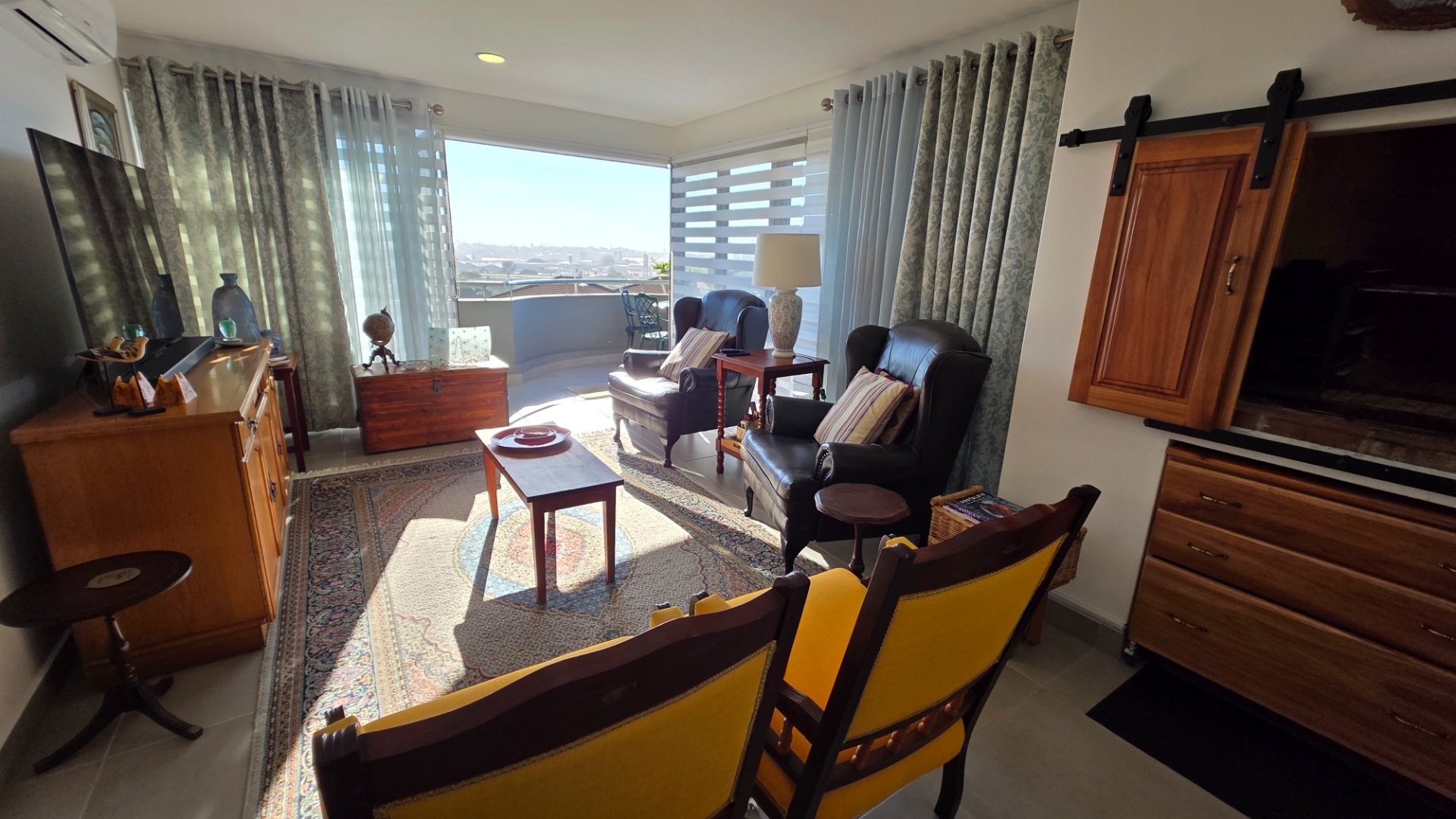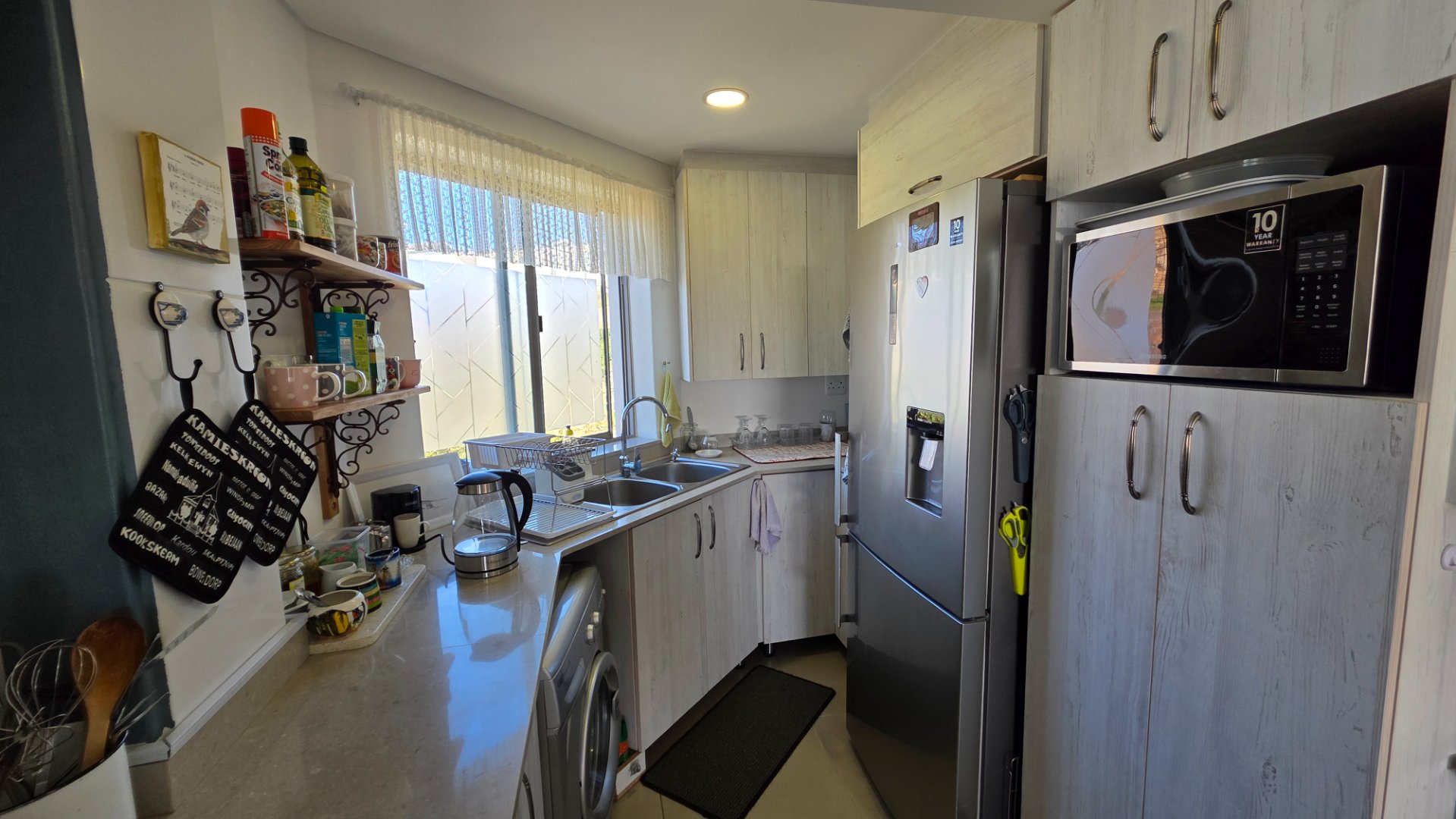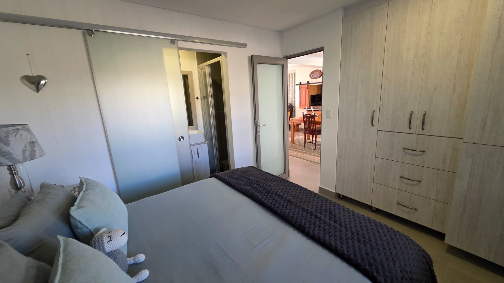 This two bedroom apartment is in extremely neat condition and all that you may need like beautiful blinds, air conditioners, security doors, and additional finishes to the kitchen and bathrooms, are already installed. Spacious open plan living area with a large balcony that offer amazing and unrestricted ocean and mountain views. Built in braai that can be closed with wooden stable doors when not in use. This is a corner unit that has more privacy and the apartment is light and sunny inside and almost north facing. The big bonus for this apartment is the single garage as well as a covered parking space in front of the garage that are included in the asking price. There is absolutely nothing to be done to this apartment, meaning you will save additional costs and this very beautiful apartment also comes fitted with an inverter system meaning you will be free from load shedding. This apartment is currently the best buy in this very popular complex and for more information or to arrange a private viewing please contact me for prompt and friendly service.