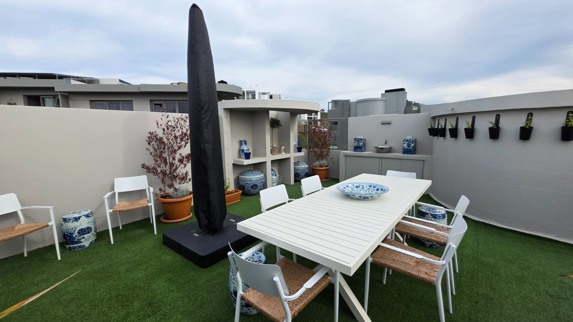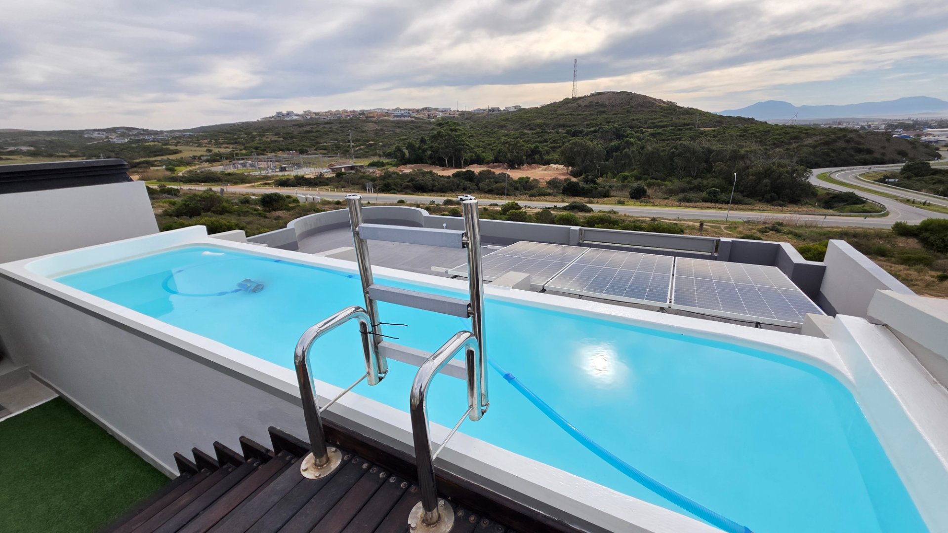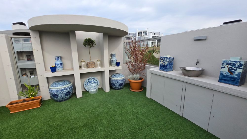 This exceptionally beautiful apartment has been modified and upgraded to perfection and will satisfy the connoisseur that enjoys the look and feel of luxury and comfort whilst staying in a safe environment. The private rooftop garden and entertainment area with a swimming pool is perfect for spending some quality time on your own or to entertain friends and family with a braai. Spacious open plan living area with built-in braai, beautiful and functional kitchen, large balcony with distant ocean and mountain views, two bedrooms with ample cupboard space, two bathrooms en suite as well as a single undercover parking space and a store room for safe storage of your valuables. This north facing apartment is situated at a corner with ample natural light flowing in and sunny and warm during the long winter months. The complex is very popular and well maintained and also has a lift for easy access for the elderly and wheelchair impaired persons whilst your four legged friend might also be welcome with permission from body corporate. Perfectly situated between the coastal towns of Mossel Bay and Hartenbos with easy access to shopping malls and other amenities and attractions as well as the N2 highway. For more information or appointment to view you are welcome to contact me.