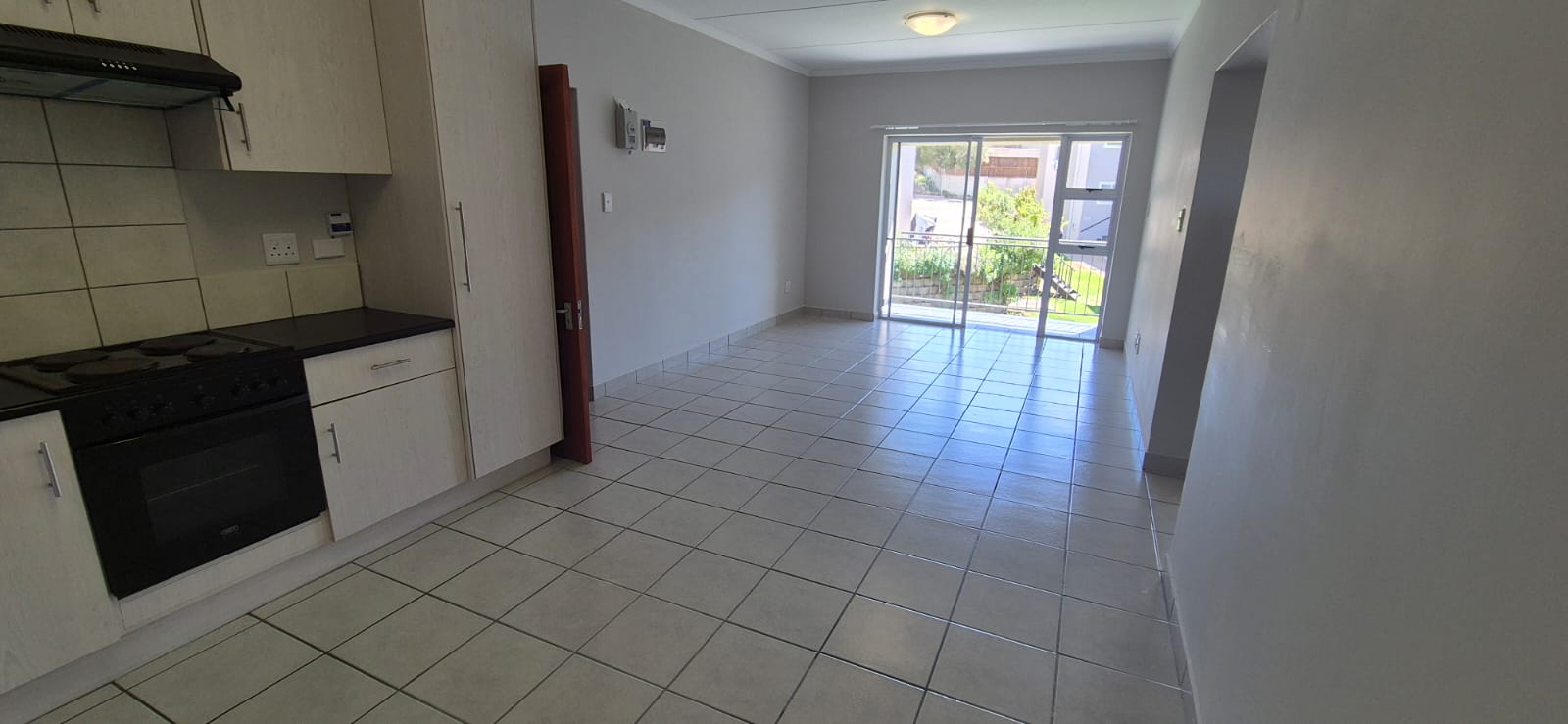 This first floor apartment has 2 bedrooms, 1 bathroom and 1 en-suite bathroom, reserved shaded parking space, a lock-up garage (optional extra), and is situated in the desirable residential suburb of Island View in Mossel Bay. It has an open-plan layout and the living area extends into an enclosed patio with a BBQ facility. The entrance in the hallway to the apartment is enclosed with a security gate to ensure privacy and safety for exclusive use by the owner.