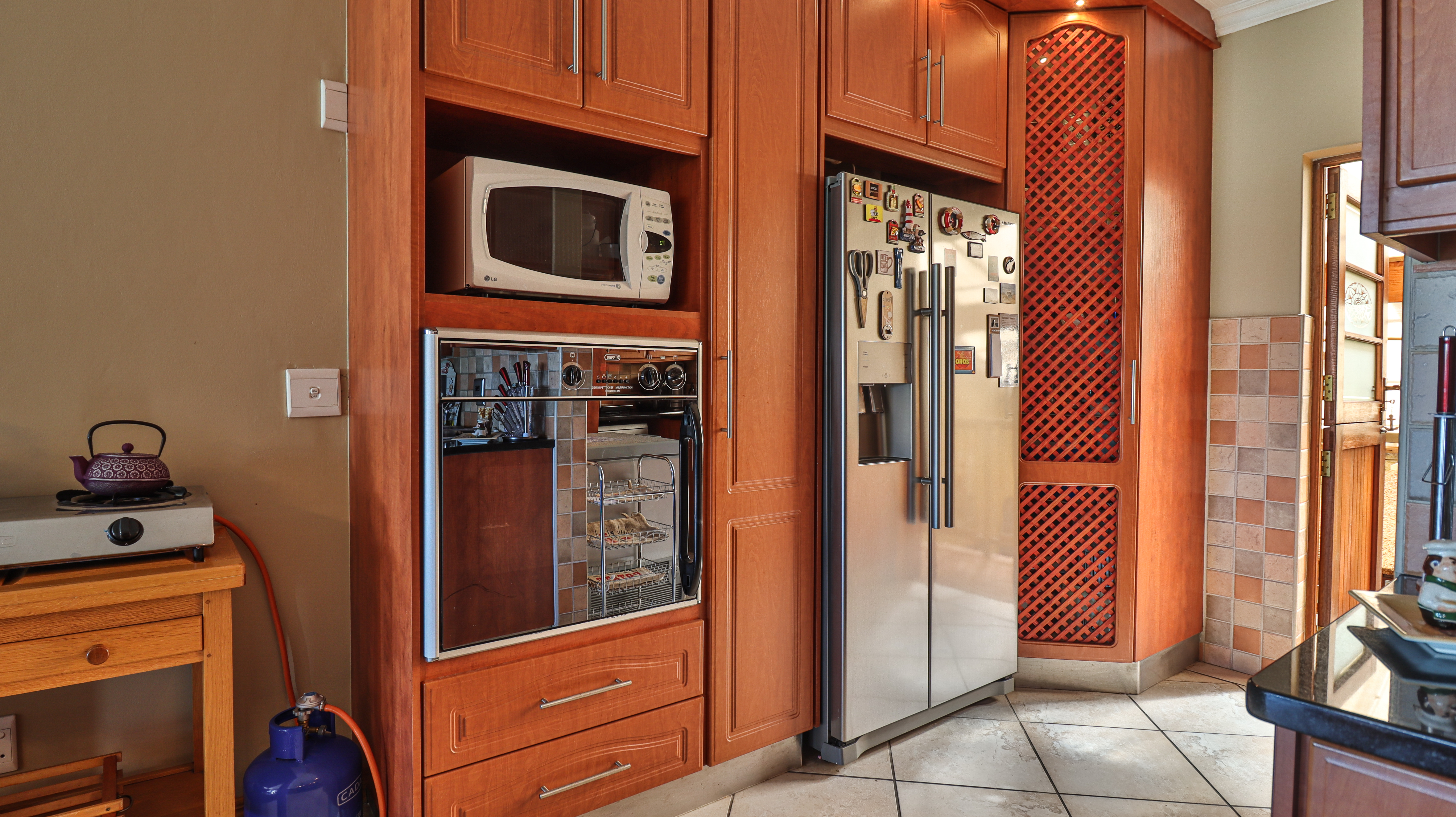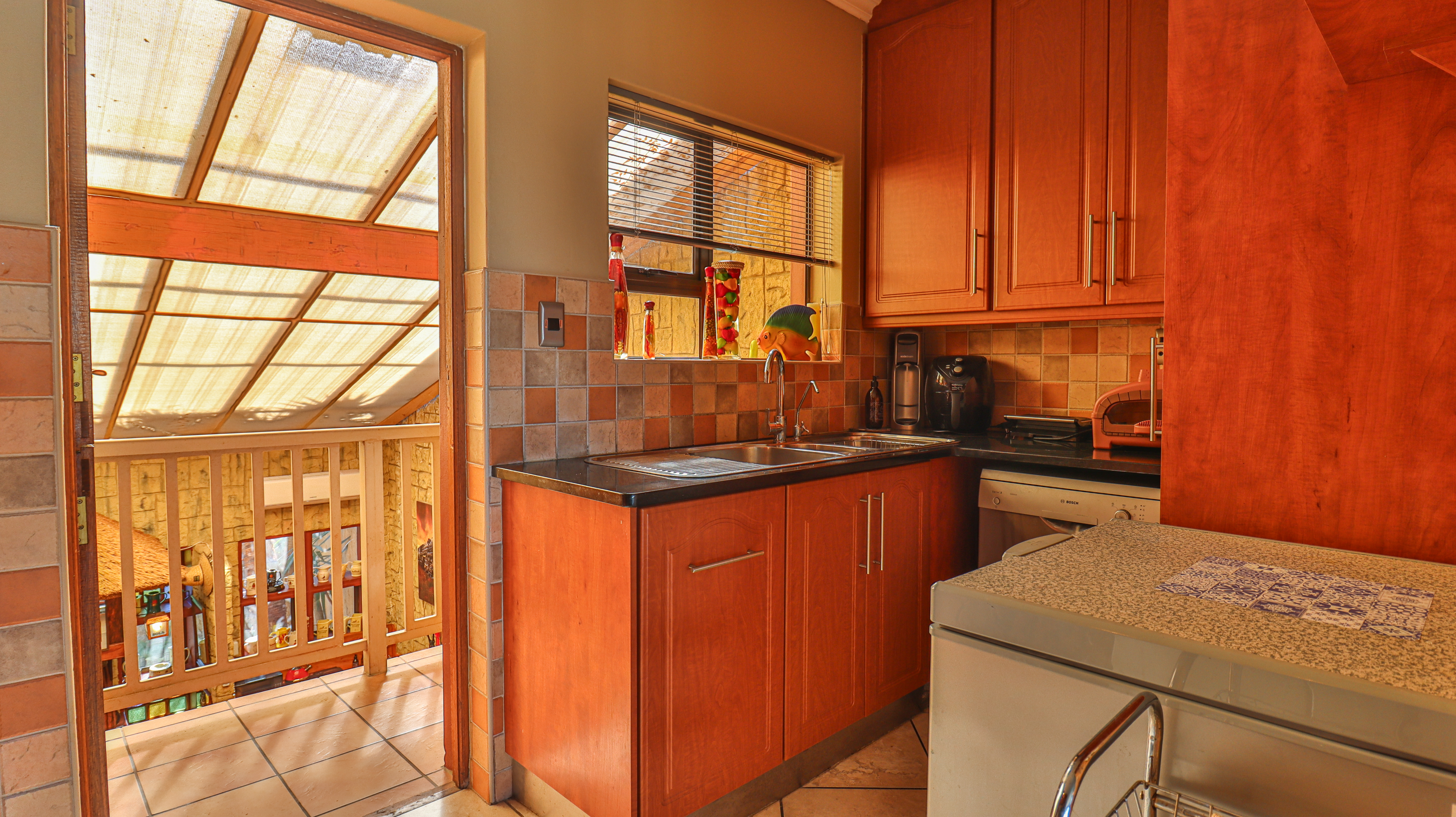 The property is fully secured with an electrical gate and offers a small, well-maintained, manageable garden. A double garage is in place, of which one garage has been converted into an additional bedroom; with minimal effort, it can easily be converted back into a garage. Added convenience includes double-shaded carports, providing ample secure parking.