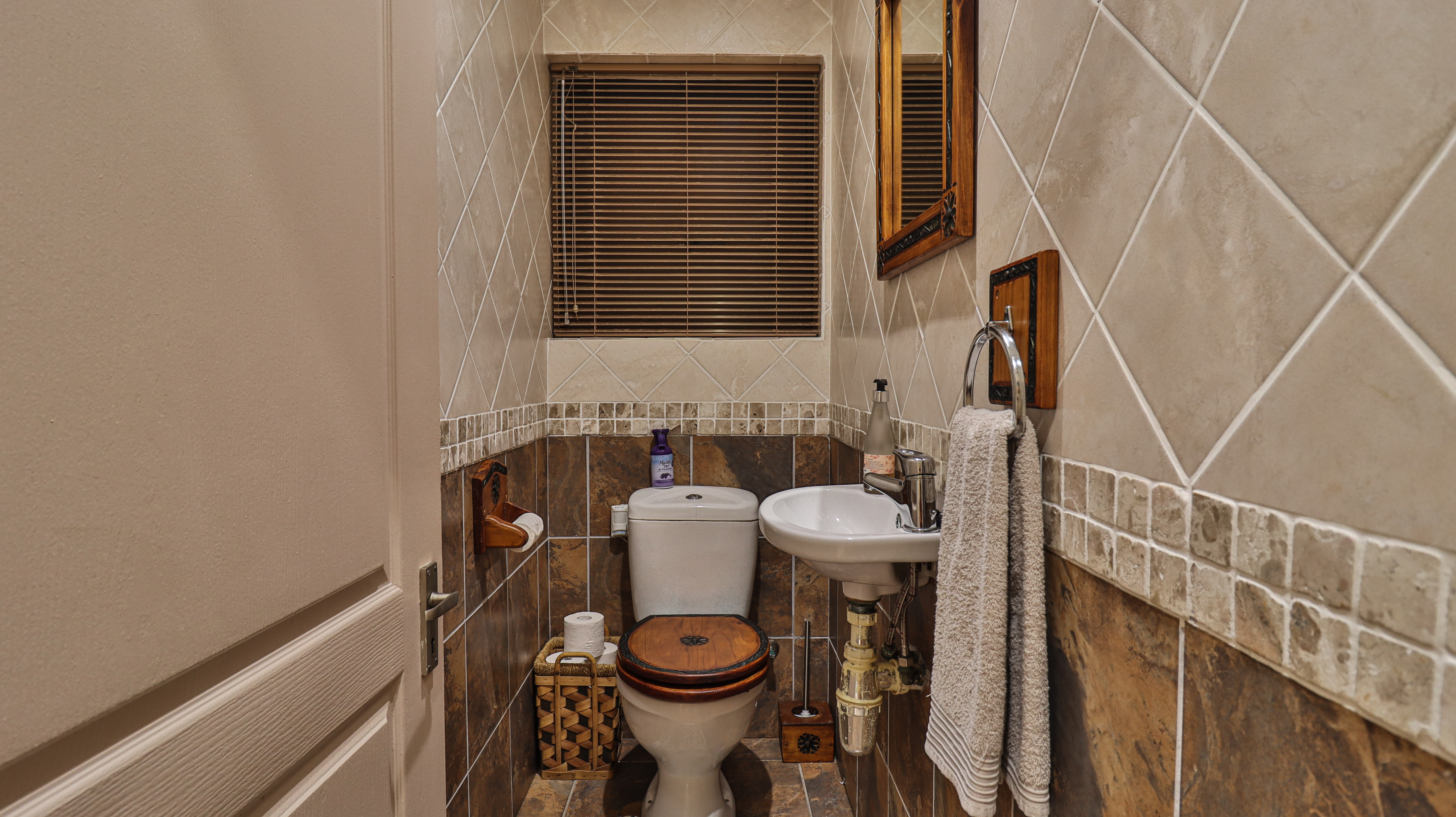 The ground floor offers two spacious bedrooms with built-in cupboards, a well-appointed bathroom with a guest toilet, and a cozy lounge, ideal for family living or comfortably hosting guests.