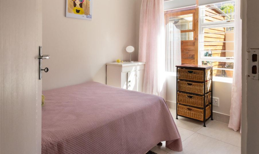 Accommodation includes three well-sized bedrooms, each fitted with built-in cupboards and tiled flooring. The main bedroom boasts a modern en-suite bathroom with a spacious shower, while the second bathroom offers a basin, toilet, and shower for added convenience. A highlight of the home is the sunroom or study, complete with large windows and roll-down blinds, providing an uninterrupted view of the ocean—an ideal spot for work, reading, or simply soaking in the scenery.