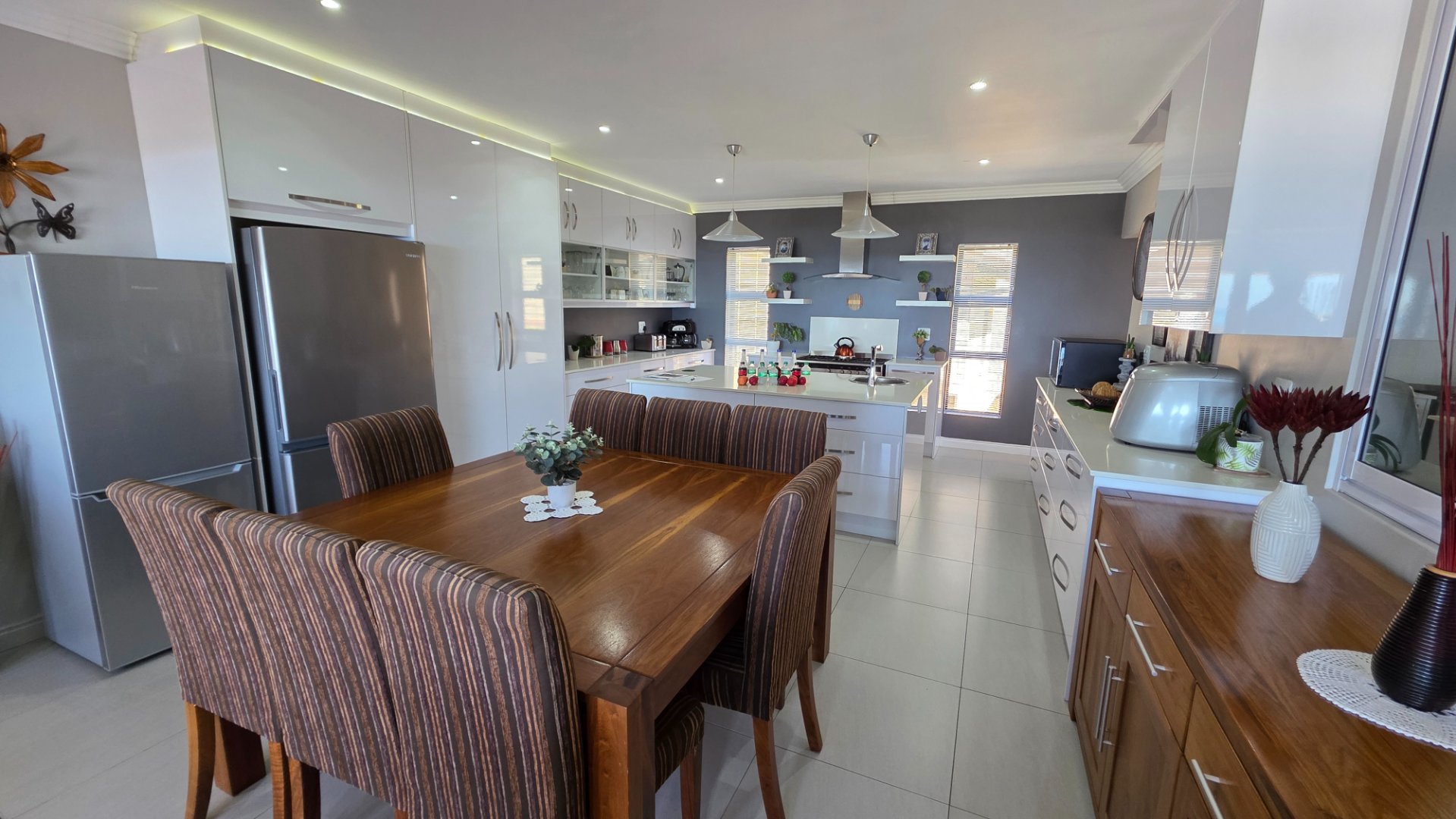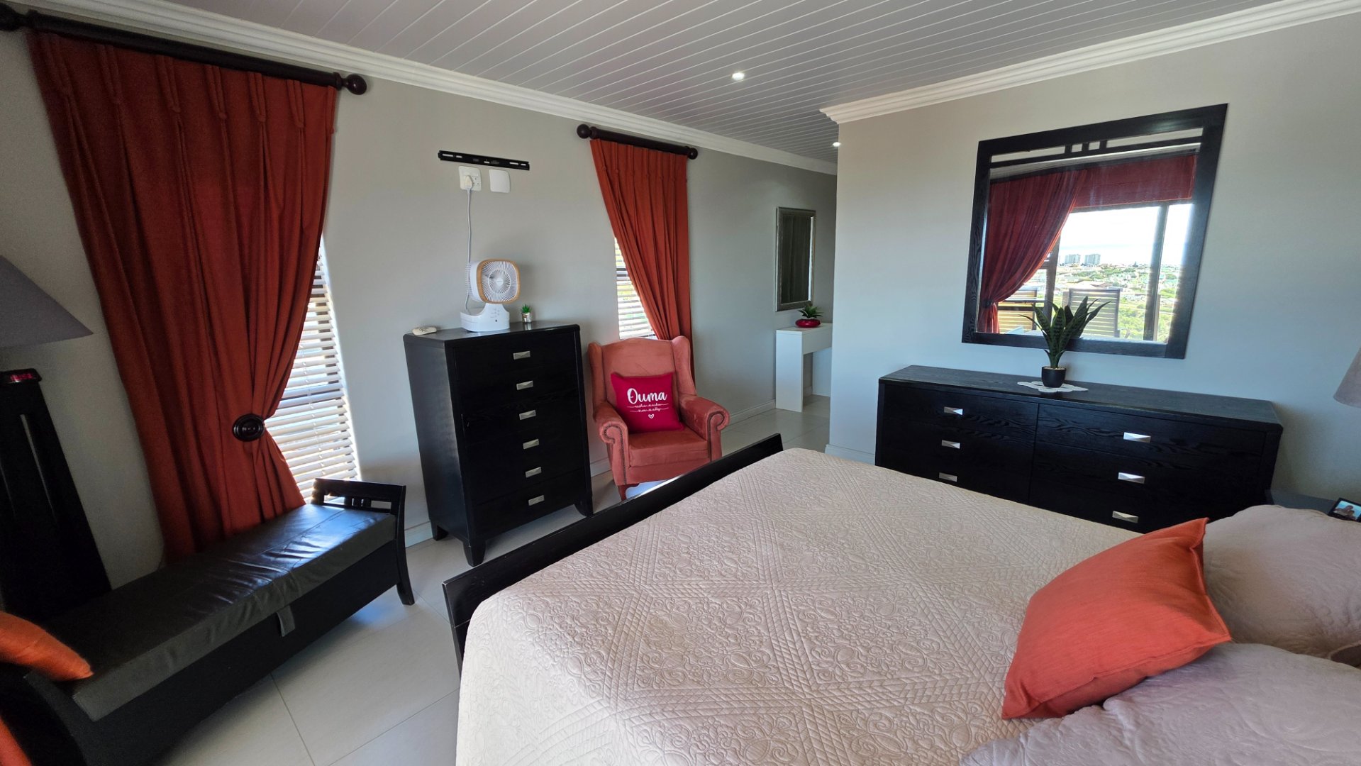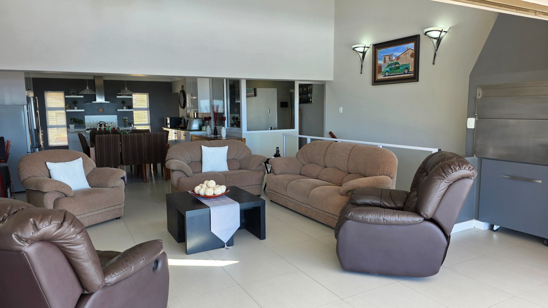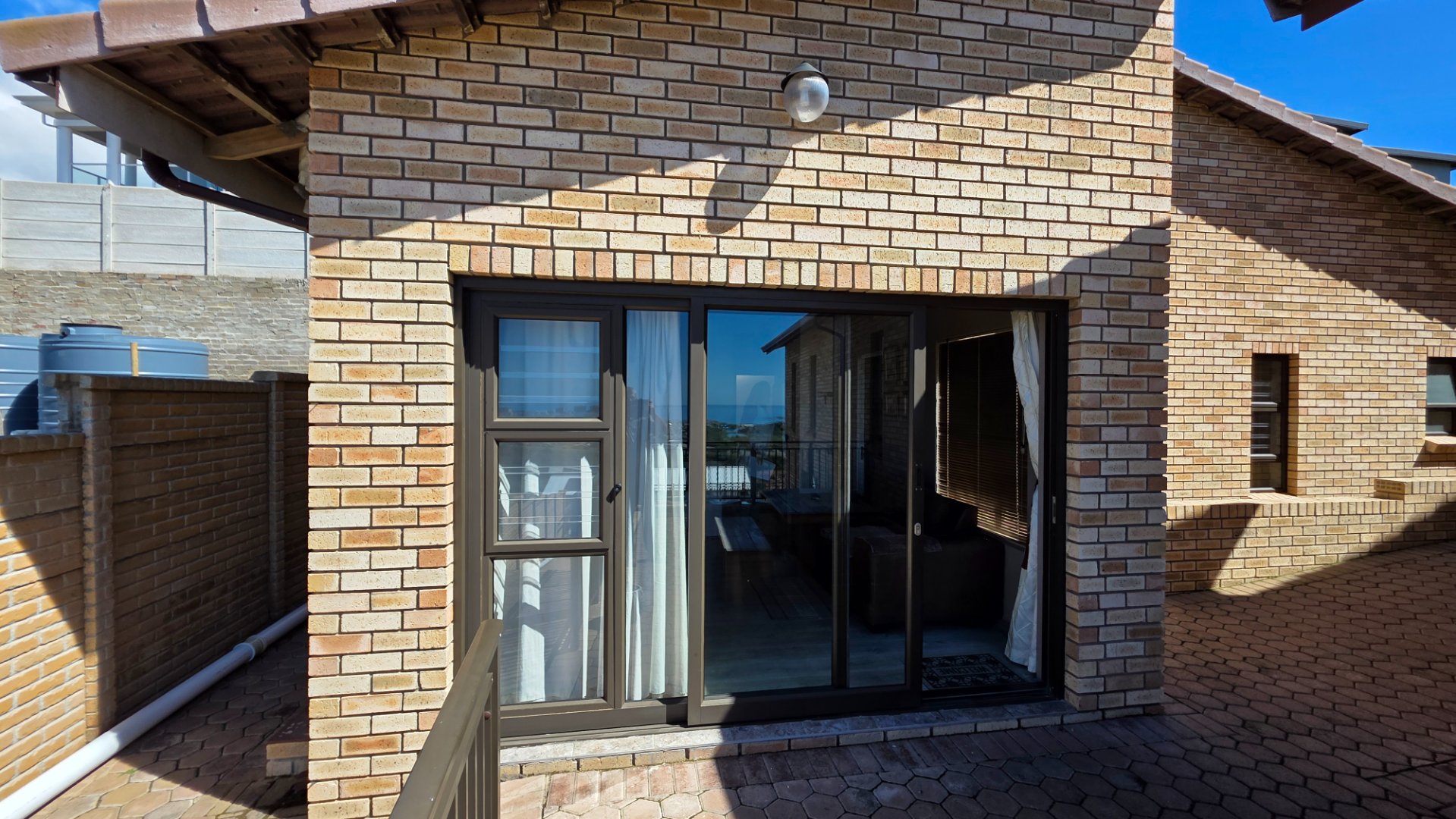 This extremely neat house is well designed with ease of living in mind whilst enjoying excellent mountain and ocean views. Situated in a popular neighbourhood between the coastal towns of Hartenbos and Mossel Bay and in close proximity to a large shopping mall as well as easy access to the N2 highway. At lower level the house offers a spacious bedroom with full bathroom en suite as well as an extra large double garage with a third garage adjacent that is perfect for storage of another vehicle or workroom as well as an outside bedroom with bathroom en suite. Upstairs you will find a spacious open plan living area, large balcony with exquisite views, modern kitchen with separate scullery, study room, large main bedroom with walk-in cupboards and full bathroom en suite, large guest bedroom with full bathroom en suite as well as a guest toilet for protection of your privacy and the comfort of your guests. The large bonus for this house is the spacious one bedroom apartment with kitchen, lounge and full bathroom that is completely separate from the main house and can be rented out for additional income if you wish. This well designed and well built house is in a class of its own and deserves to be seen to be appreciated. For more information or appointment to view you are welcome to contact me.