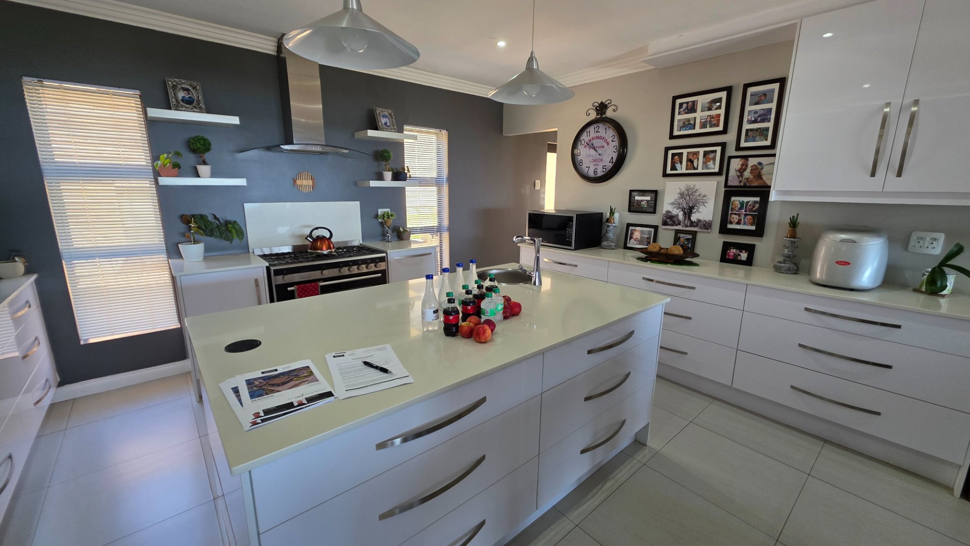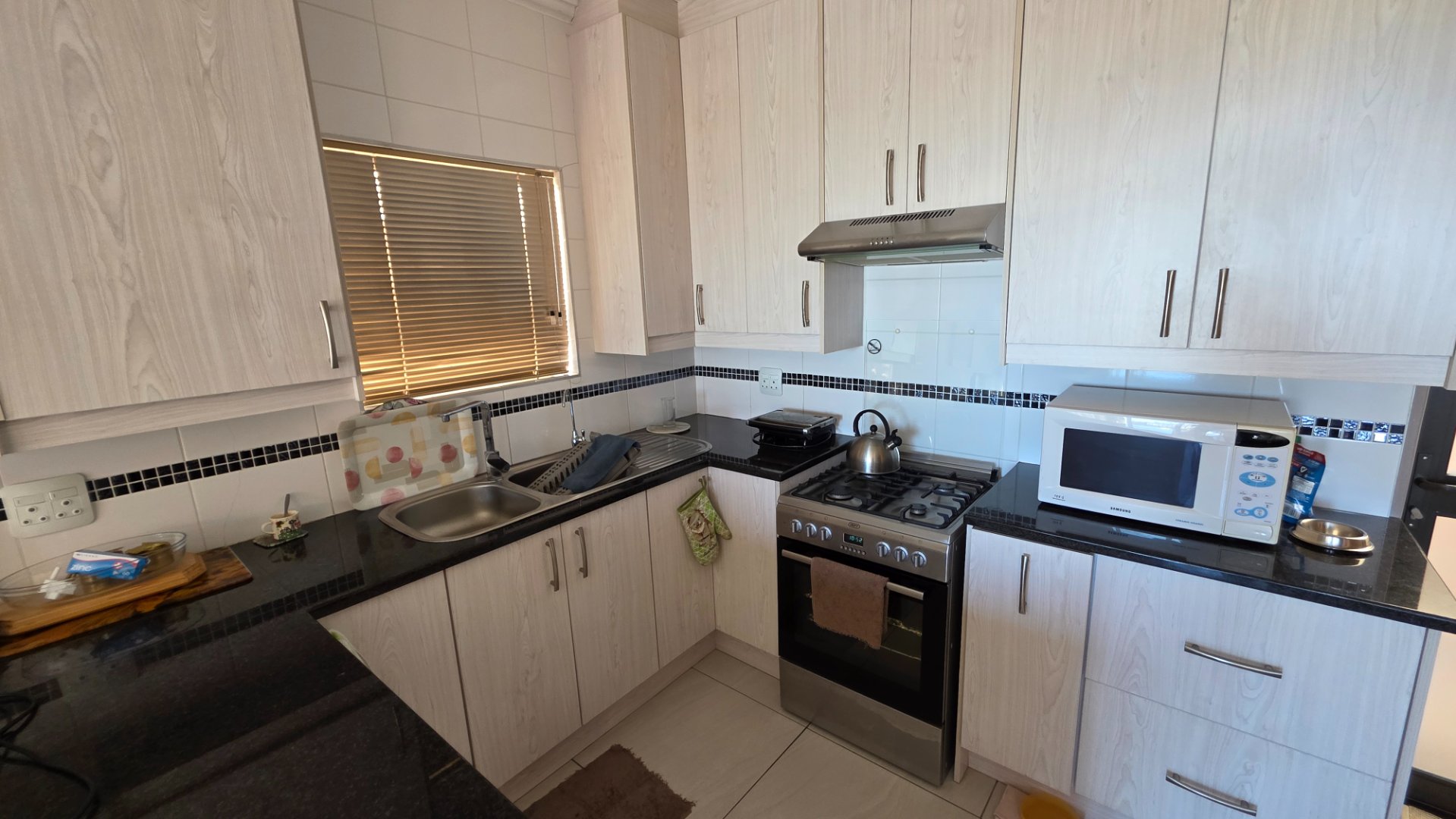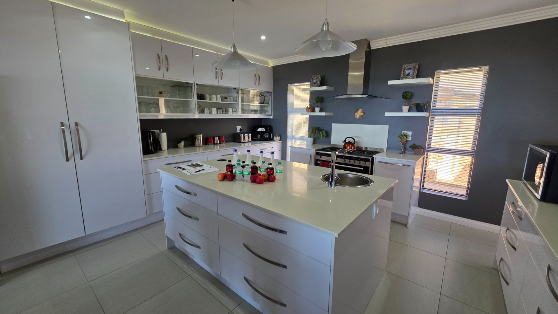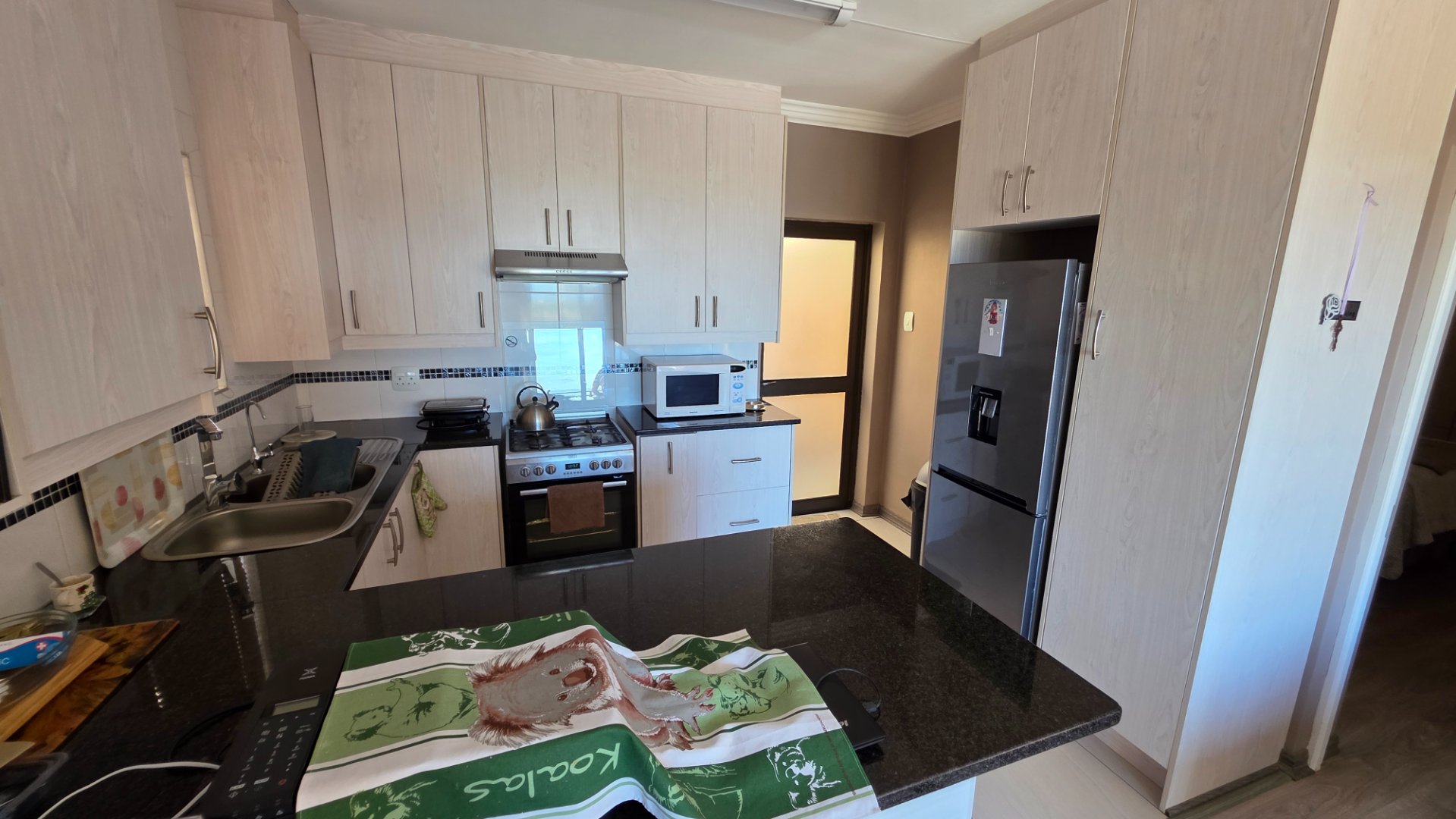 This extremely neat house is well designed with ease of living in mind whilst enjoying excellent mountain and ocean views. Situated in a popular neighbourhood between the coastal towns of Hartenbos and Mossel Bay and in close proximity to a large shopping mall as well as easy access to the N2 highway. At lower level the house offers a spacious bedroom with full bathroom en suite as well as an extra large double garage with a third garage adjacent that is perfect for storage of another vehicle or workroom as well as an outside bedroom with bathroom en suite. Upstairs you will find a spacious open plan living area, large balcony with exquisite views, modern kitchen with separate scullery, study room, large main bedroom with walk-in cupboards and full bathroom en suite, large guest bedroom with full bathroom en suite as well as a guest toilet for protection of your privacy and the comfort of your guests. The large bonus for this house is the spacious one bedroom apartment with kitchen, lounge and full bathroom that is completely separate from the main house and can be rented out for additional income if you wish. This well designed and well built house is in a class of its own and deserves to be seen to be appreciated. For more information or appointment to view you are welcome to contact me.
