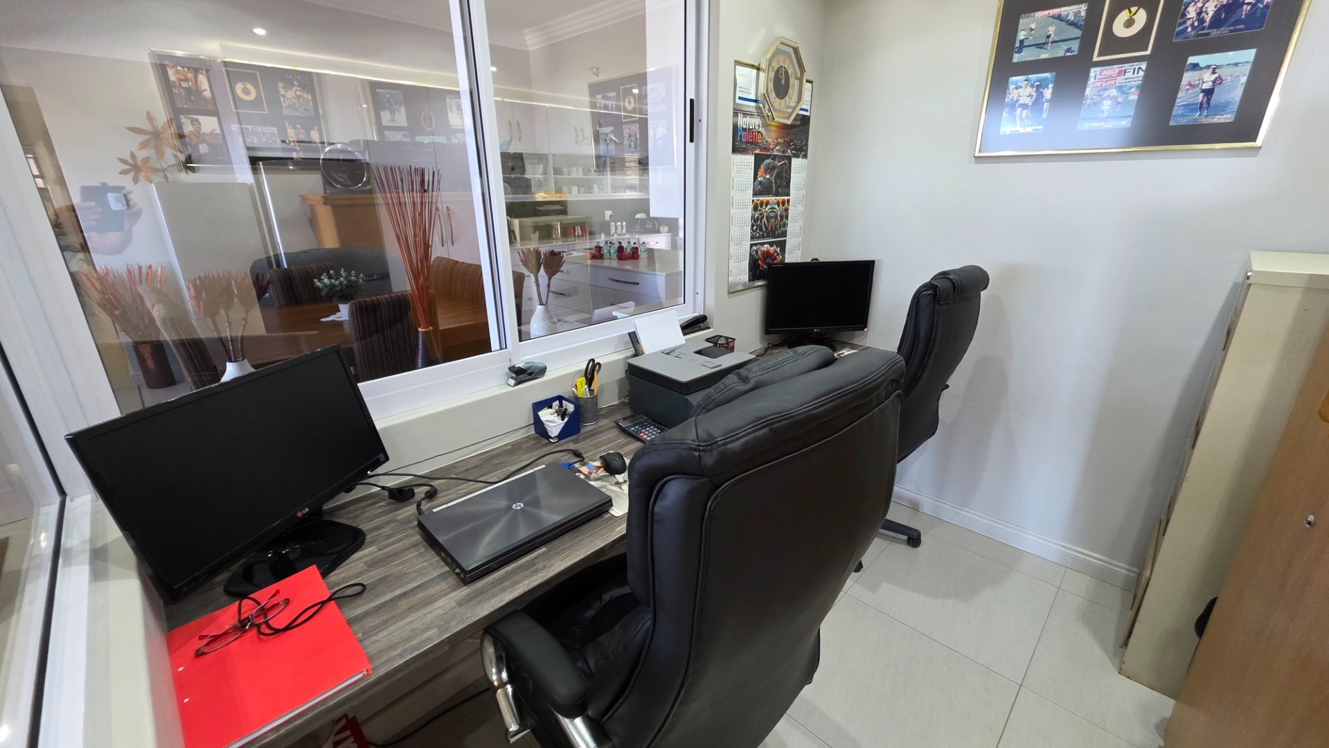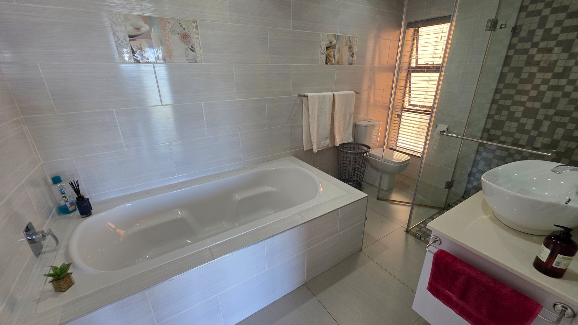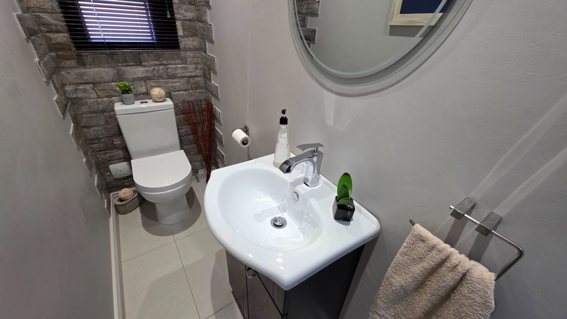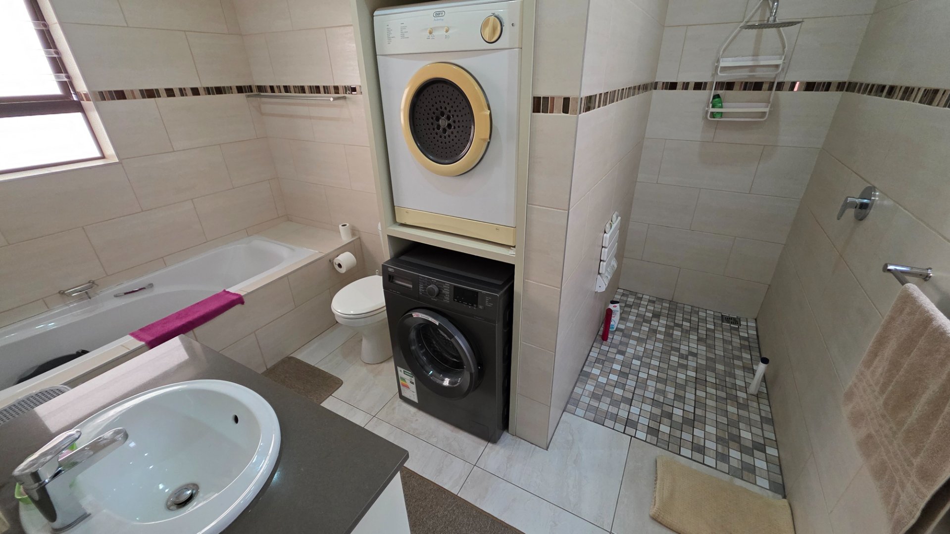 This extremely neat house is well designed with ease of living in mind whilst enjoying excellent mountain and ocean views. Situated in a popular neighbourhood between the coastal towns of Hartenbos and Mossel Bay and in close proximity to a large shopping mall as well as easy access to the N2 highway. At lower level the house offers a spacious bedroom with full bathroom en suite as well as an extra large double garage with a third garage adjacent that is perfect for storage of another vehicle or workroom as well as an outside bedroom with bathroom en suite. Upstairs you will find a spacious open plan living area, large balcony with exquisite views, modern kitchen with separate scullery, study room, large main bedroom with walk-in cupboards and full bathroom en suite, large guest bedroom with full bathroom en suite as well as a guest toilet for protection of your privacy and the comfort of your guests. The large bonus for this house is the spacious one bedroom apartment with kitchen, lounge and full bathroom that is completely separate from the main house and can be rented out for additional income if you wish. This well designed and well built house is in a class of its own and deserves to be seen to be appreciated. For more information or appointment to view you are welcome to contact me.