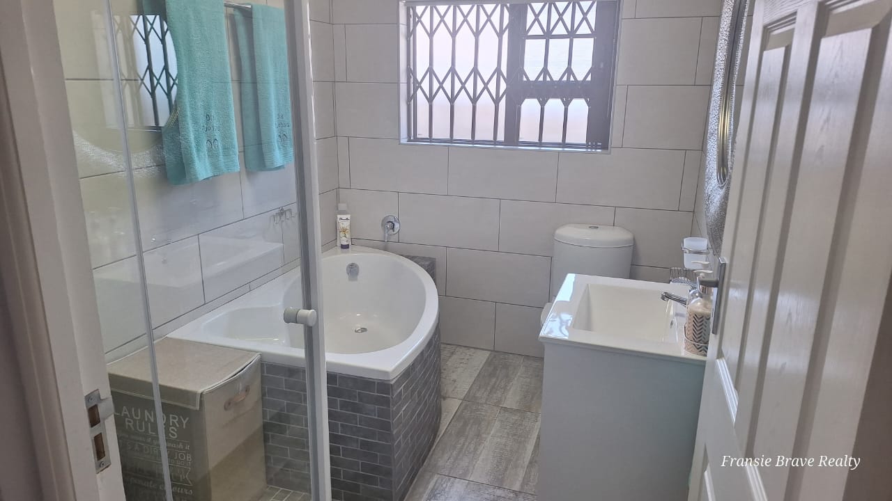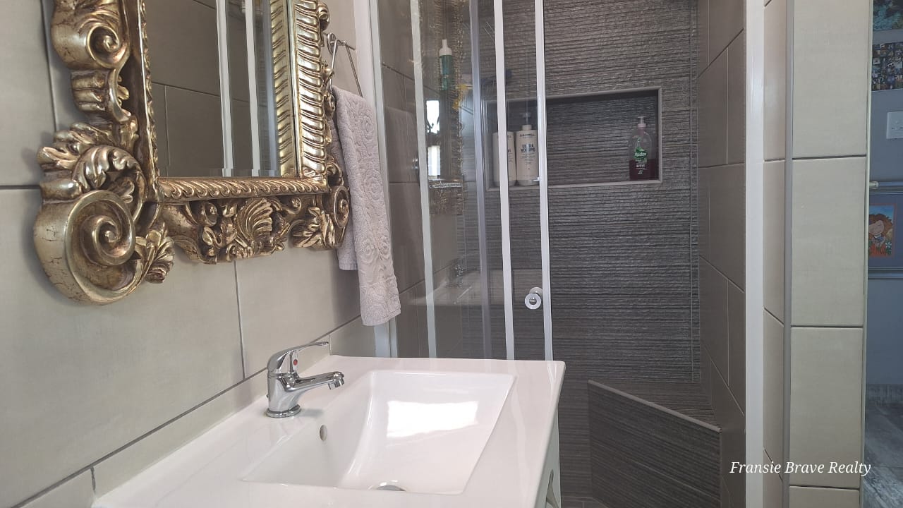 The extra length single garage host the laundry and is tiled perfectly with white built in cupboards. Three open, paved, safe car parking’s in the front of the property. The 5kva inverter is neatly fitted to the wall. 9 x 450watt sun panels installed on the roof.