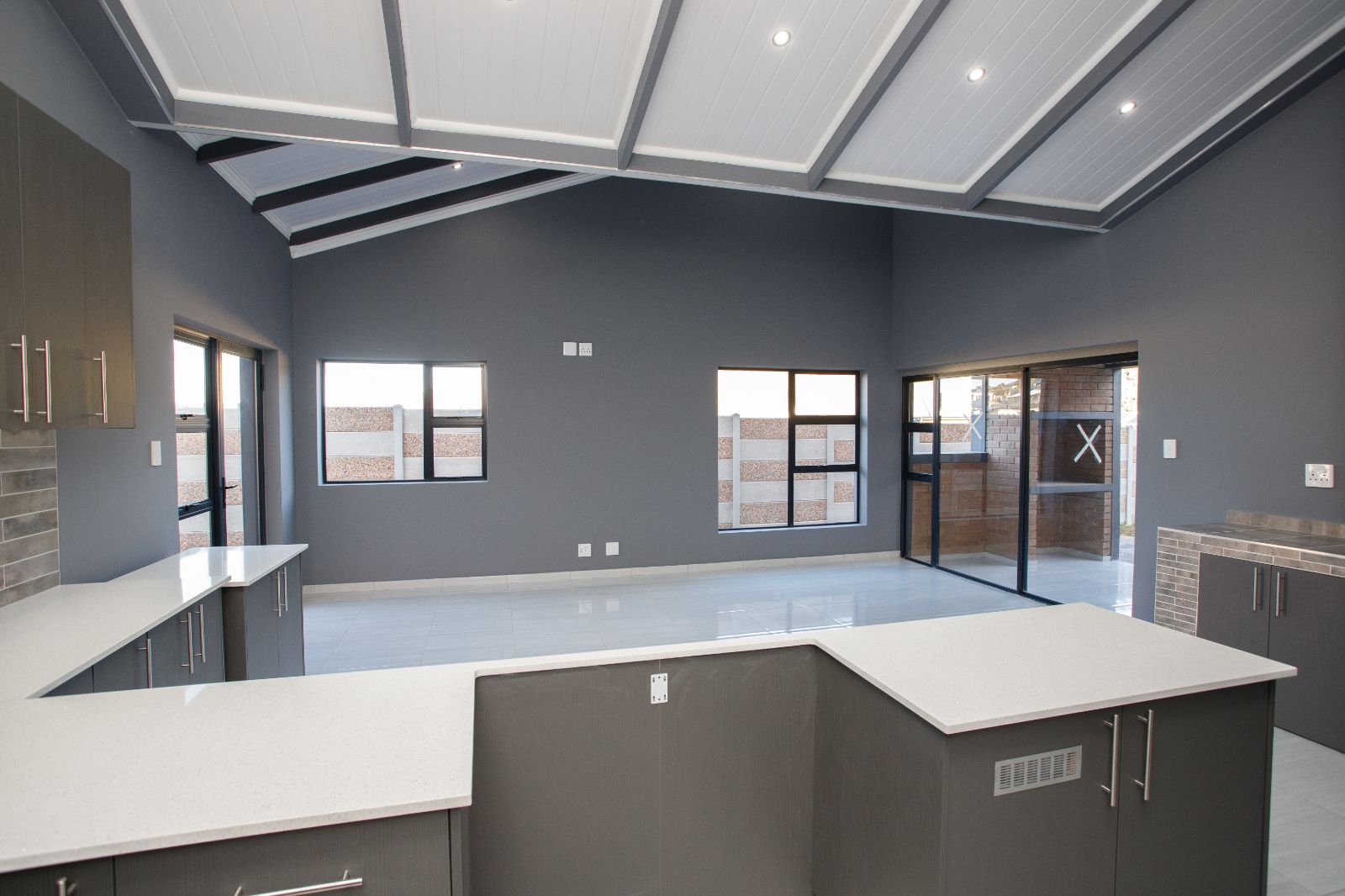 This single-level home features high ceilings and tiled open-plan spaces that create a bright and welcoming atmosphere. Whether hosting guests or enjoying a quiet night in, the layout is designed for both comfort and practicality.