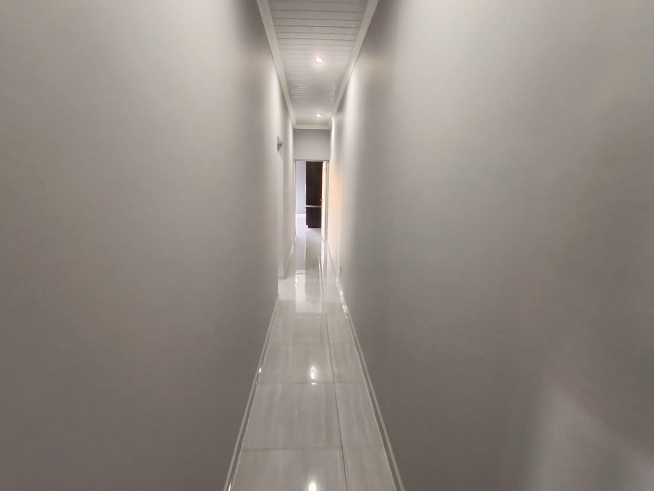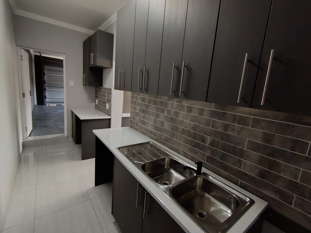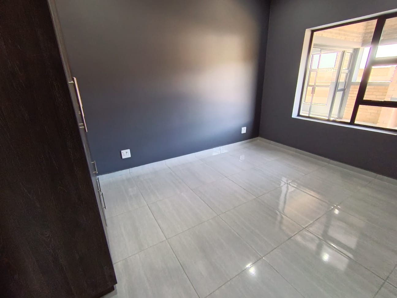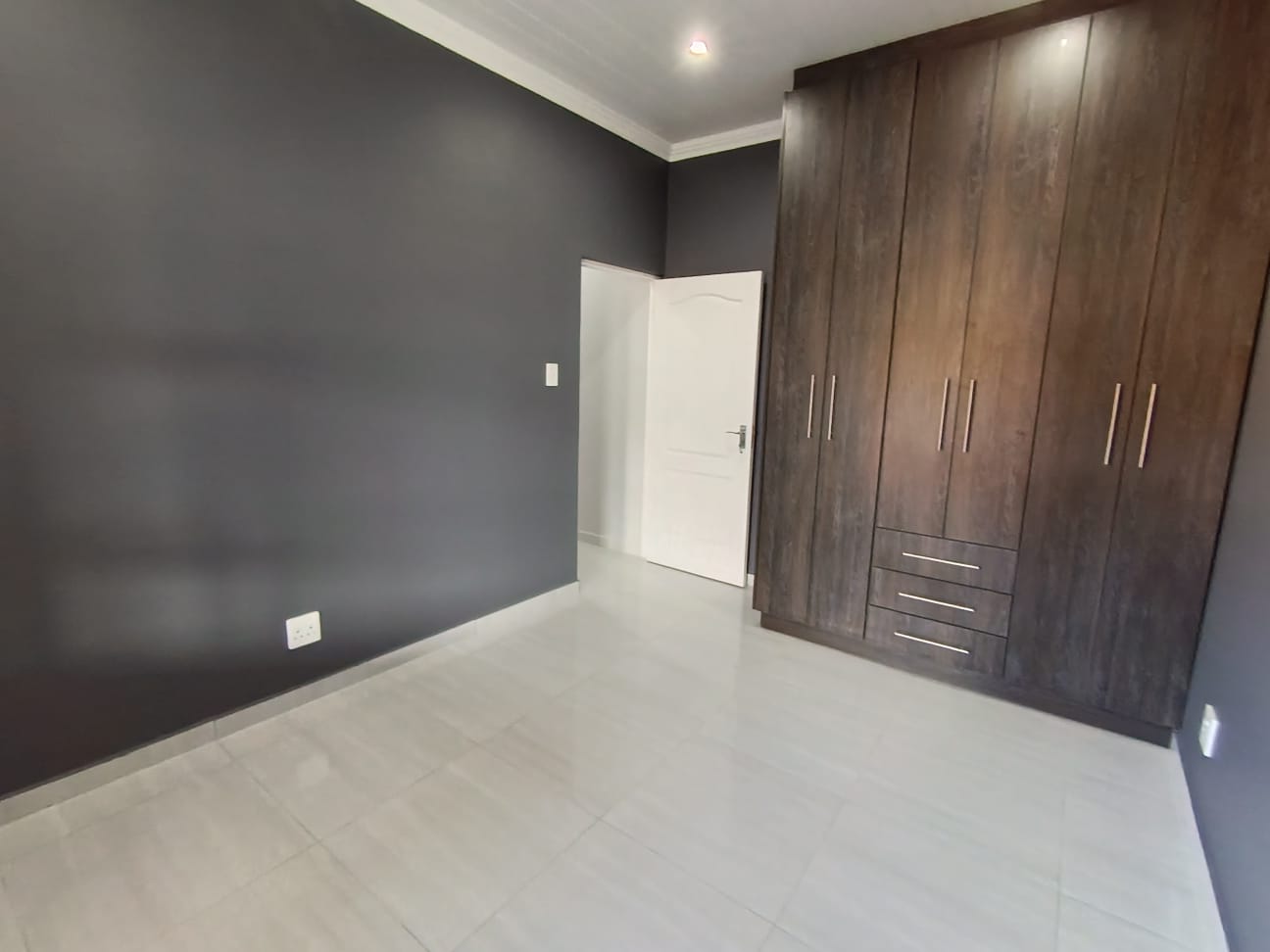The heart of the home features an inviting open-plan layout, where the lounge, dining area, and kitchen merge into one bright, airy space. High ceilings and tall walls enhance the sense of volume, while a built-in indoor braai/fireplace ensures year-round comfort and gatherings.